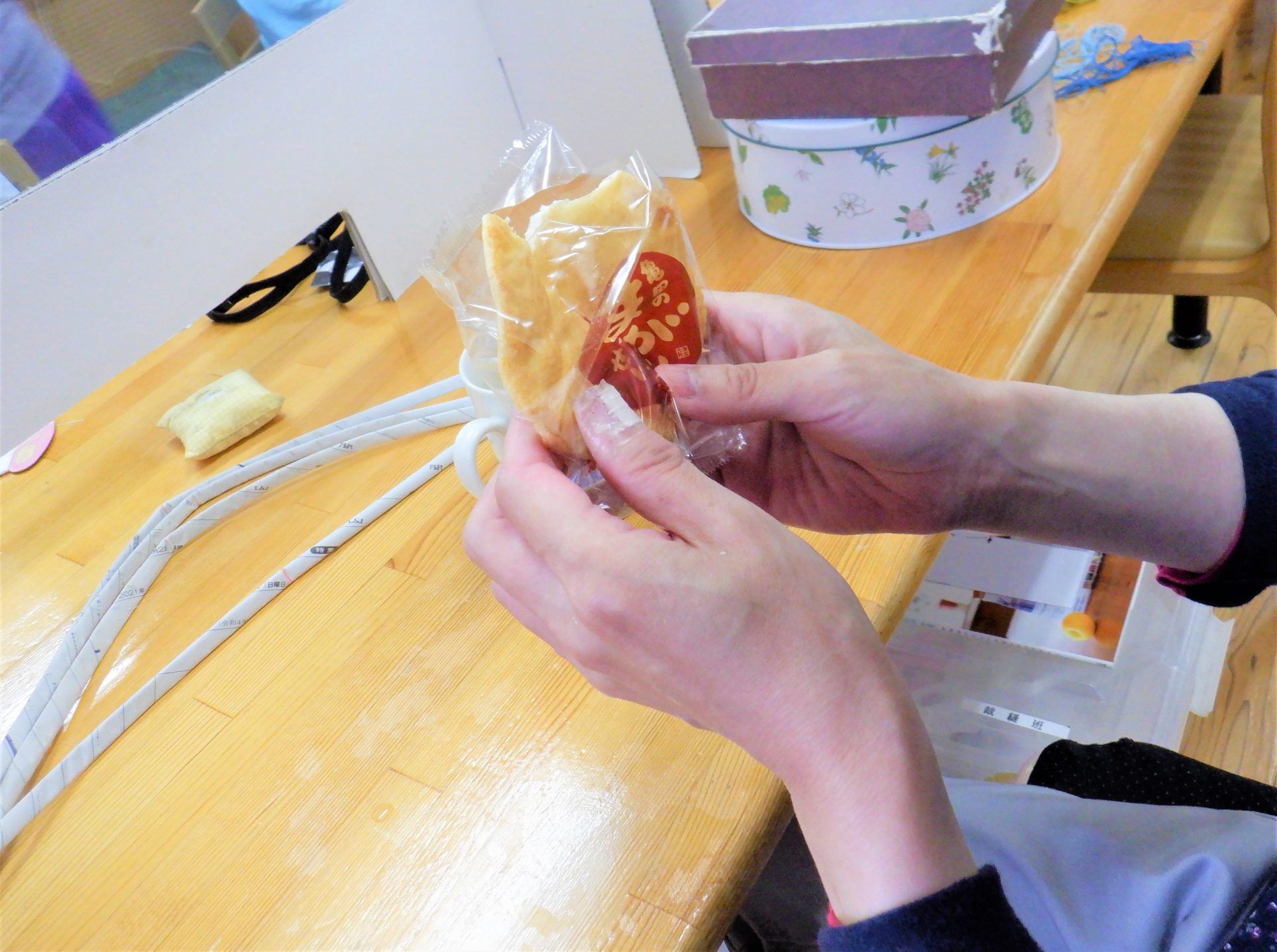 せんべいとクッキーで、こんなにみんな笑顔になれるって…やっぱりおやつは偉大です!