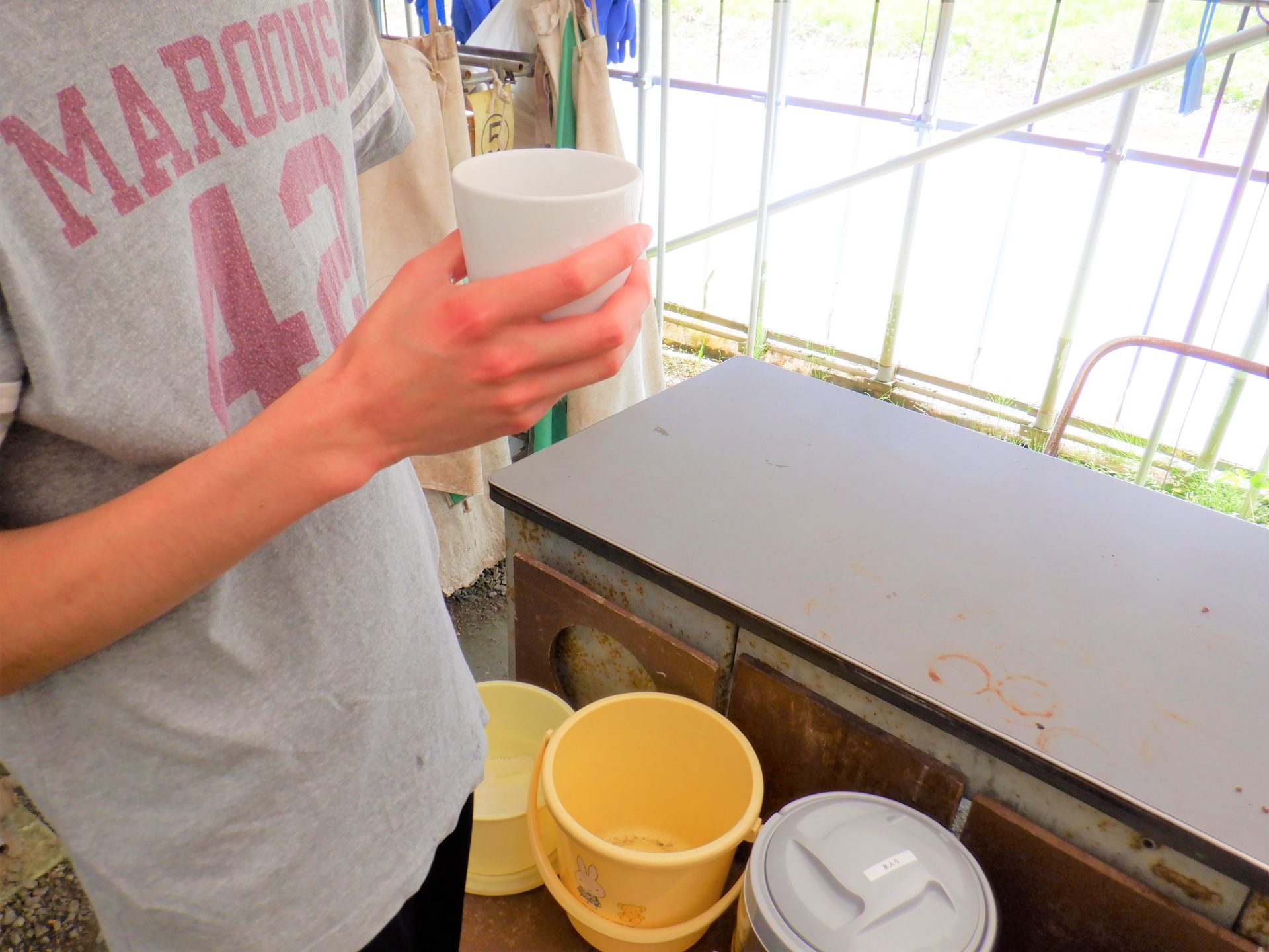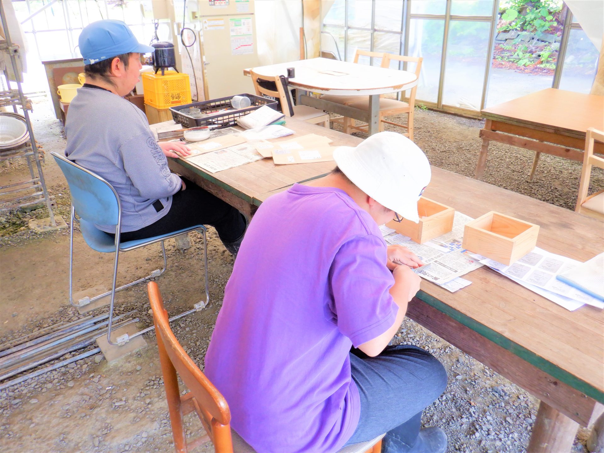 ハウスでは木工班空き缶つぶしの真っ最中~!