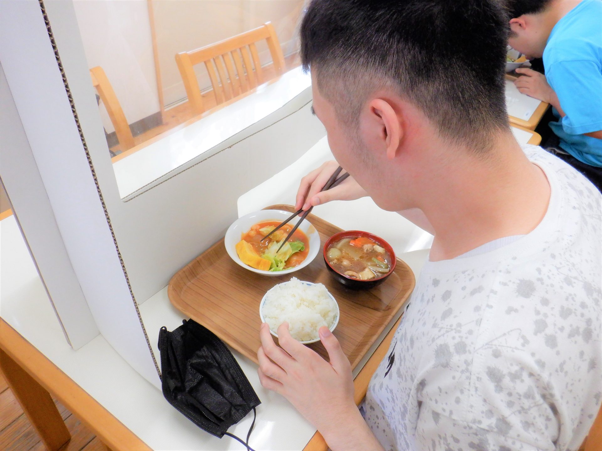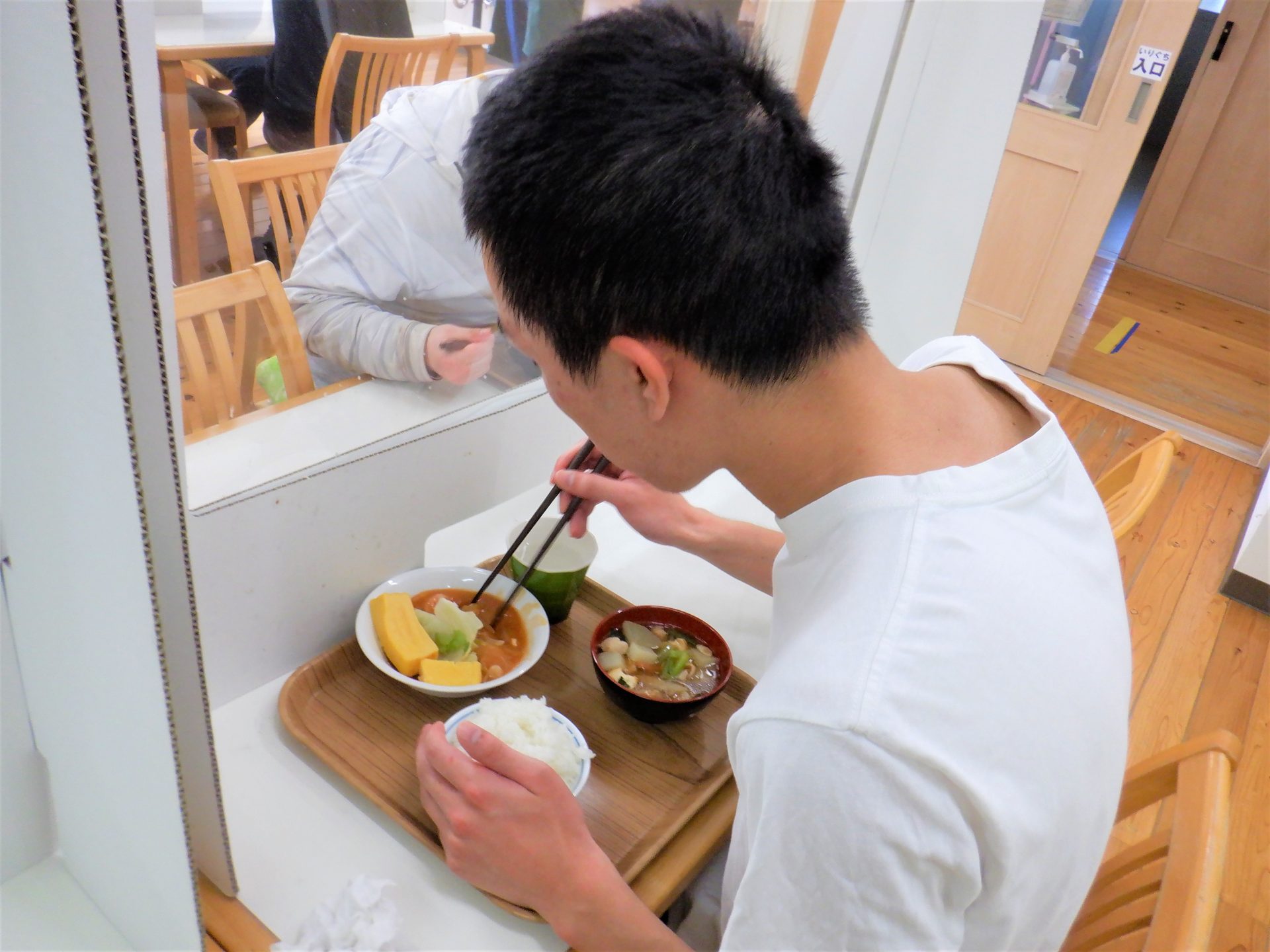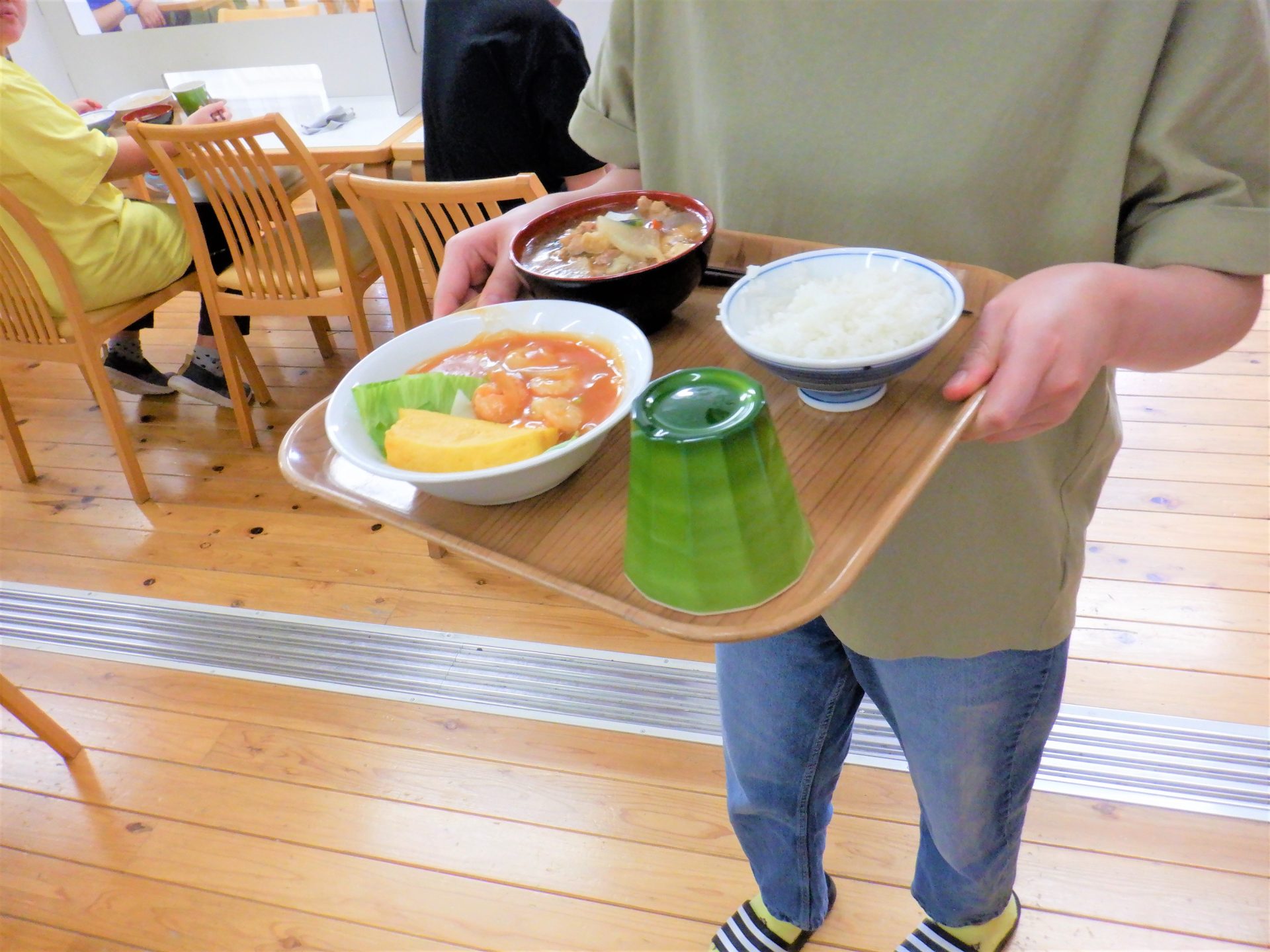 今日は気温も湿度も高いので、食堂ホールはついにエアコン付けました~(´▽`*)