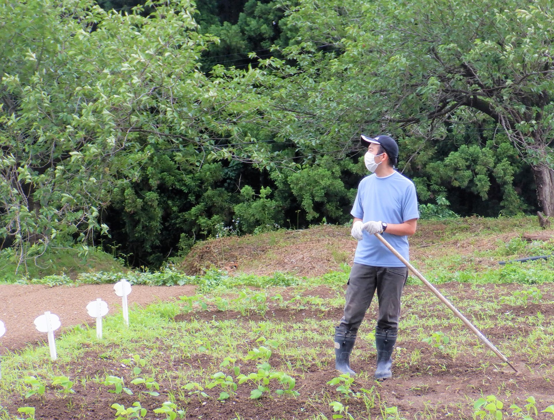 初収穫にちょっと緊張の利用者さん…ドキドキ