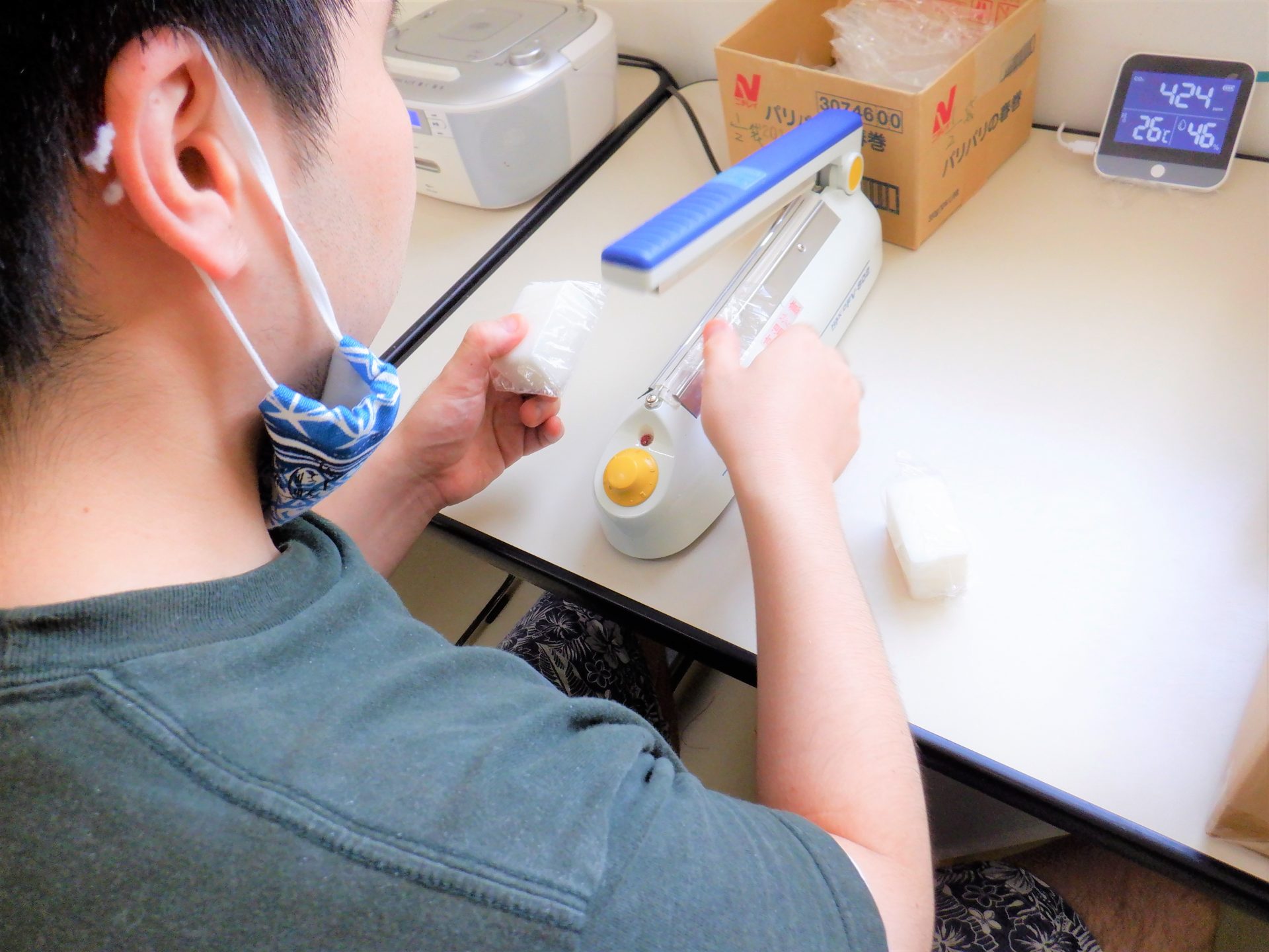 - 「石けんの袋詰め~!」
