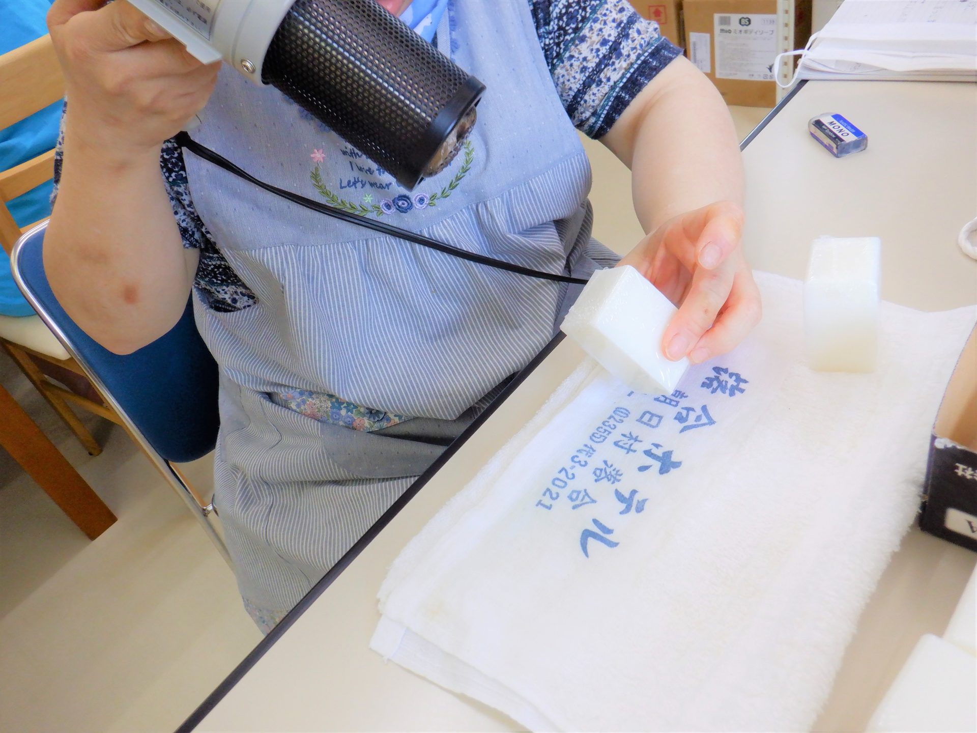 - 「ドライヤーで石けんらラッピング。
