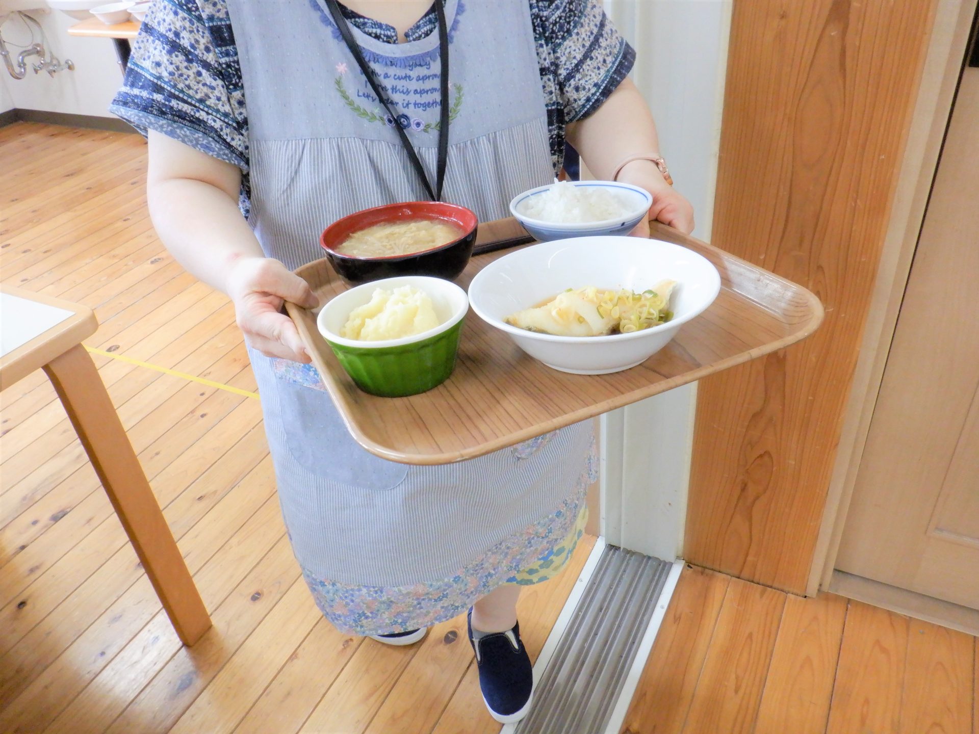 「せっかくだから、畑に行く前に利用者さんのお見送り一緒にしたいわ~」