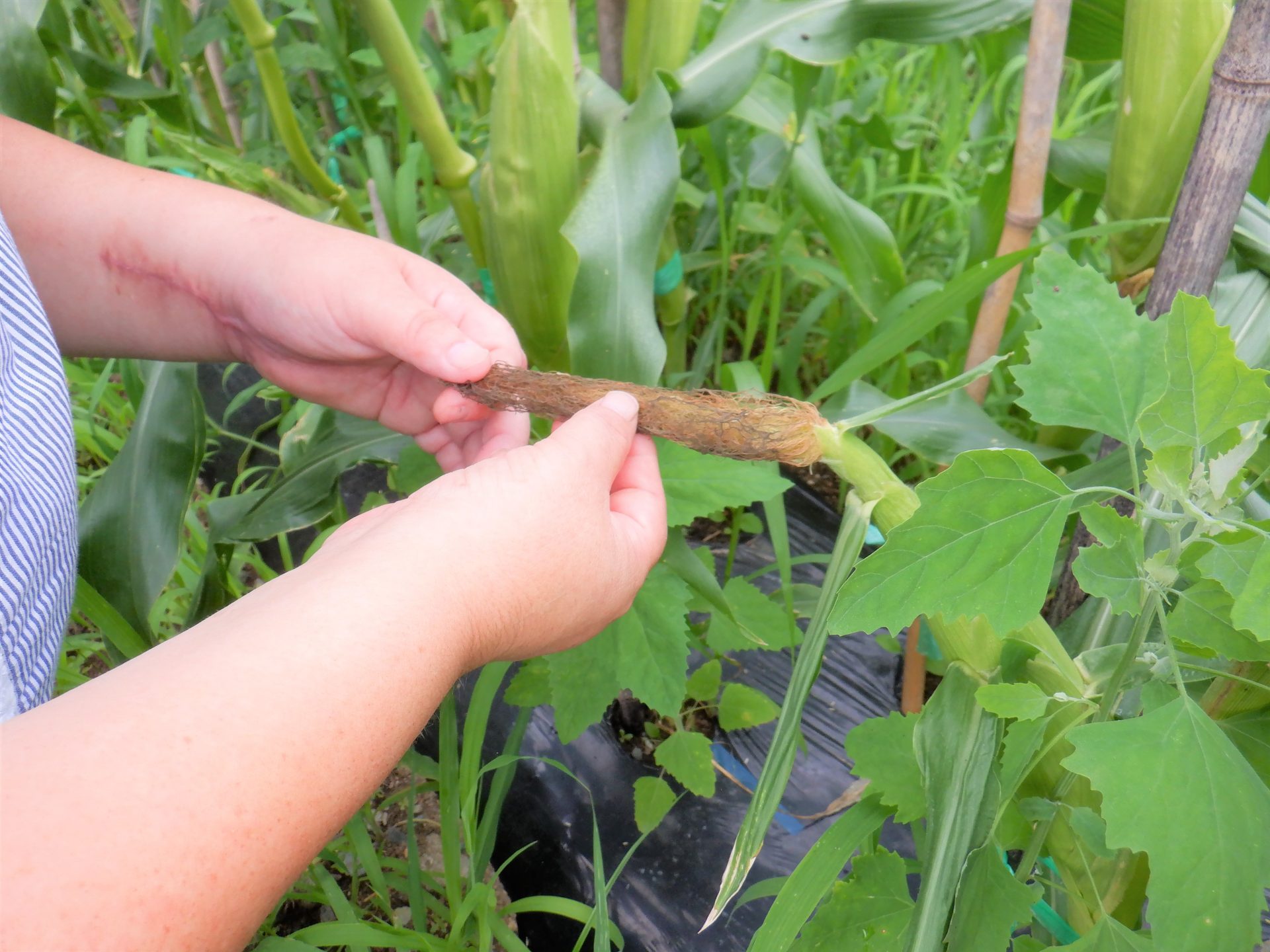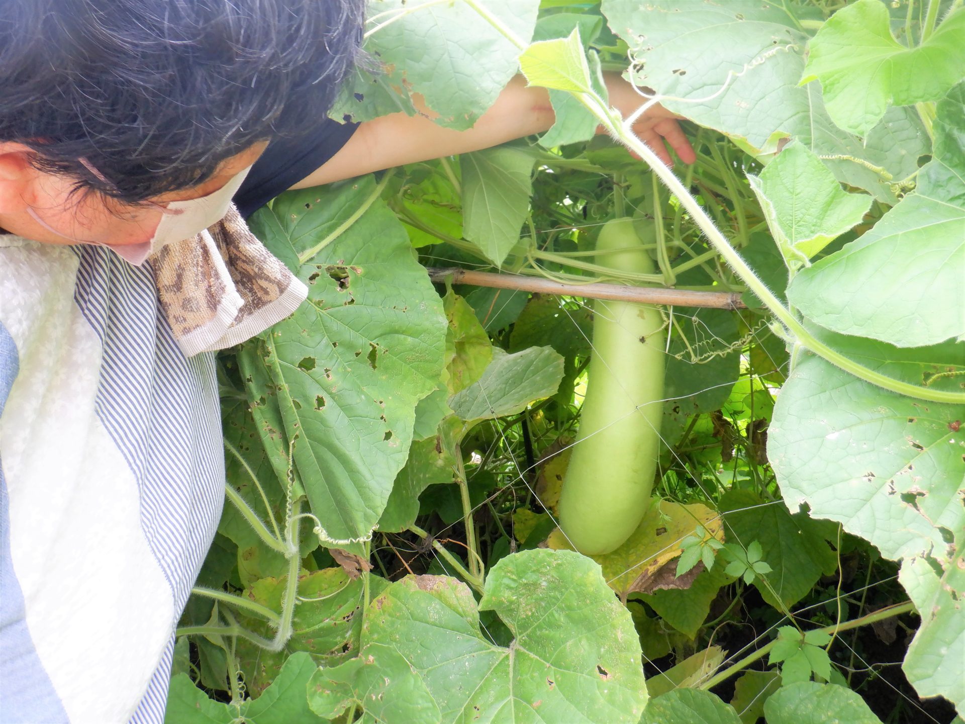 「去年も1回目の収穫はできたのよ~でも2回目の収穫前にアナグマにやられたわけ!だから本当の勝負は今夜なわけ!今日収穫した切り口から甘い香りが出てて、それを嗅ぎつけて動物が来るわけだから、今日の夜も爆竹バンバン焚かなきゃ!!!」