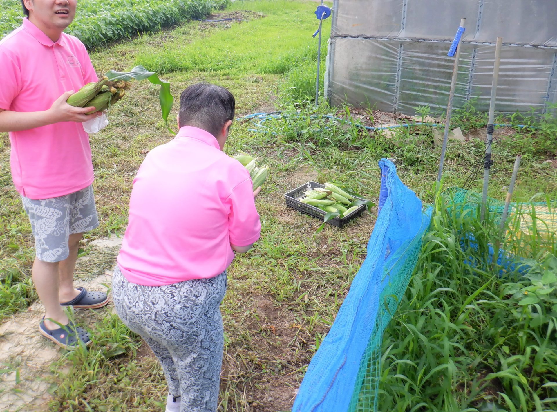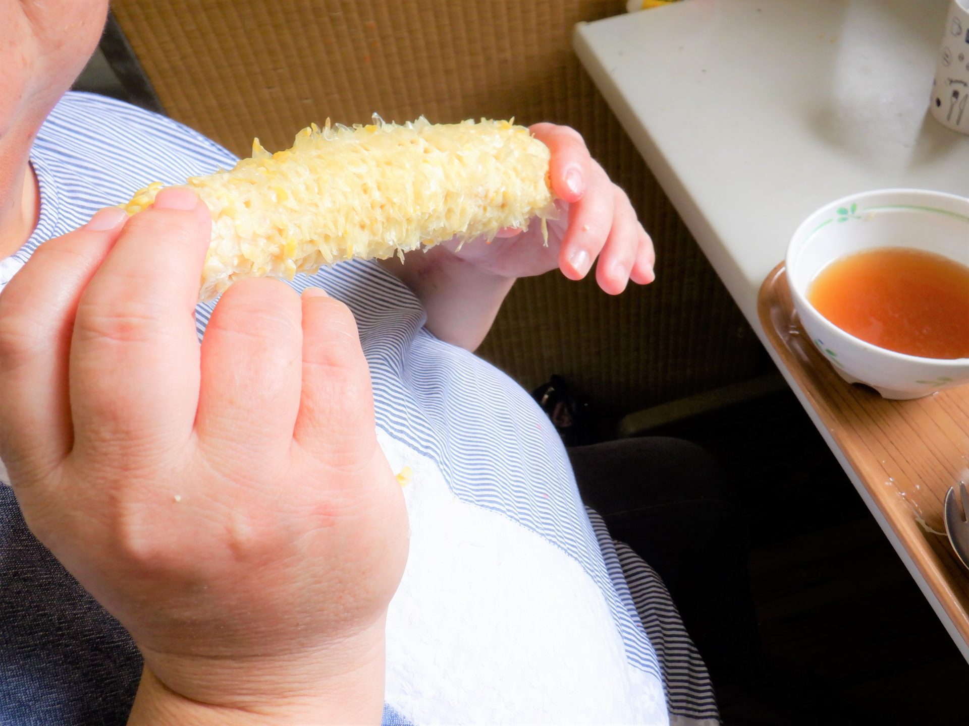 「歯医者終わってから来たよ~今日のトウモロコシ楽しみだ~♪」