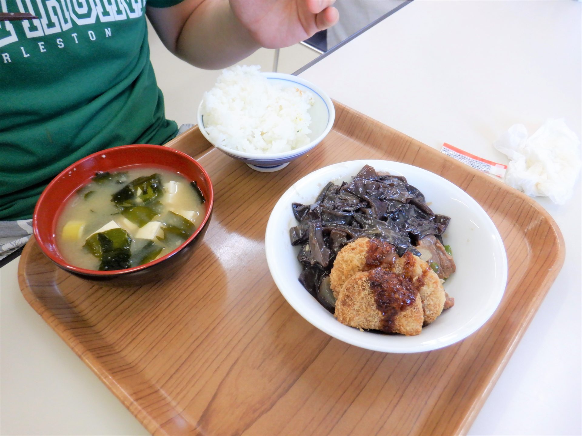 じゃ~ん!キクラゲと牛肉とピーマンの炒め物&カレーコロッケ?メンチ?