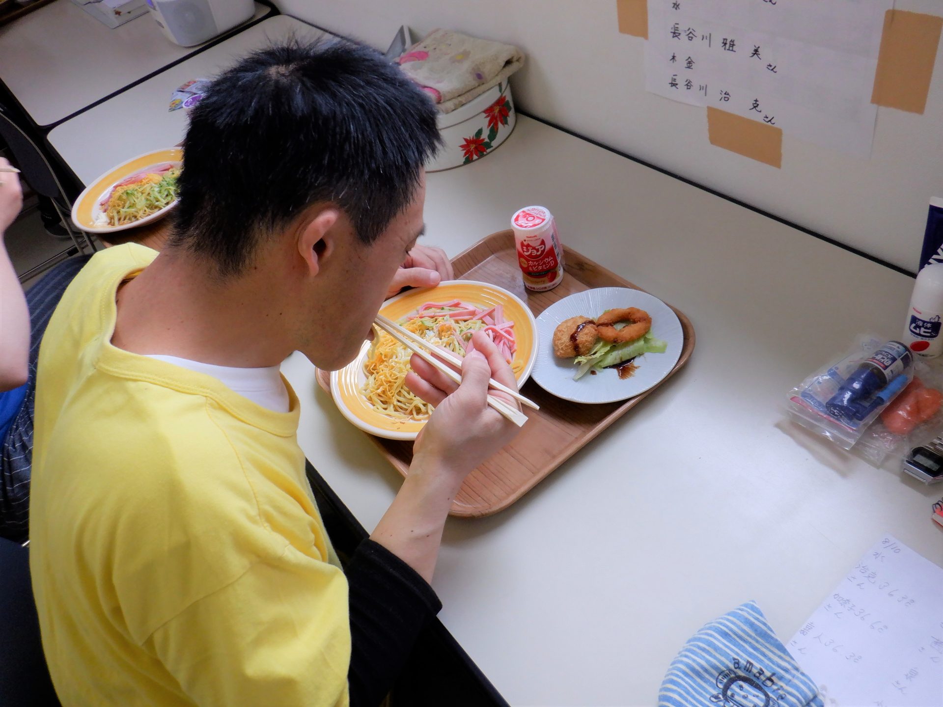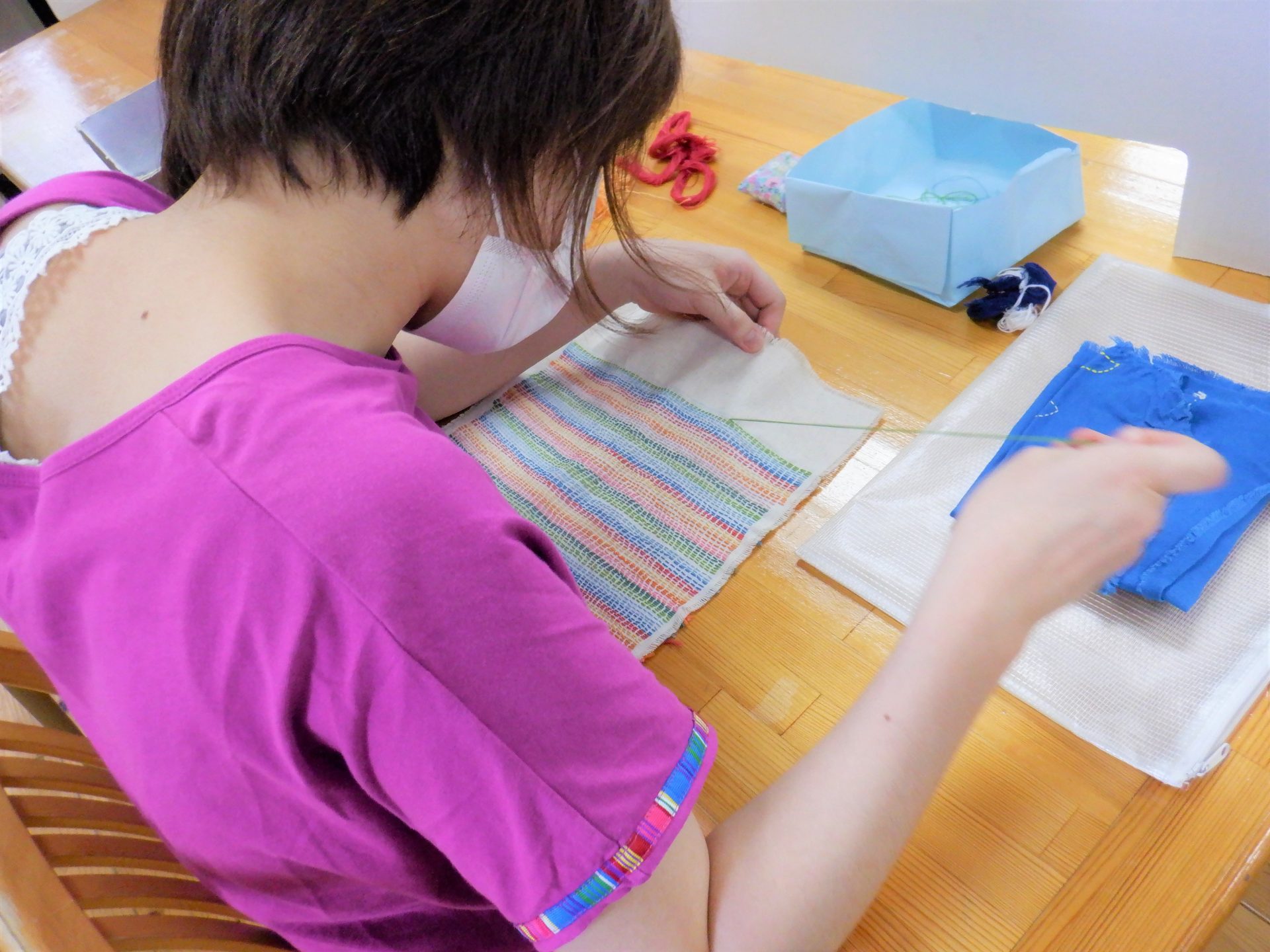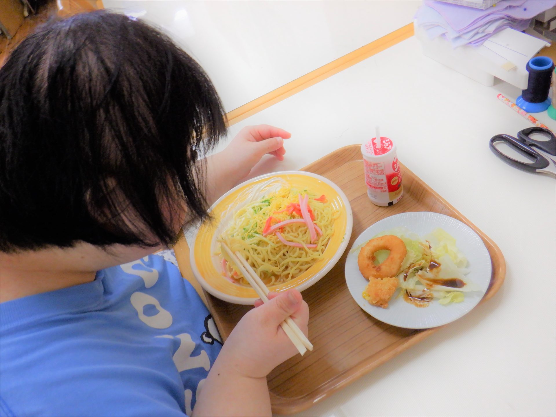裁縫班に戻って…「あれ?今日の給食なんだっけ?」