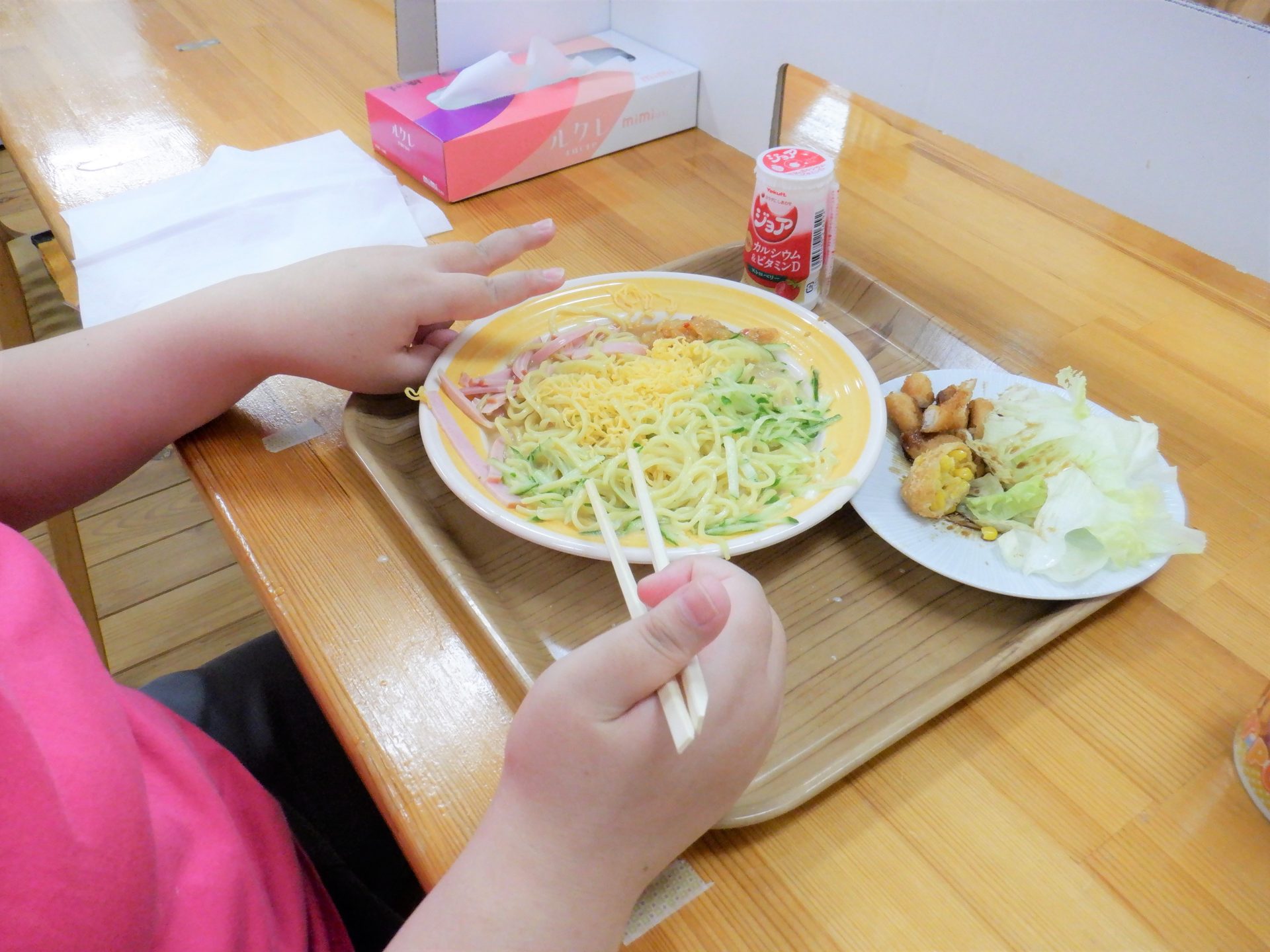 休み前の最後の給食は、大満足の冷やし中華でした~(*´ω`*)