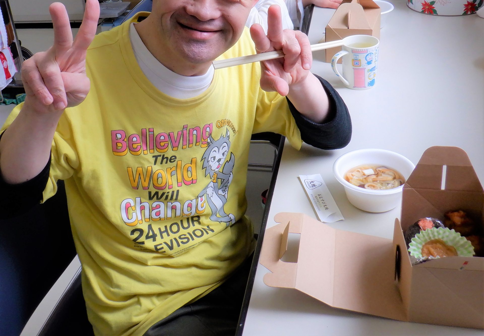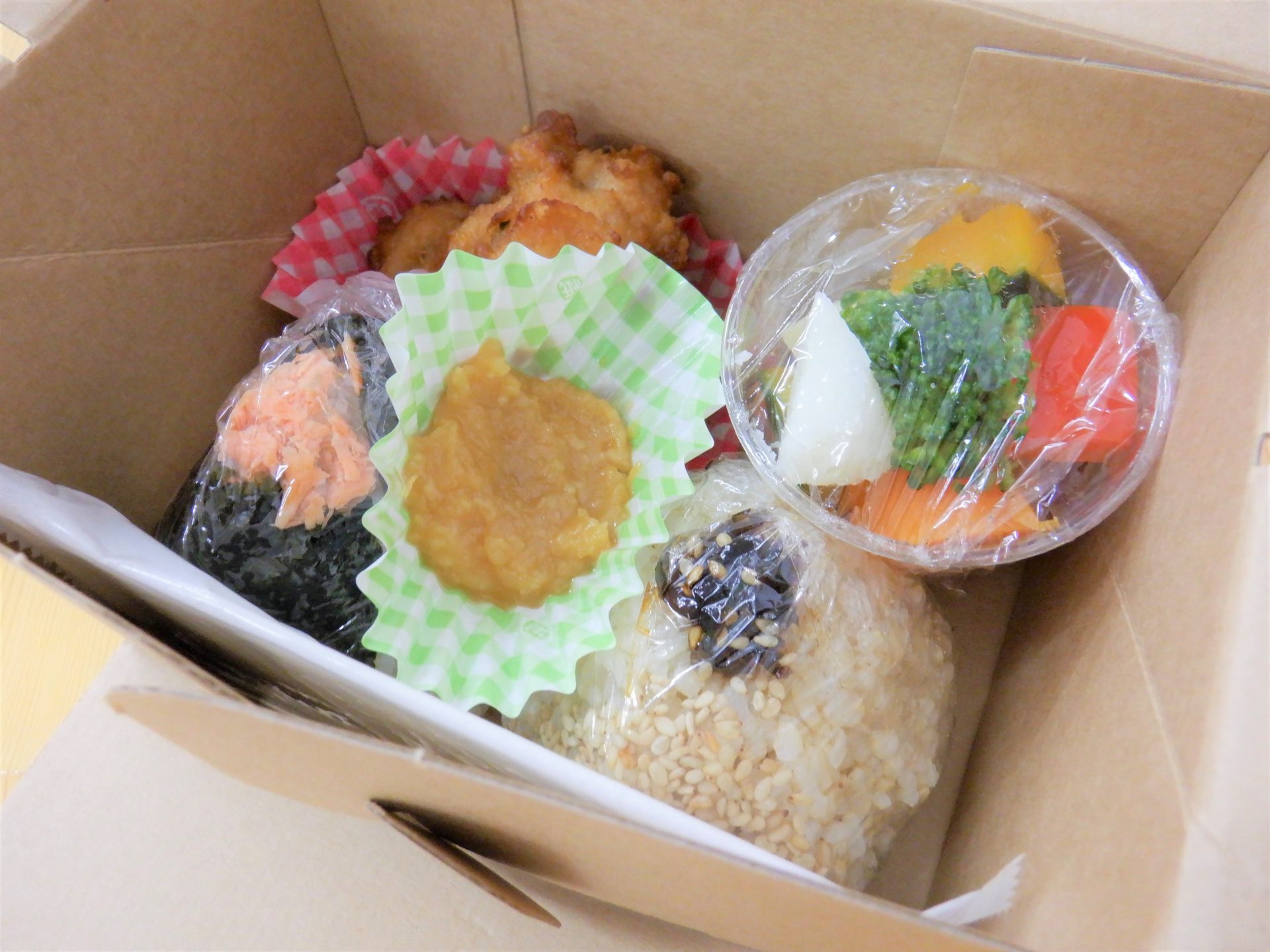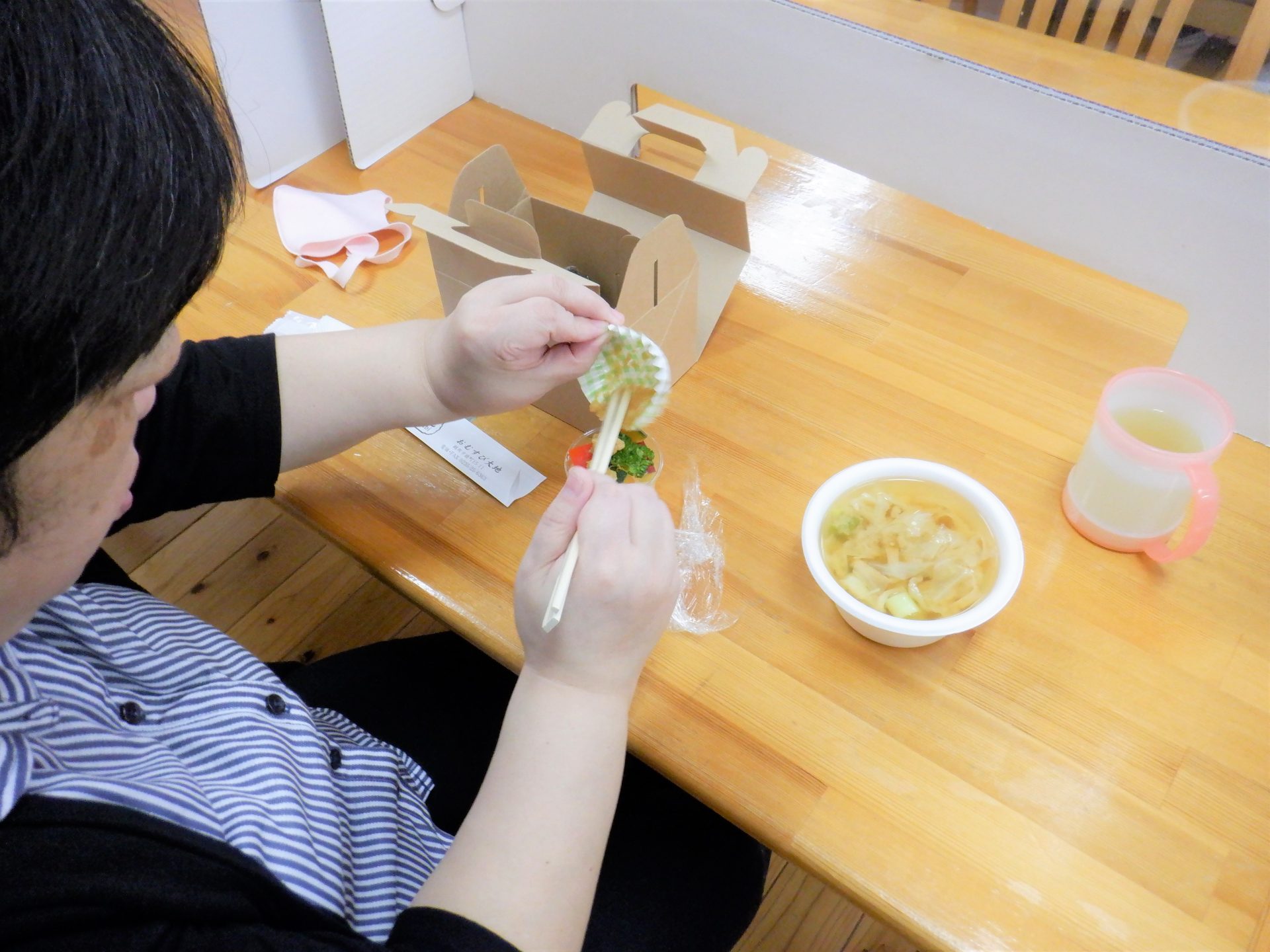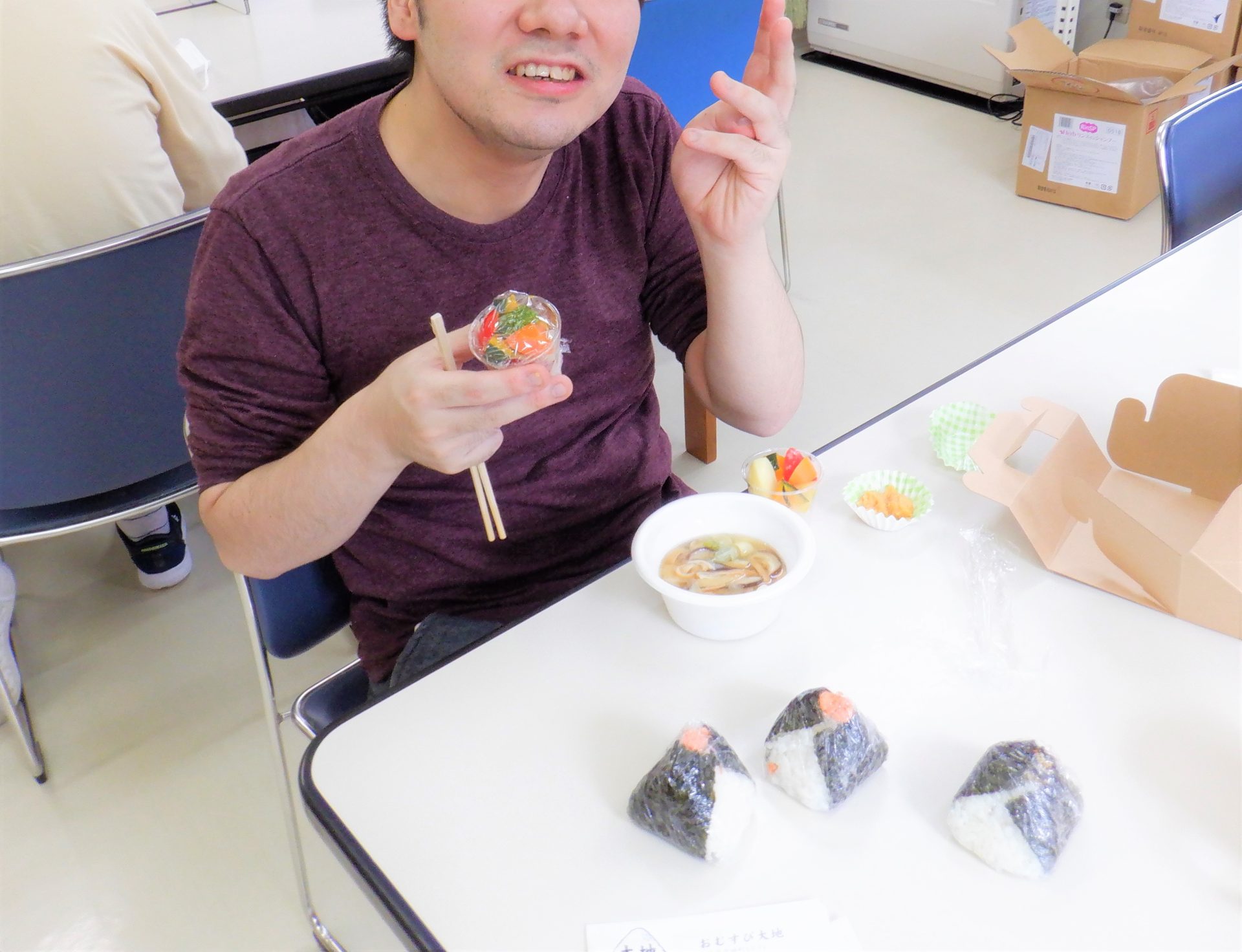 昨日は昼食お弁当対応だったのですが、初めて「おにぎり大地」さんにランチセットを注文しました~♡