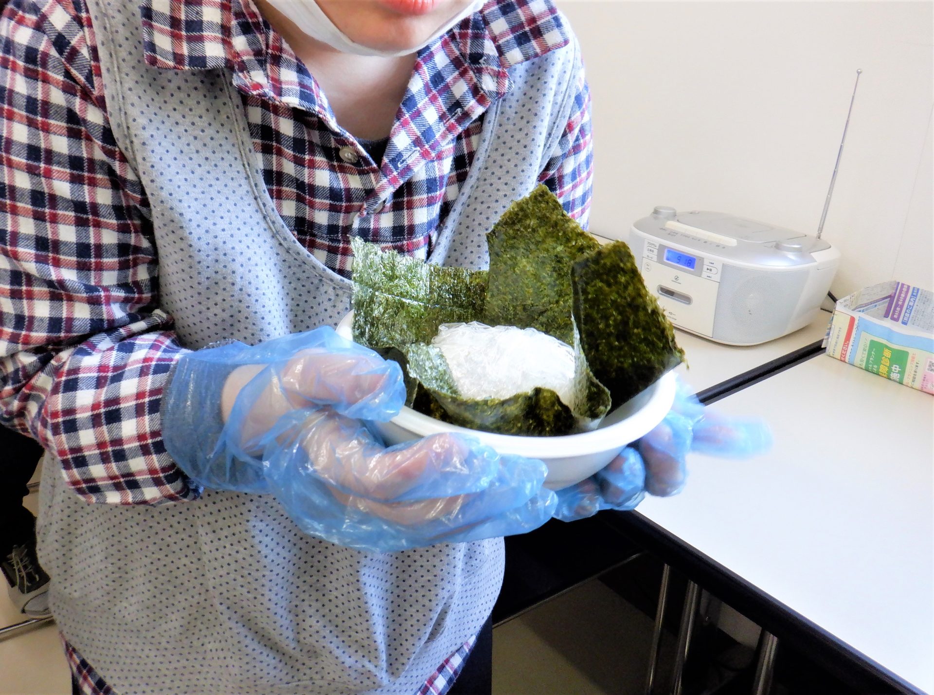 11時半になりました~作業終了~!手を洗っておにぎり作り開始!