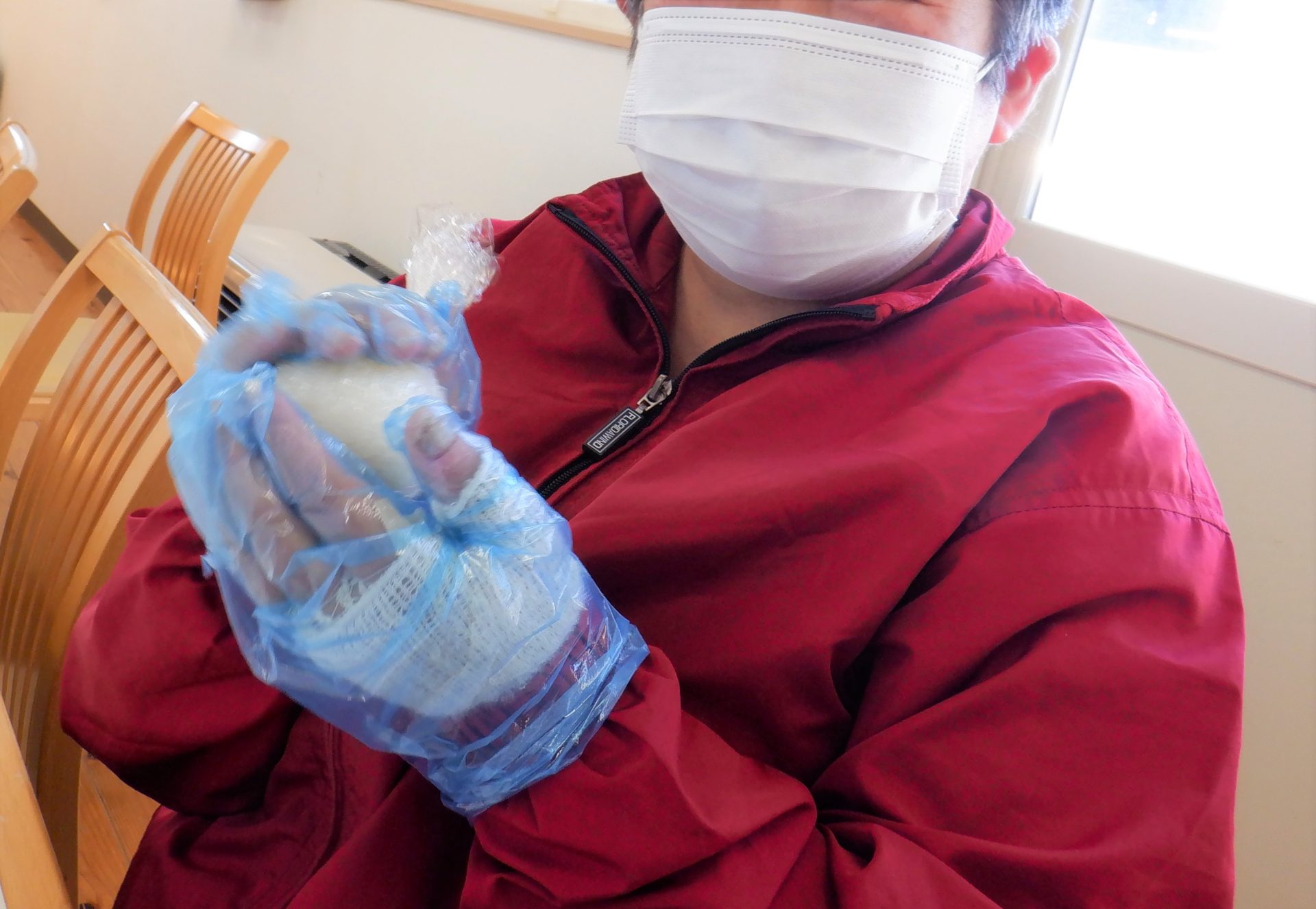 今回は手袋もあてて、さらにラップで包んで作ります~(´▽`*)