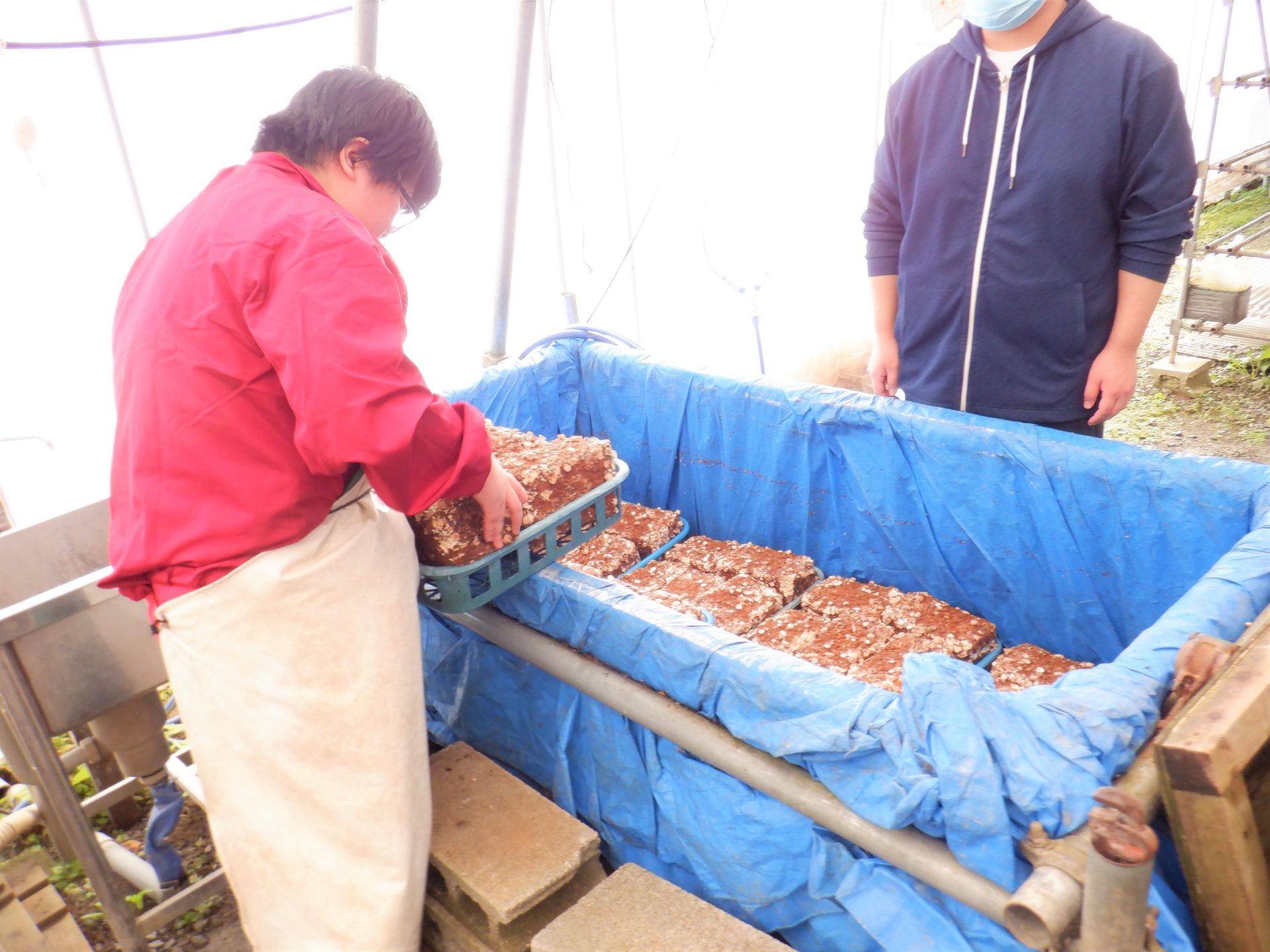 - こちらは菌床の浸水作業~