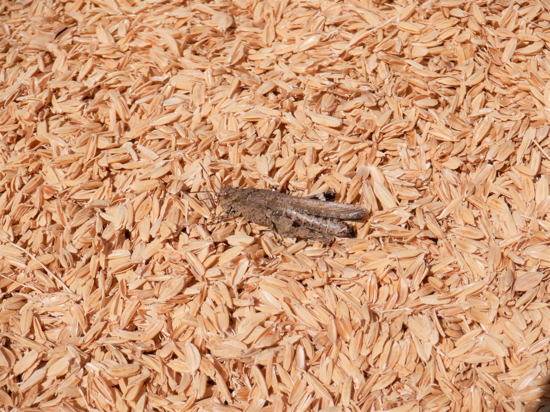 畑から青空を眺めていたら…もみ殻の上に…