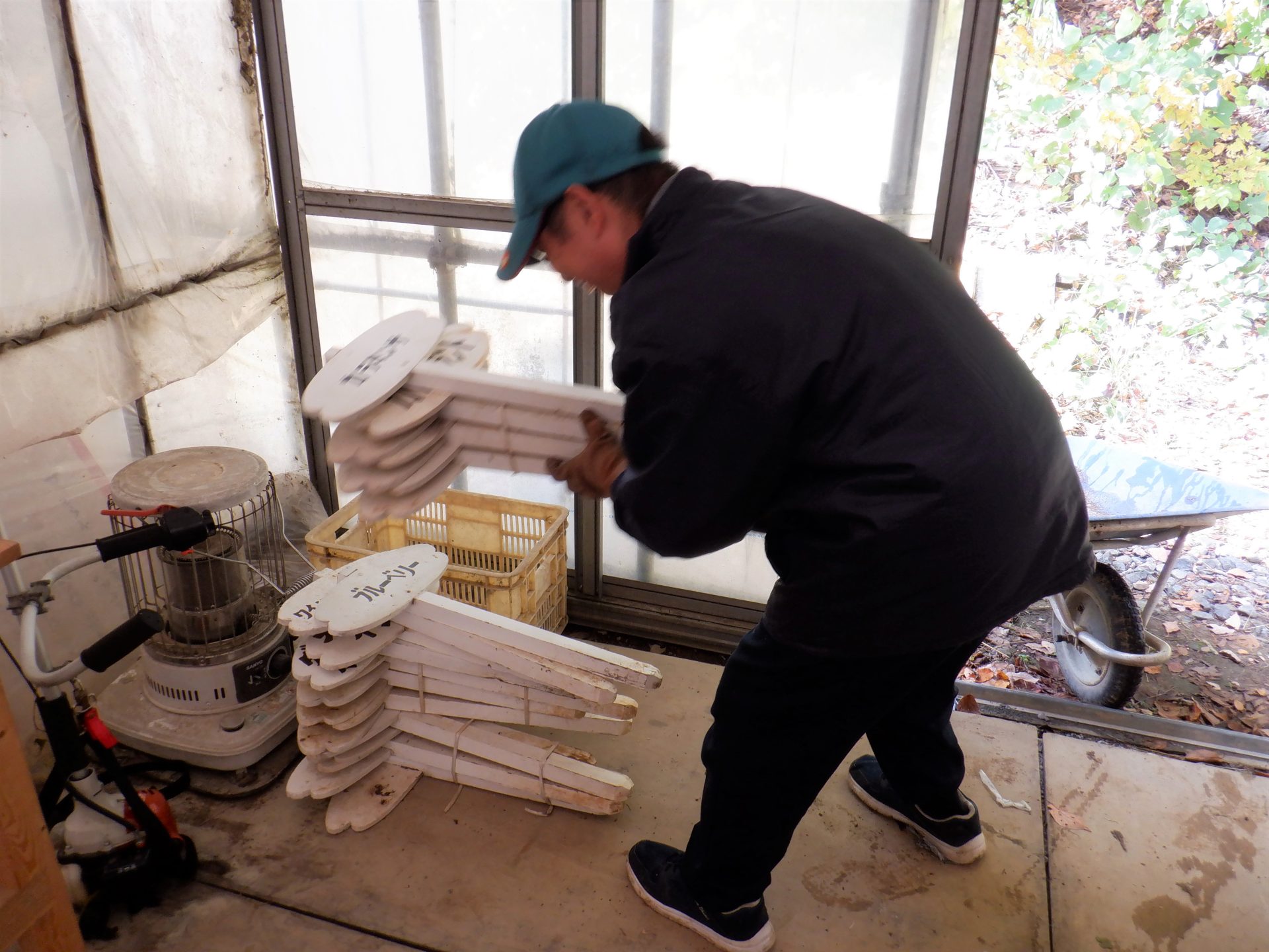 木工班は一昨日からハウスの裏の崩れた物置の撤去作業~(=゚ω゚)ノ