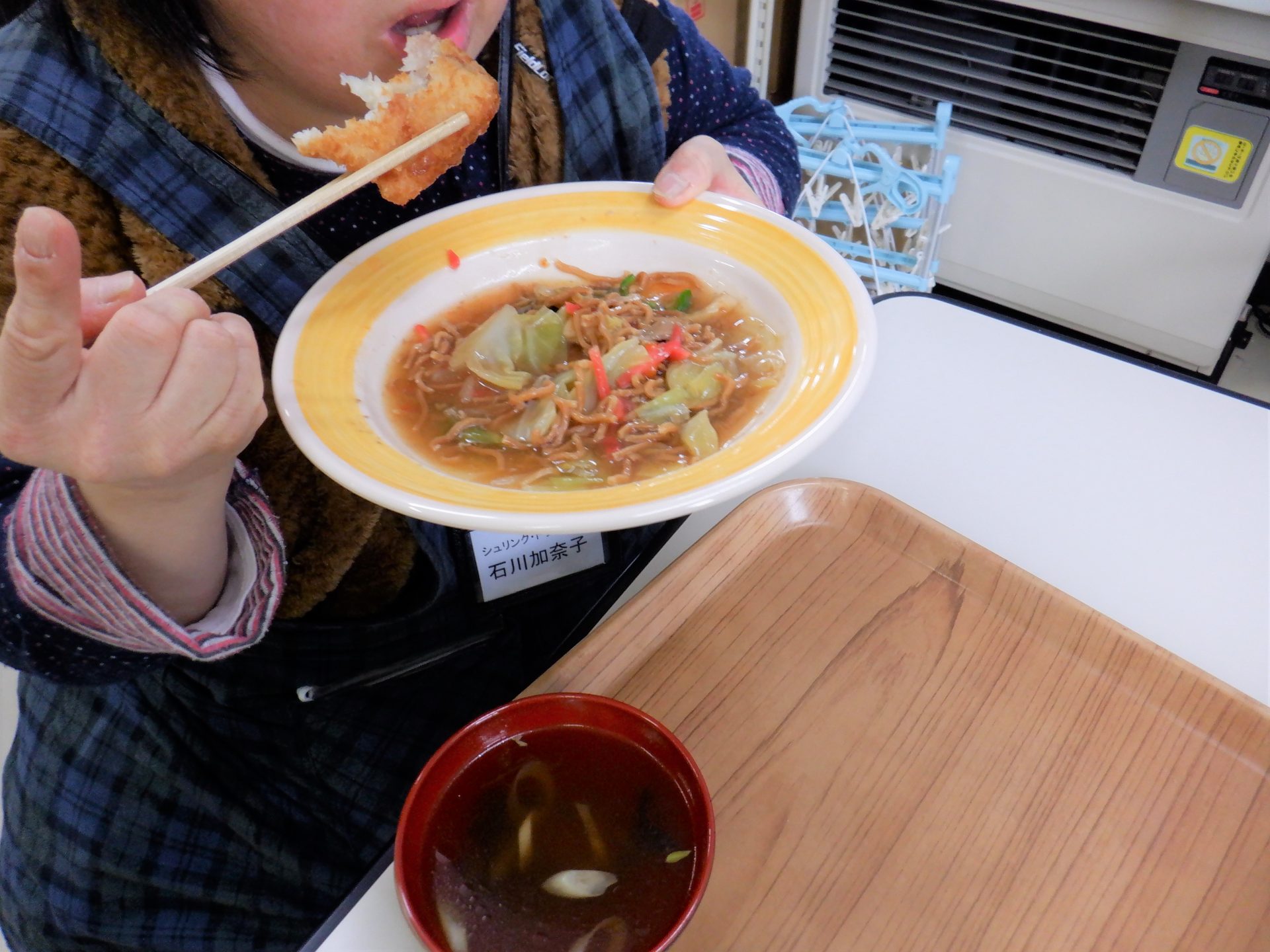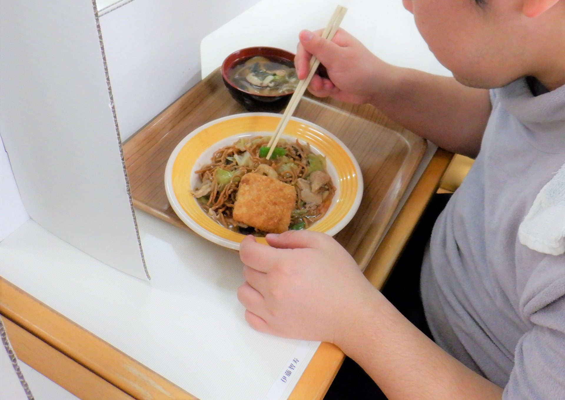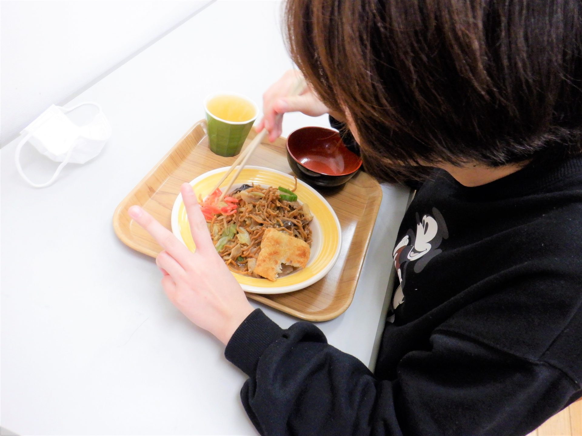 今日の給食はみんな大好き揚げ焼きそば~(*^▽^*)