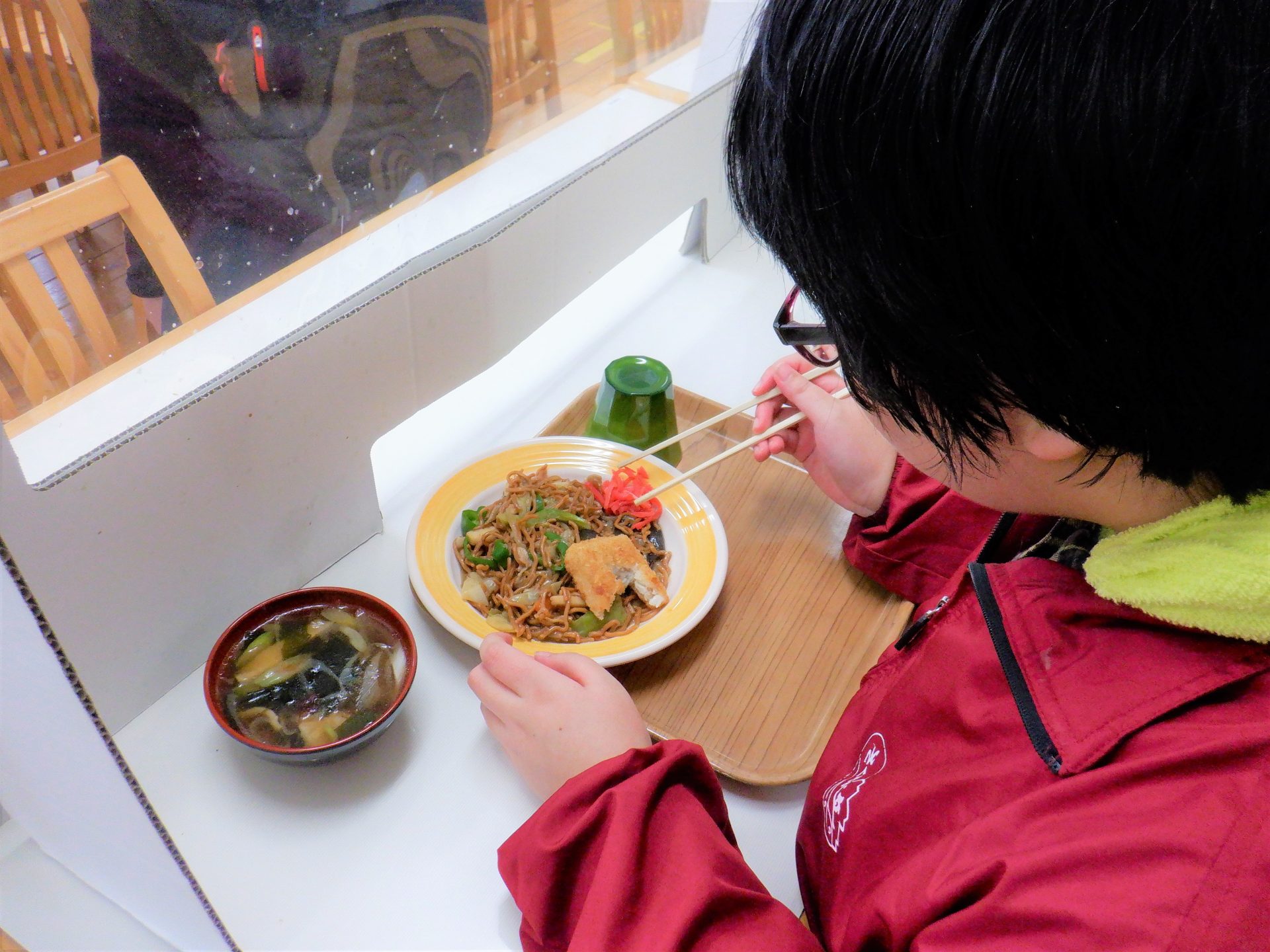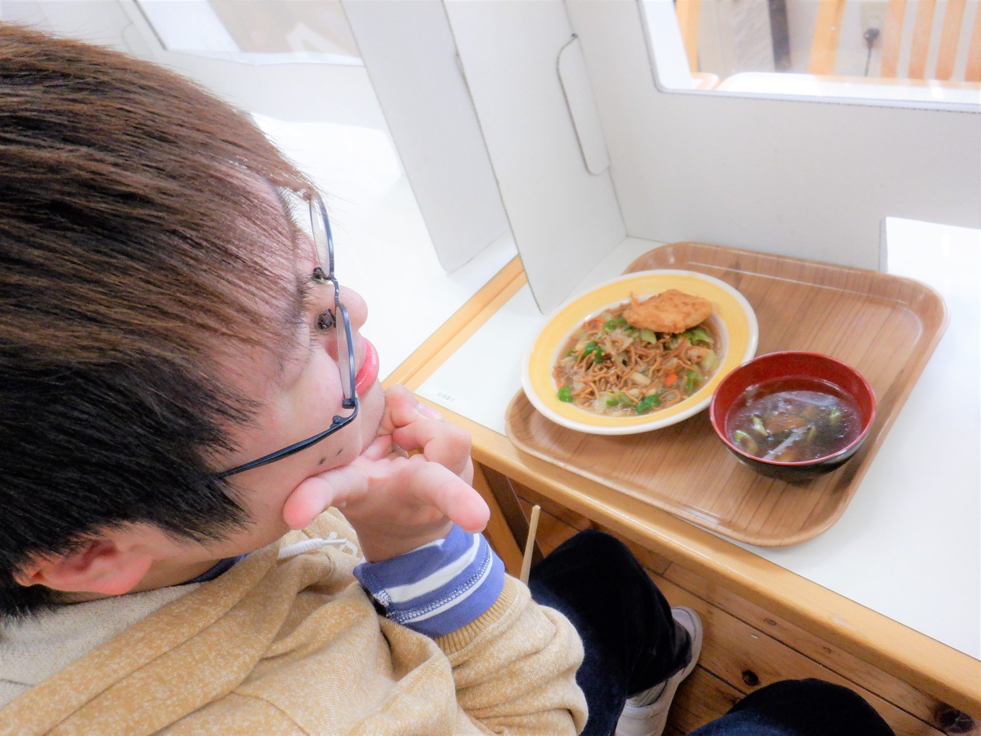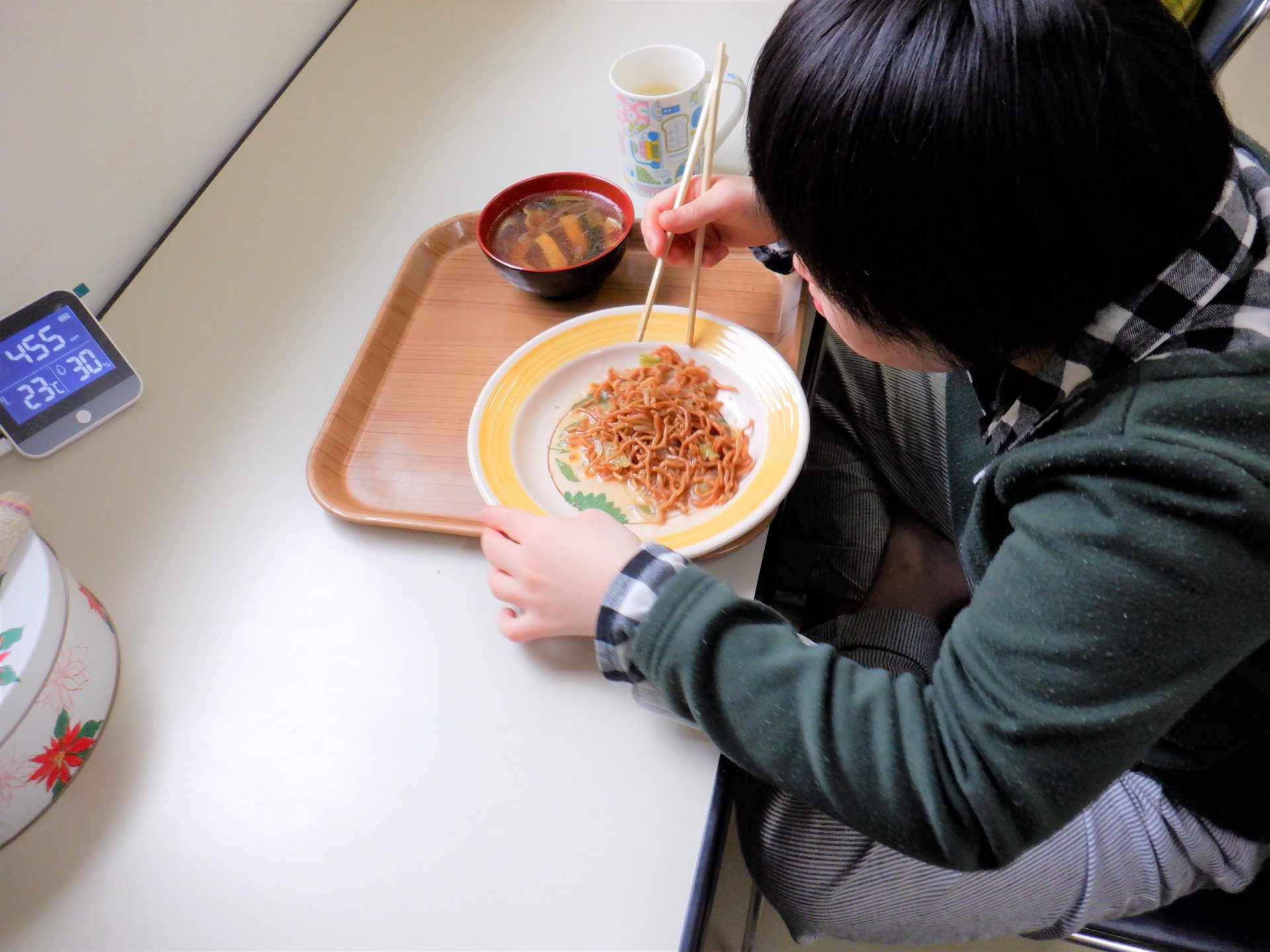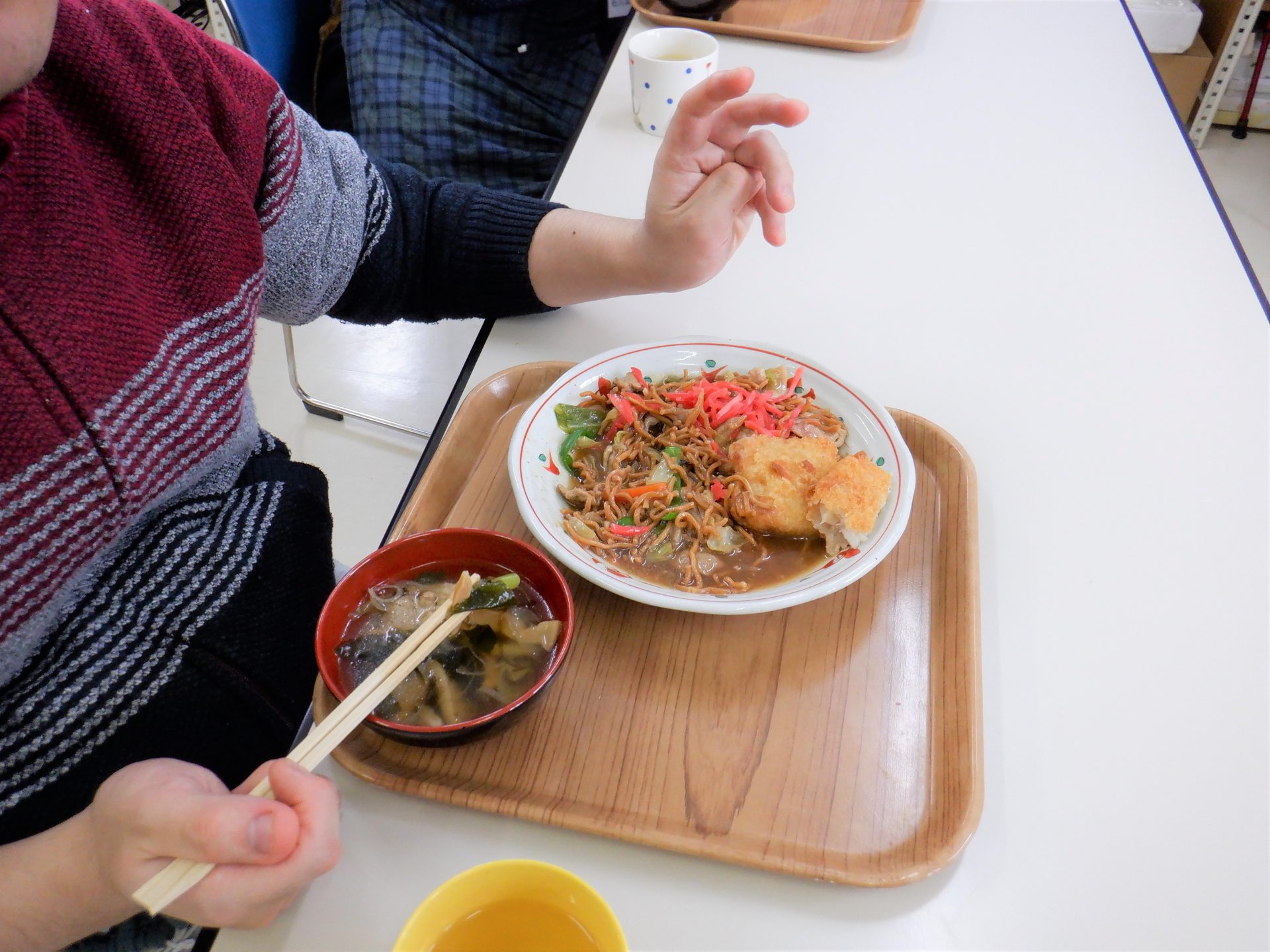 今日の給食はみんな大好き揚げ焼きそば~(*^▽^*)