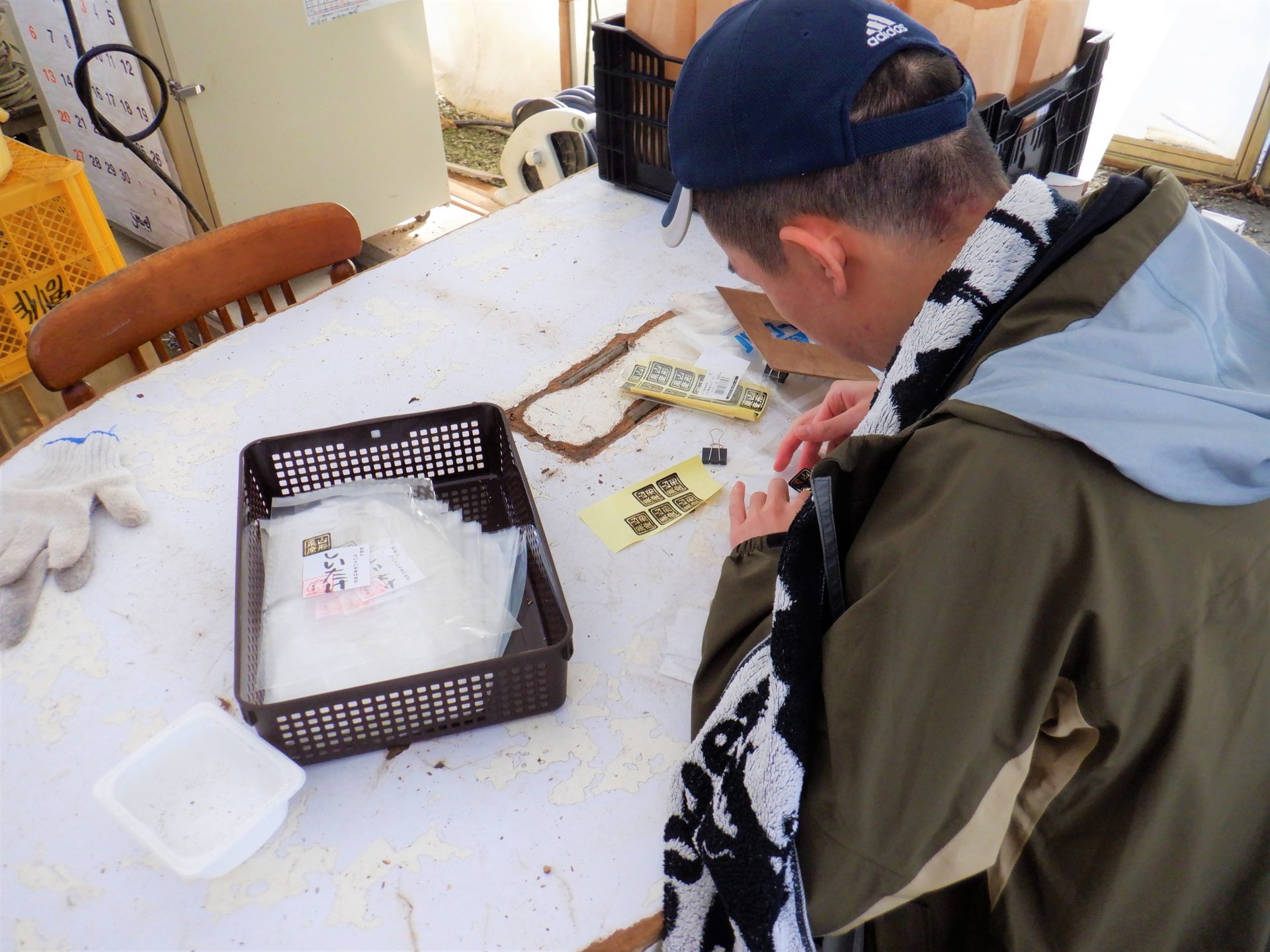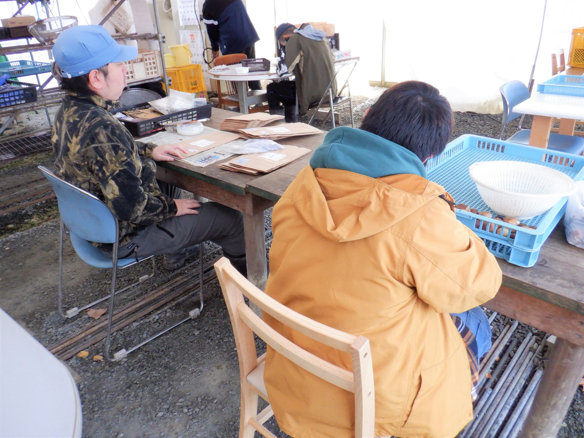 でも利用者さんは菌床の袋開けガツガツ!熱気が~(;^_^A