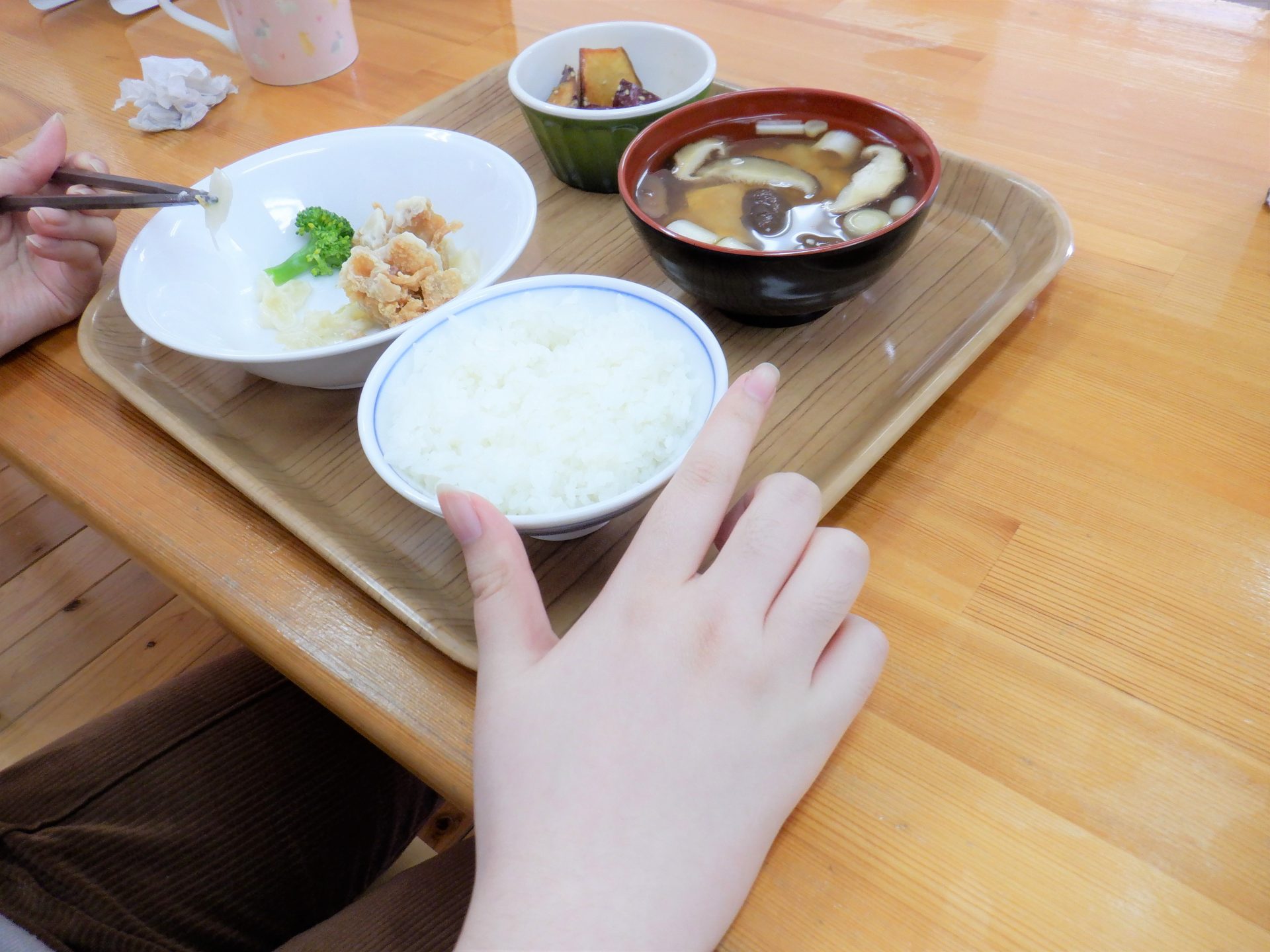 なにか…揚げた香ばしい匂い…ん?たしか今日は大学芋あったよね!嬉しすぎ!!