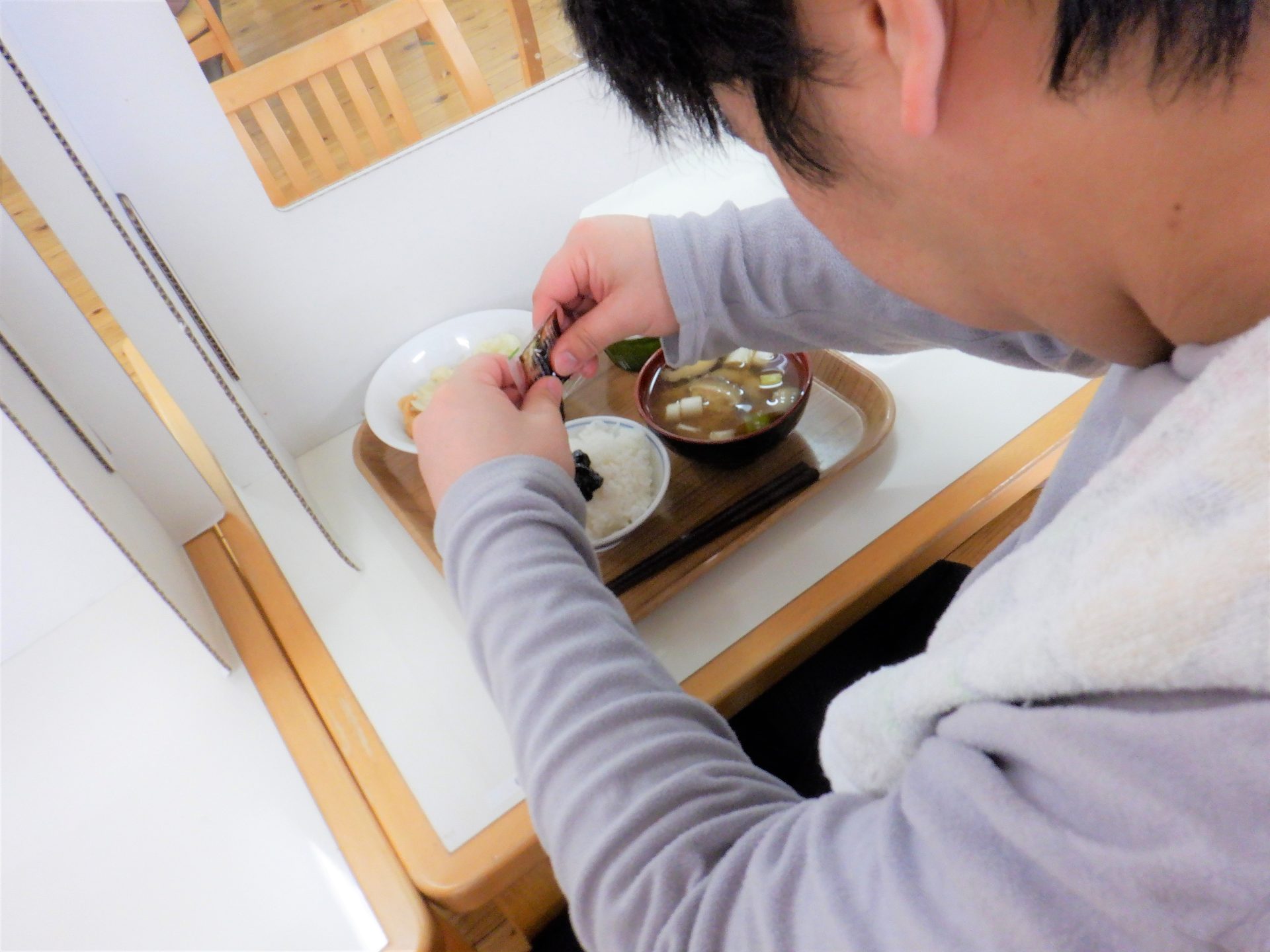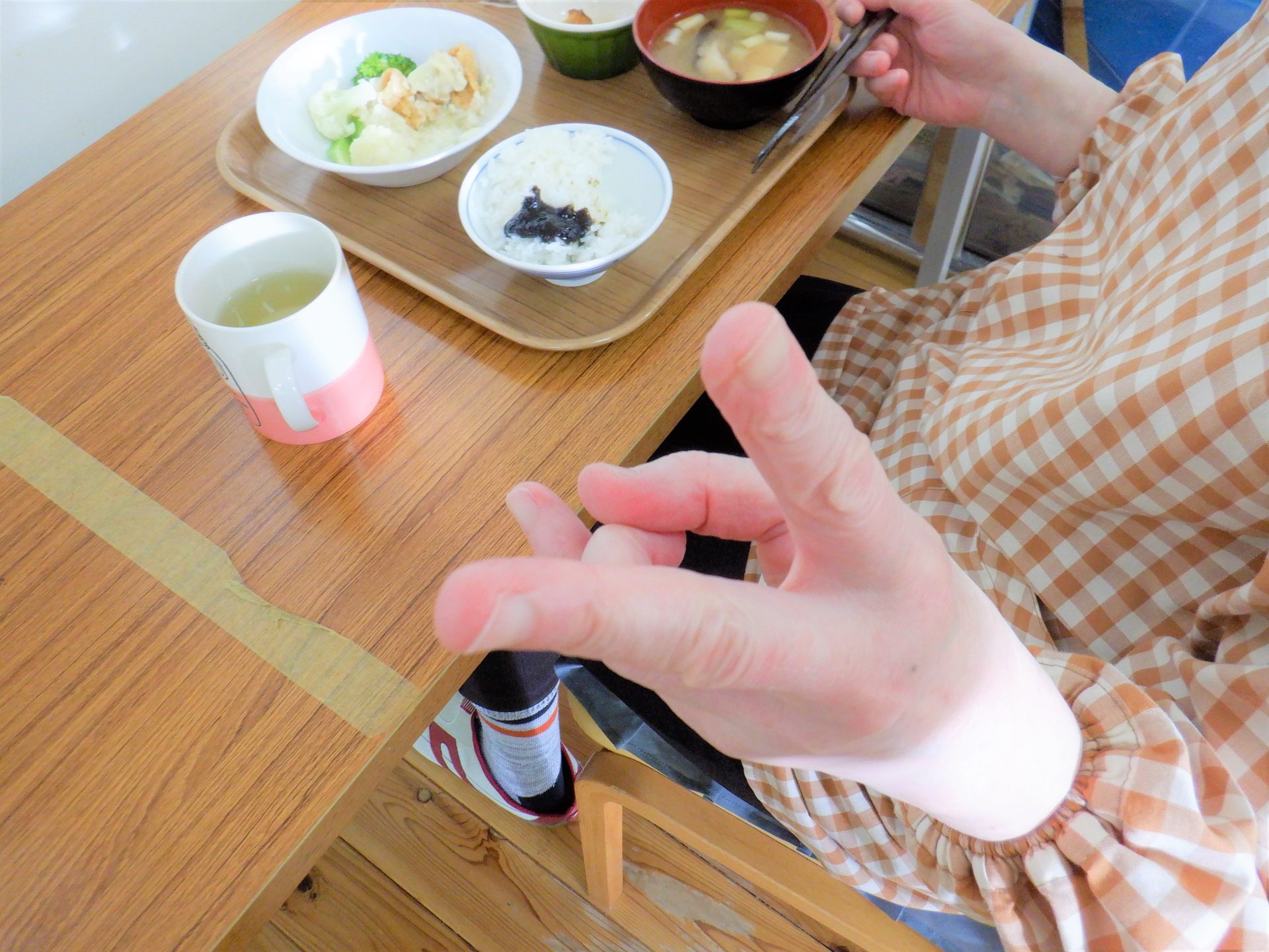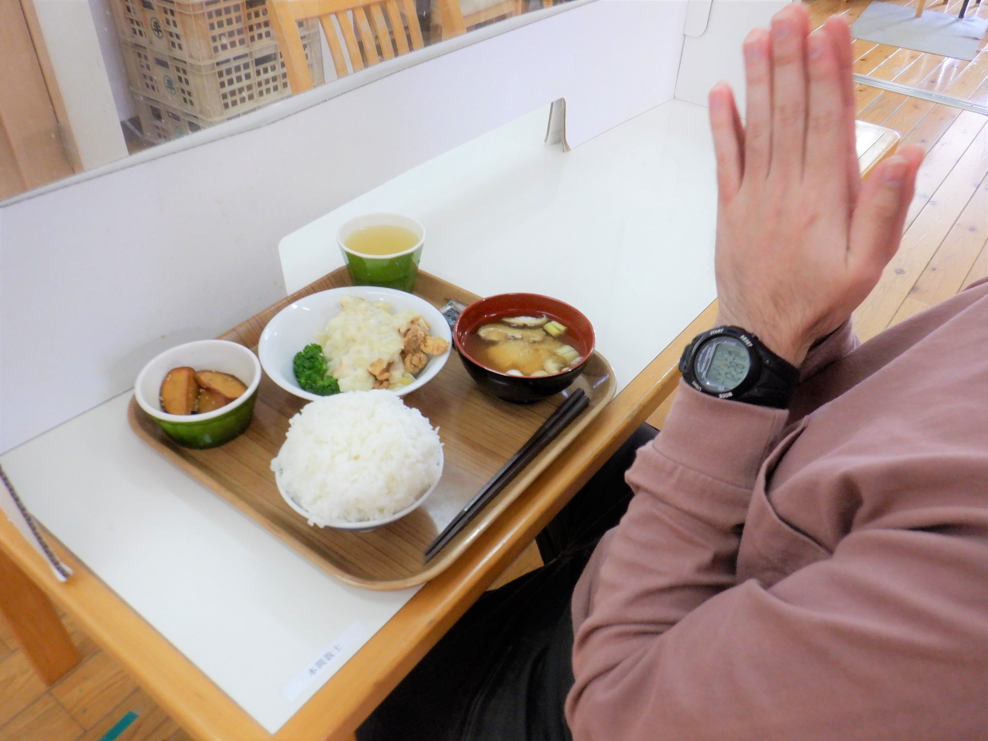 「おはようございます~、今日の給食なんだっけ?