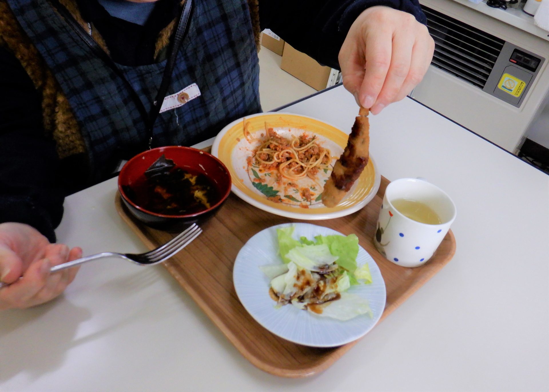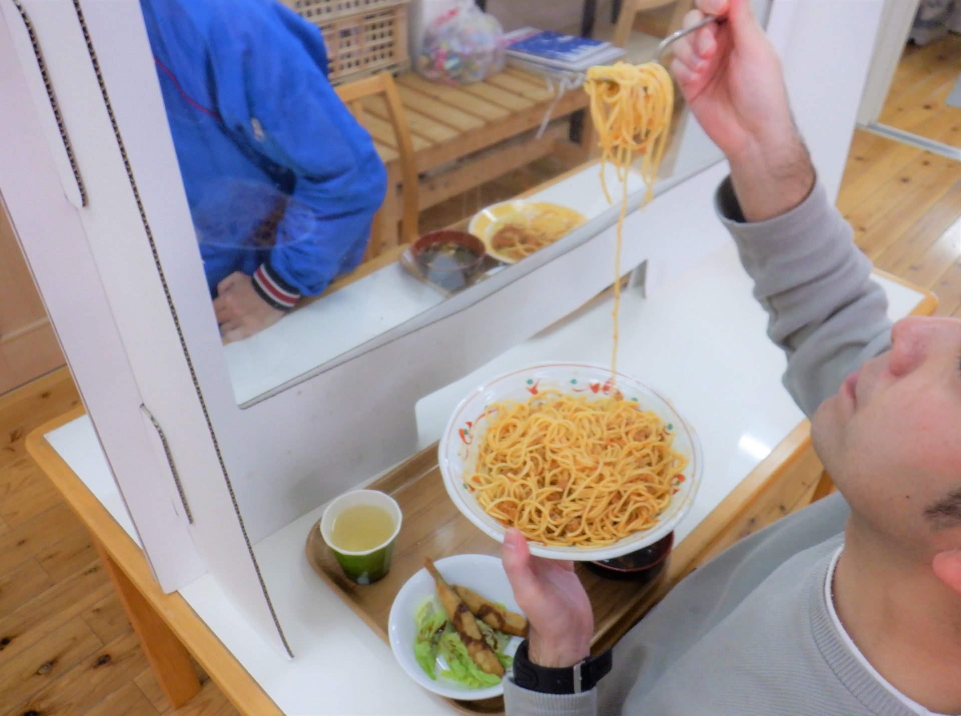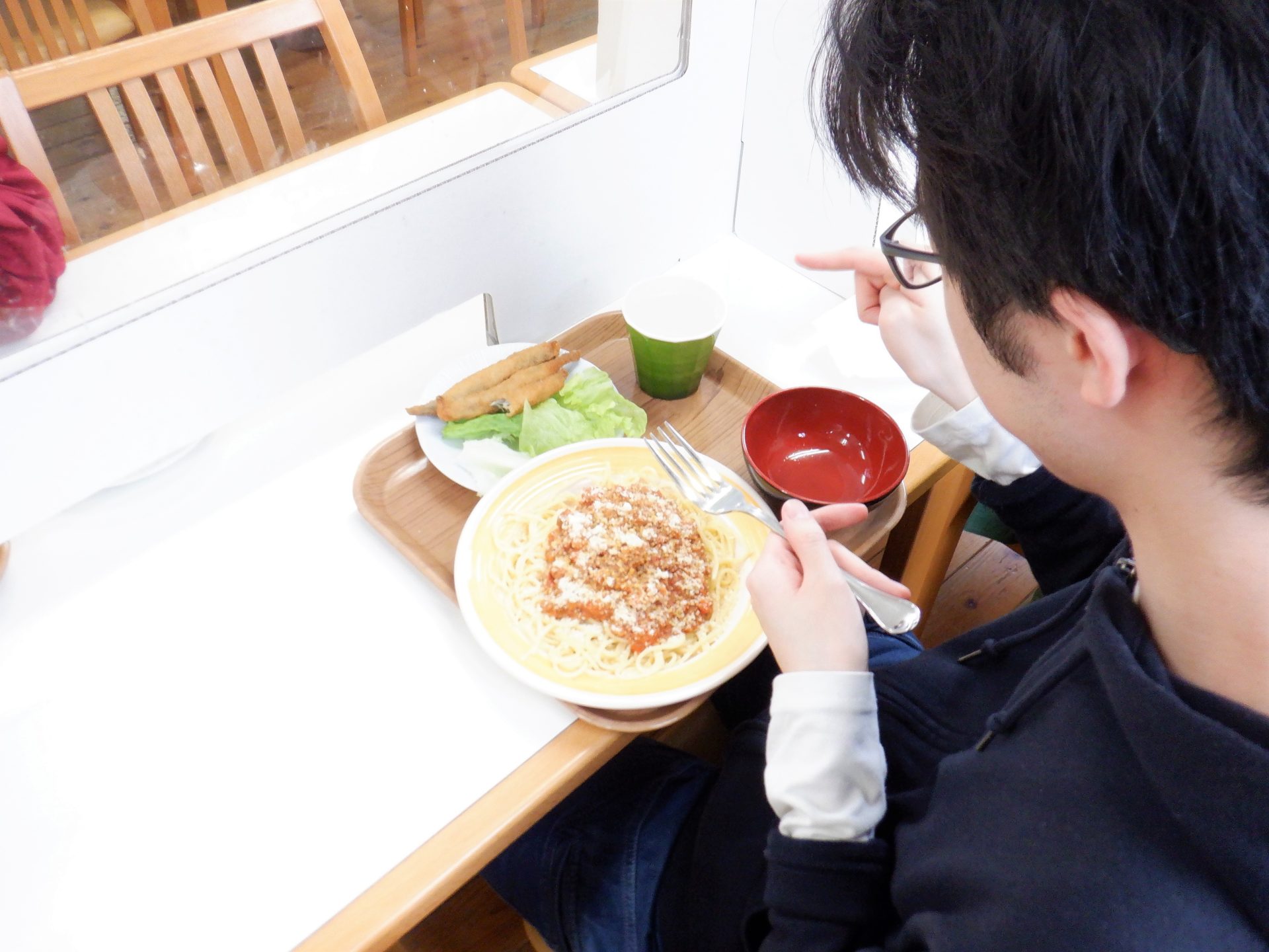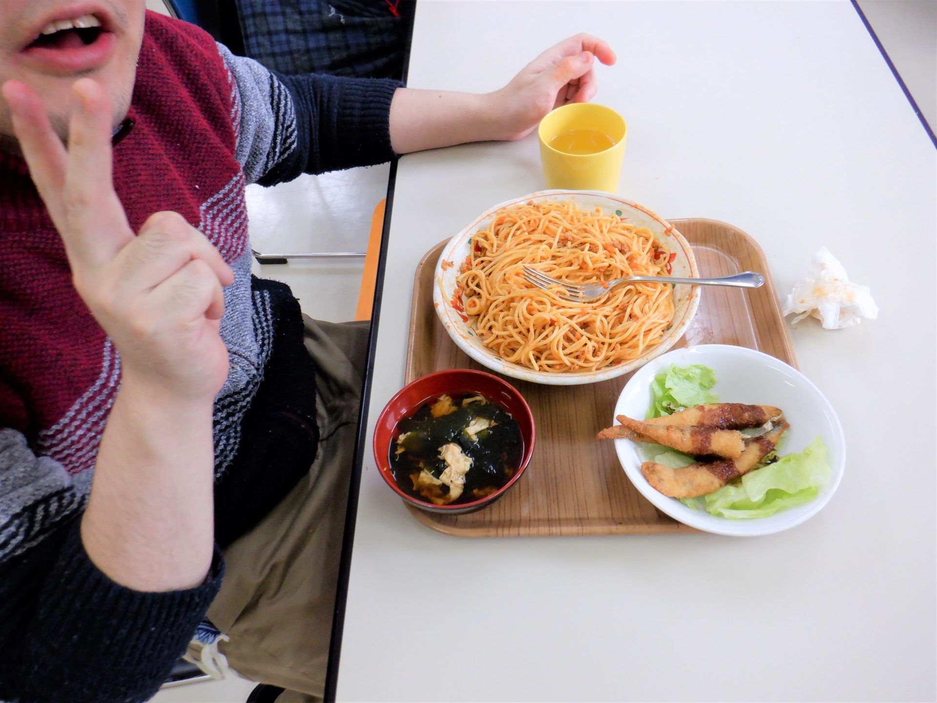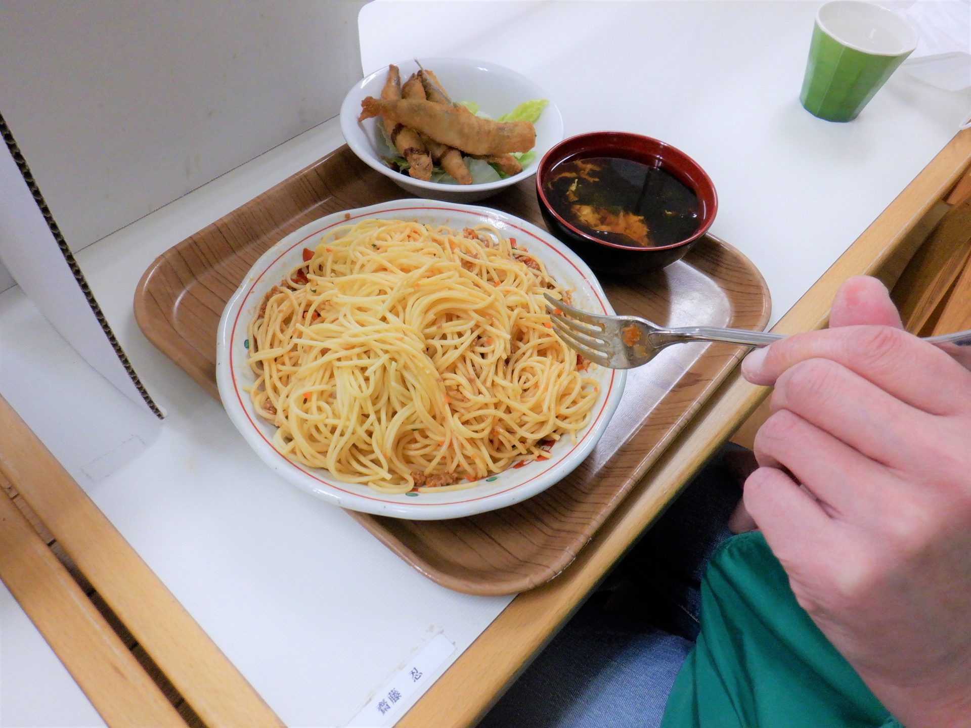 ミートソーススパゲティ~とシシャモフライだ~!(^^)/
