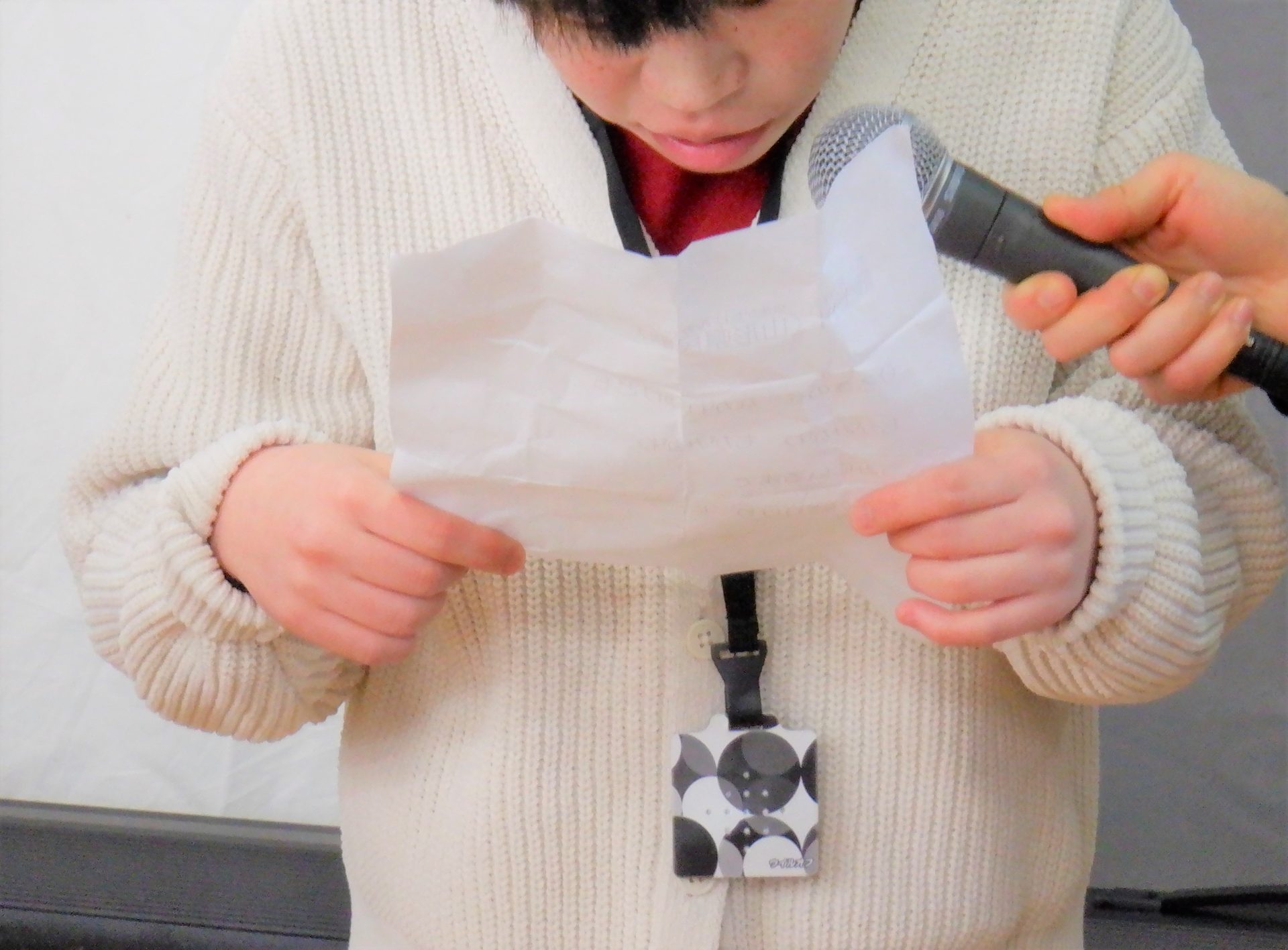 1人で前に出て、しかも歌を歌うなんて、今までの〇〇さんからは想像できない!凄い!(←施設長)