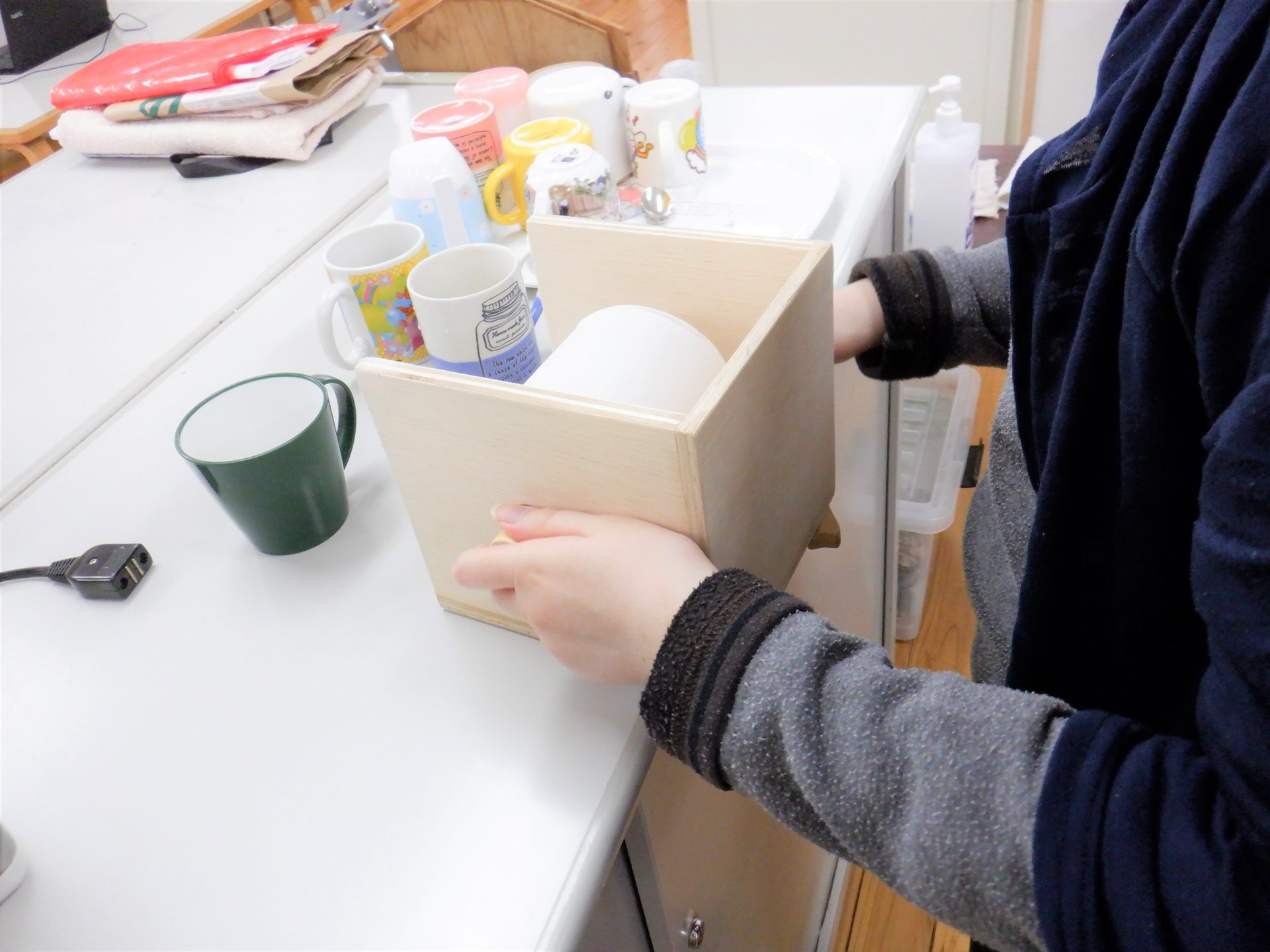 今日は(火)で空き缶回収なので木工班は午前中は館内で作業中~(´▽`*)