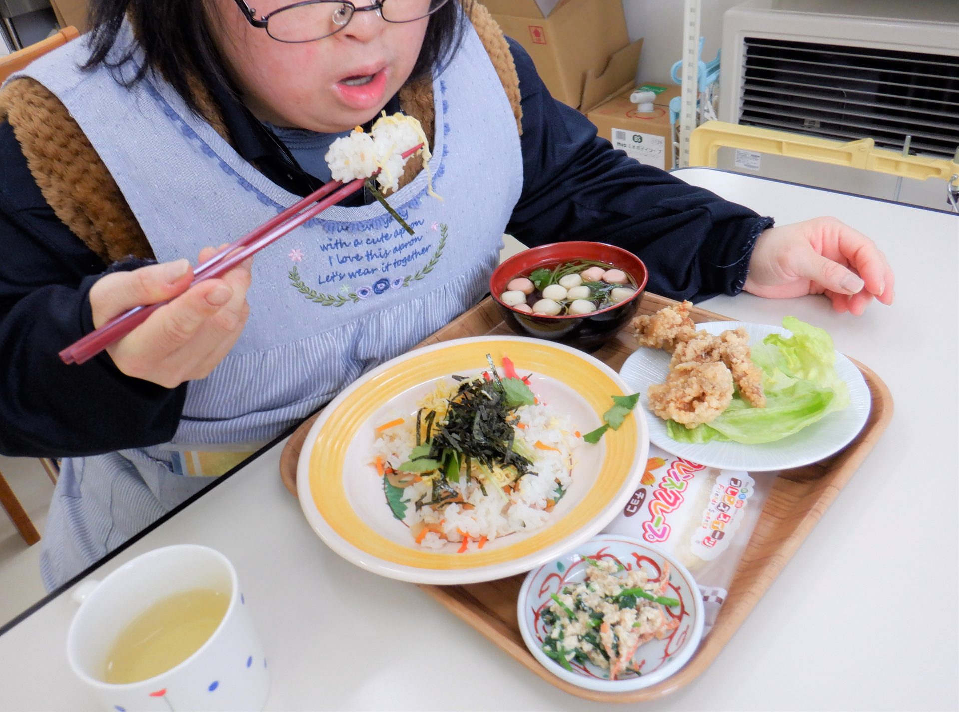 そんなこんなでもうお昼です~農園芸班は少し早めに上がって来て、新成人となる利用者さんを囲んで記念撮影~(*´ω`*)