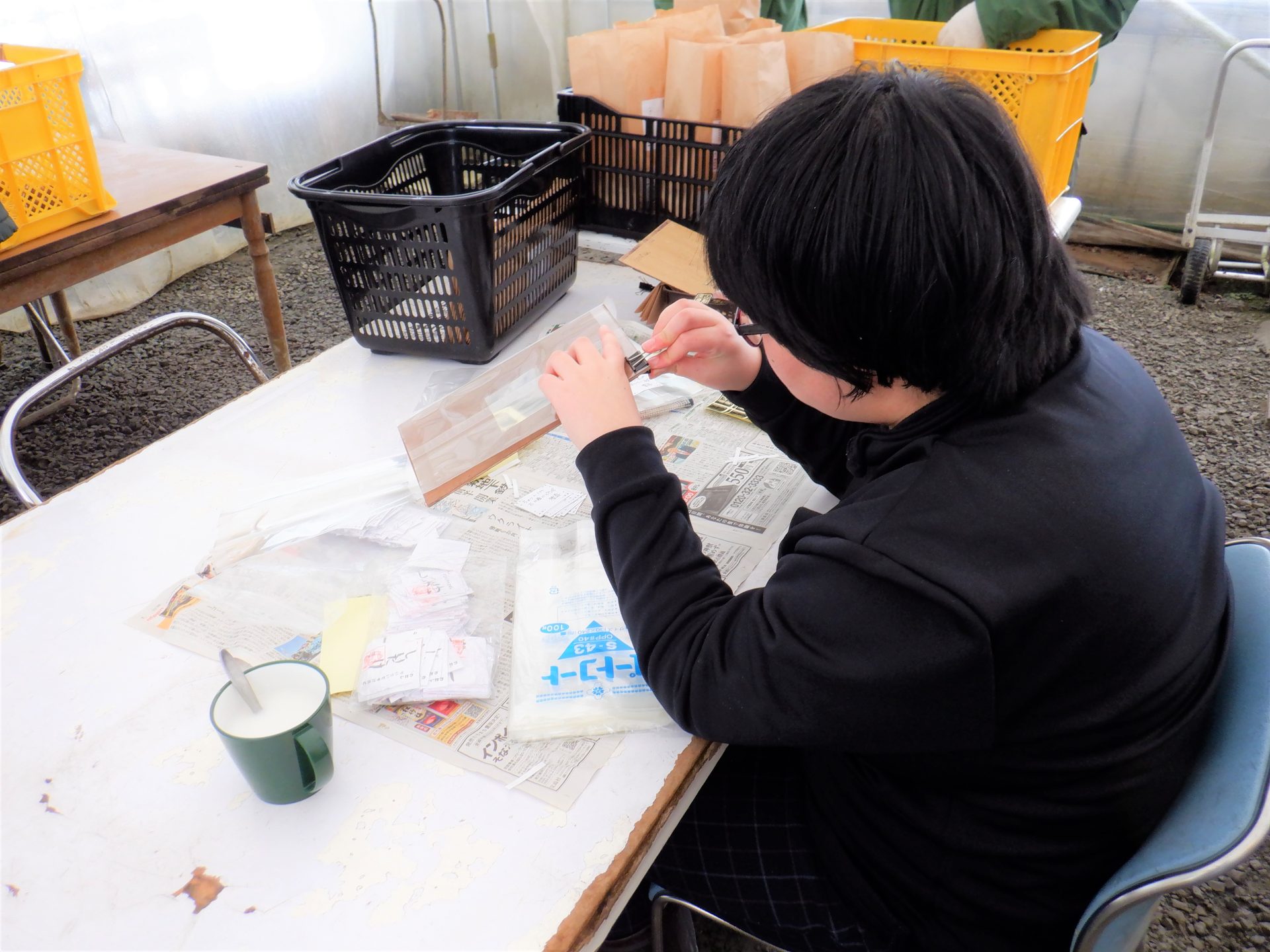 農芸班は今日もしいたけ作業~(´▽`*)
