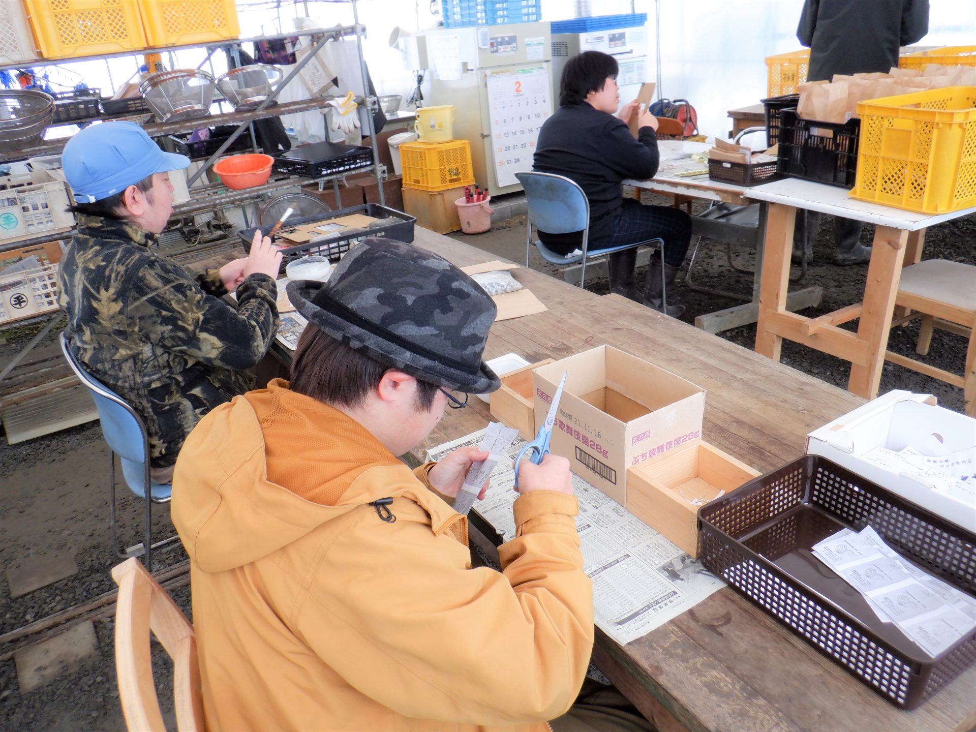 食堂ホールではみんなで協力して御注蓮作り~(=゚ω゚)ノ