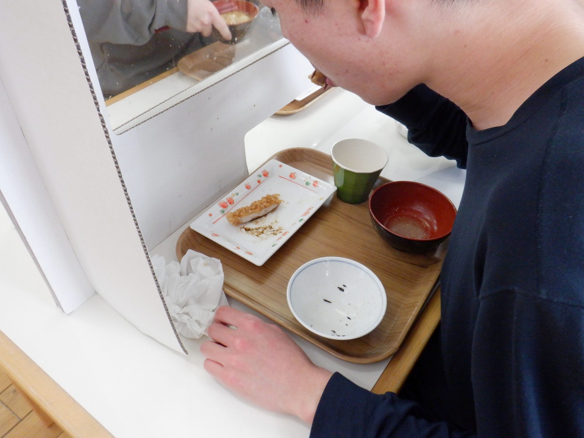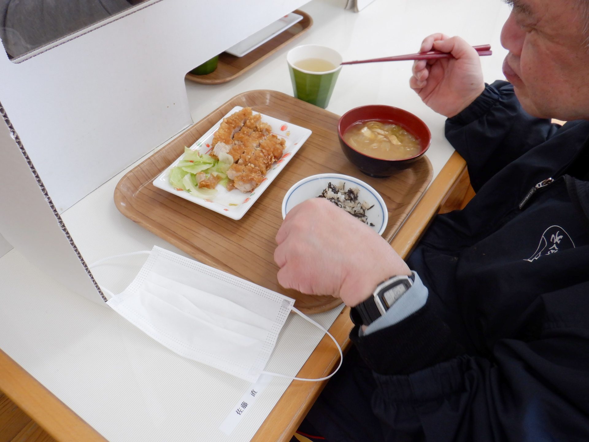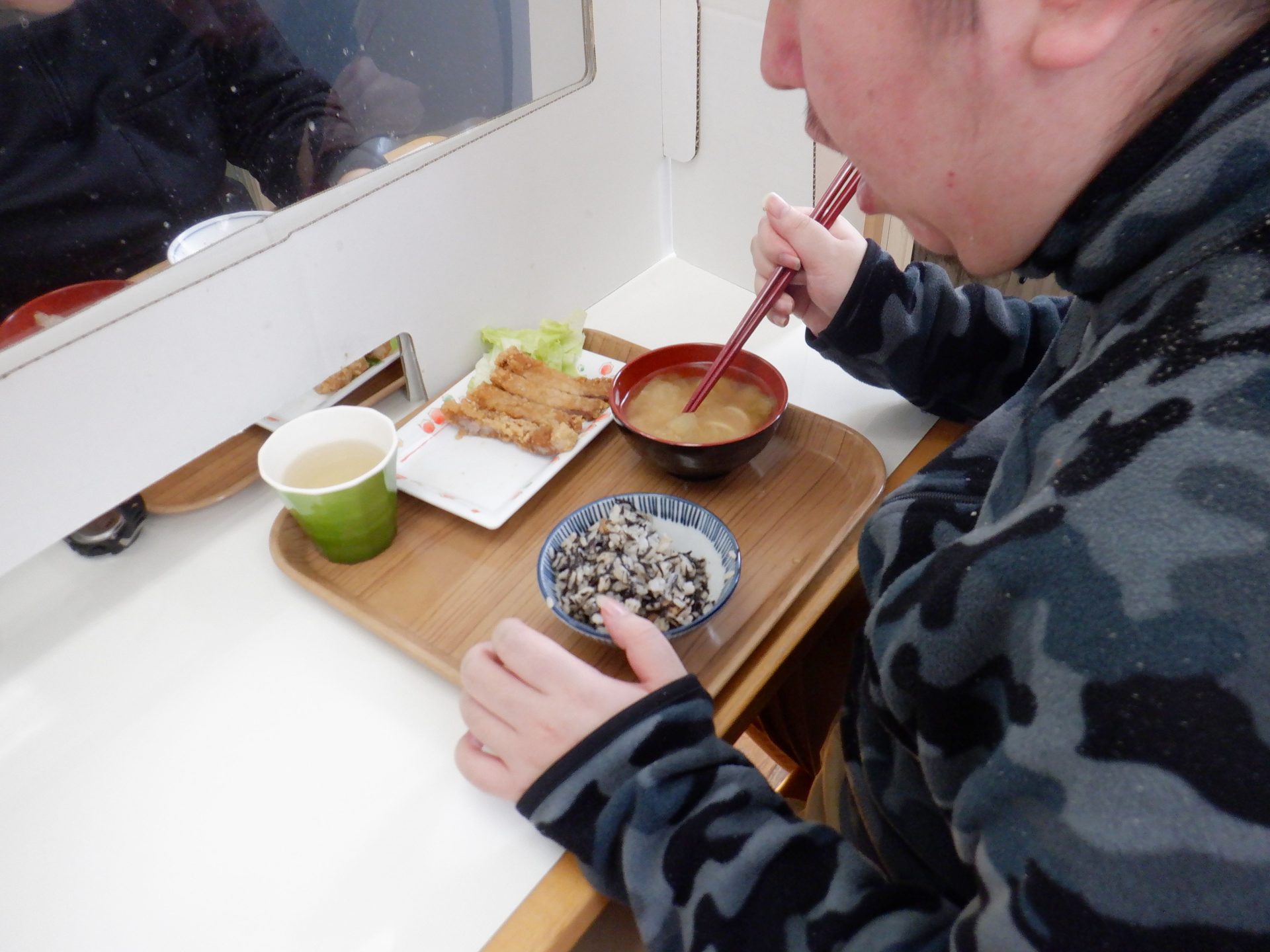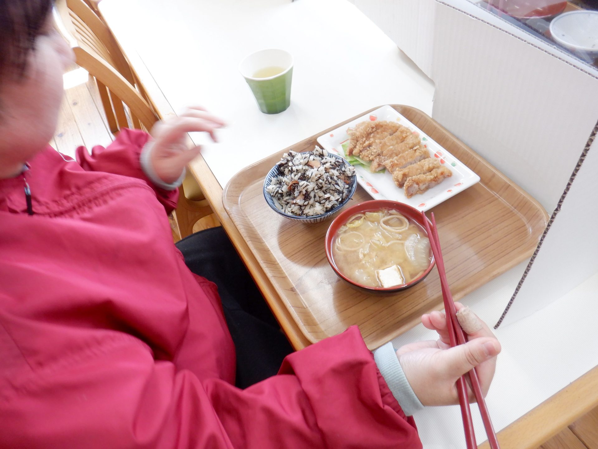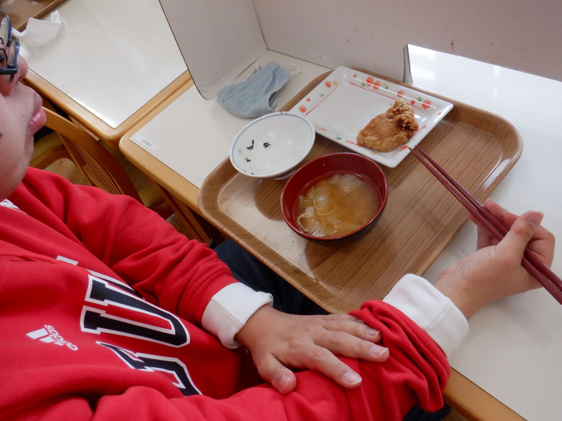 今日の一番の衝撃は、豚の竜田揚げの肉の厚み!大きさ!!(;^_^A