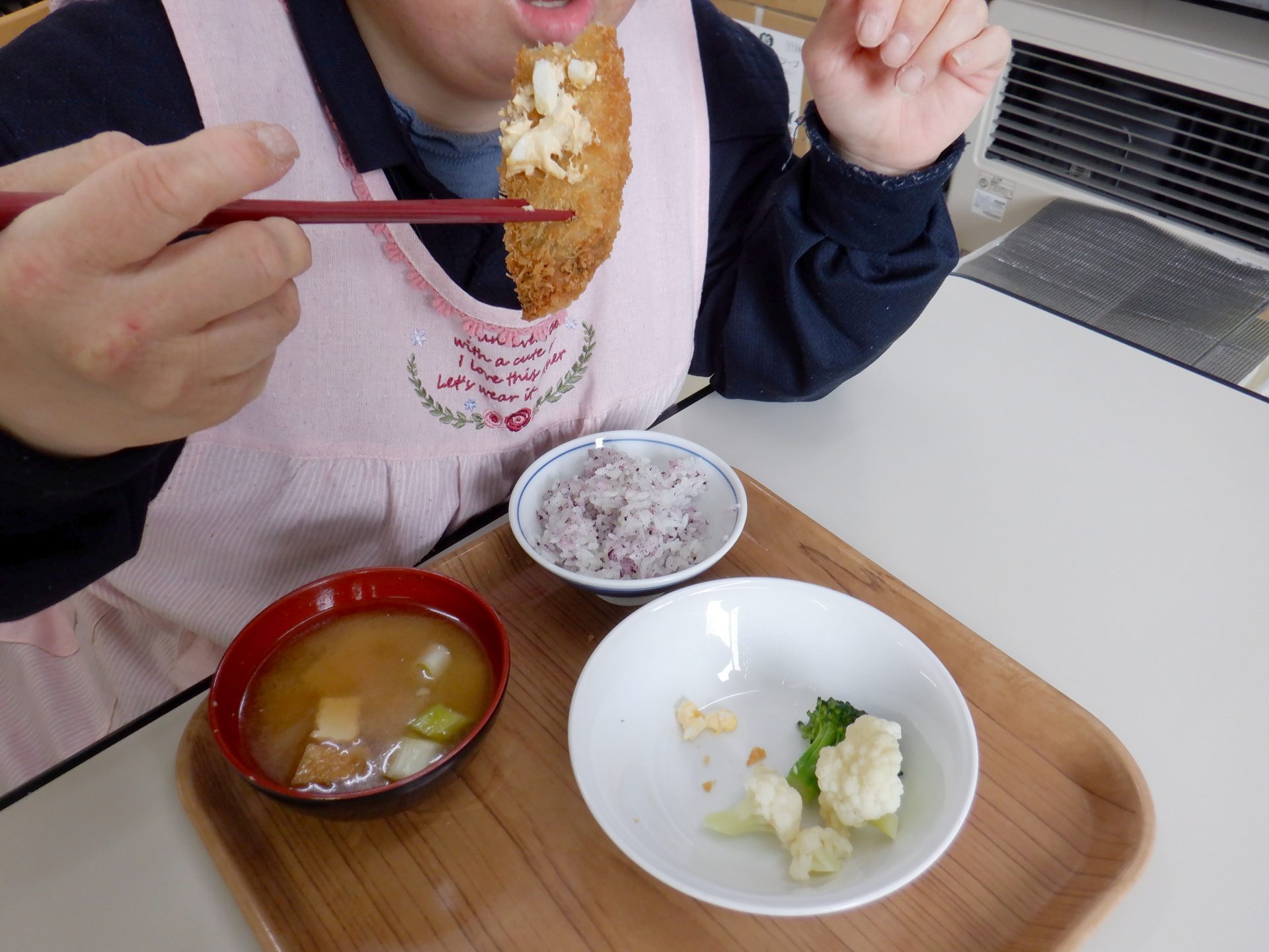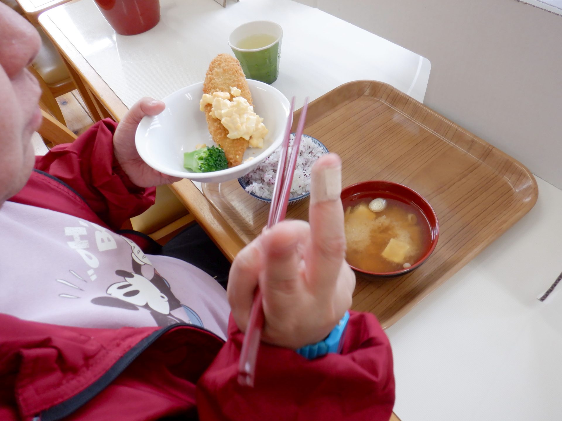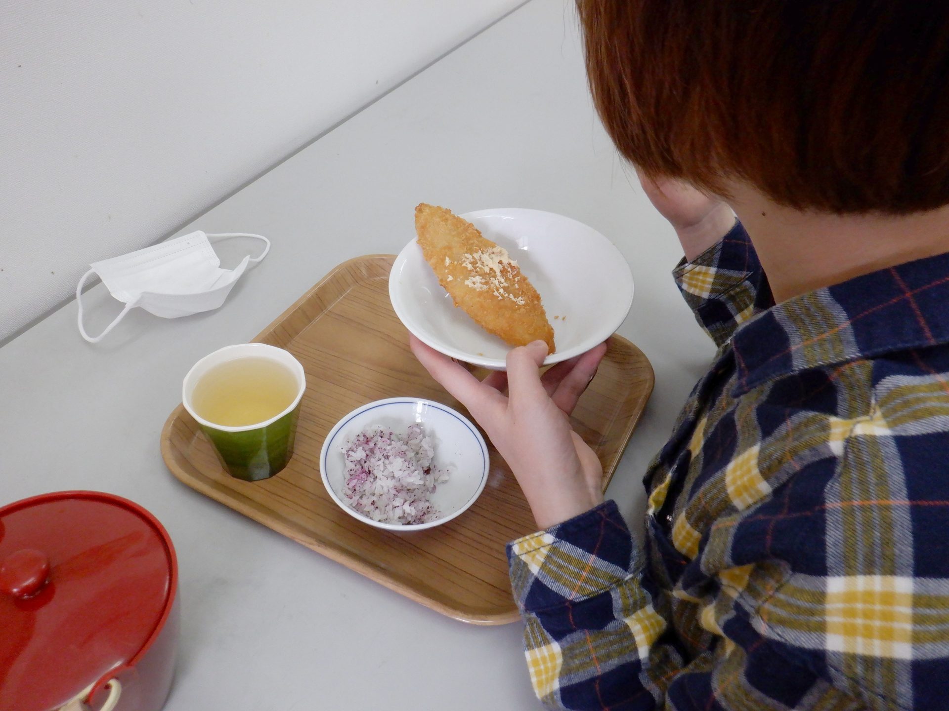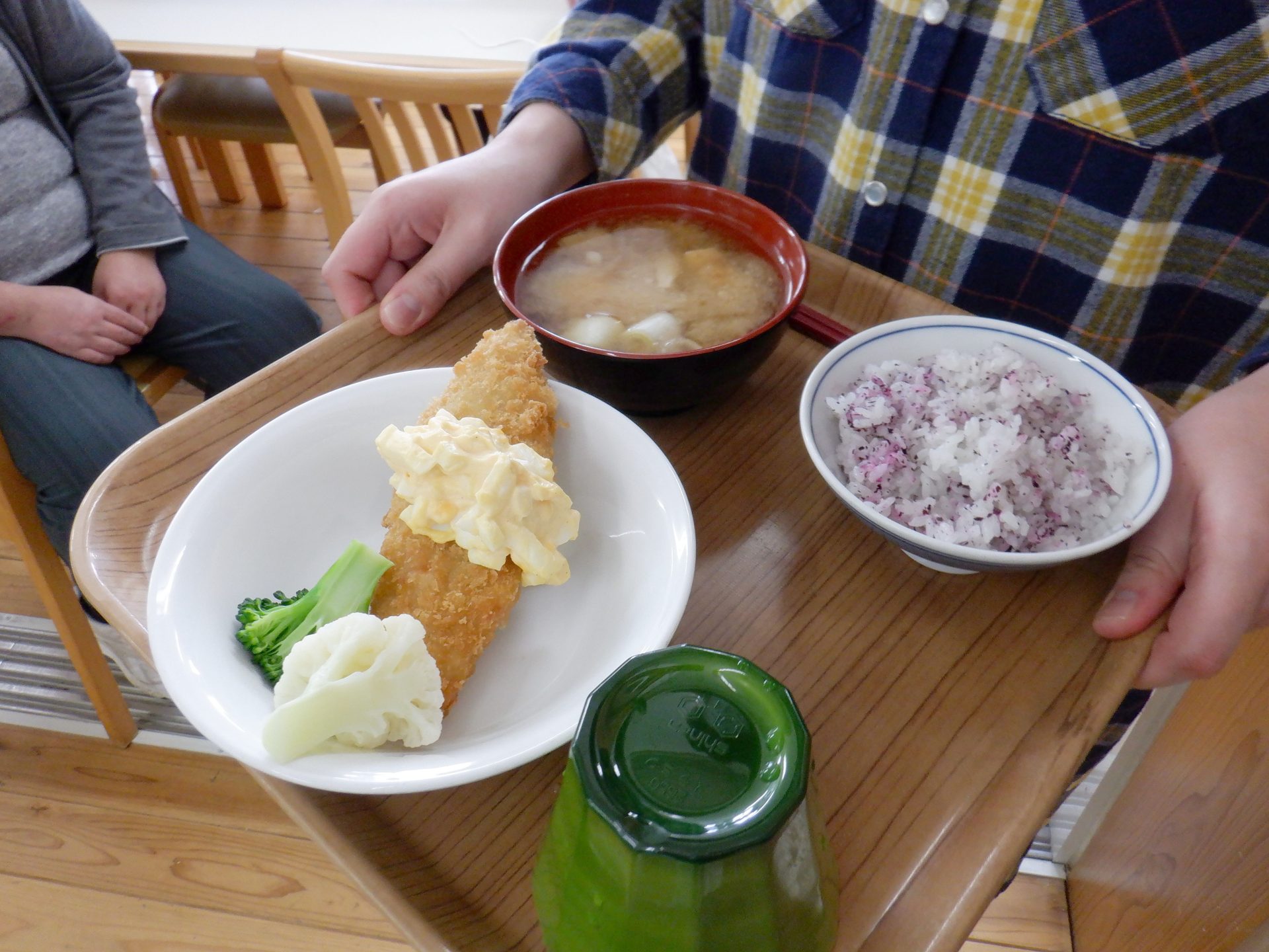 給食できましたよ~!魚のタルタルソースがけだ~!