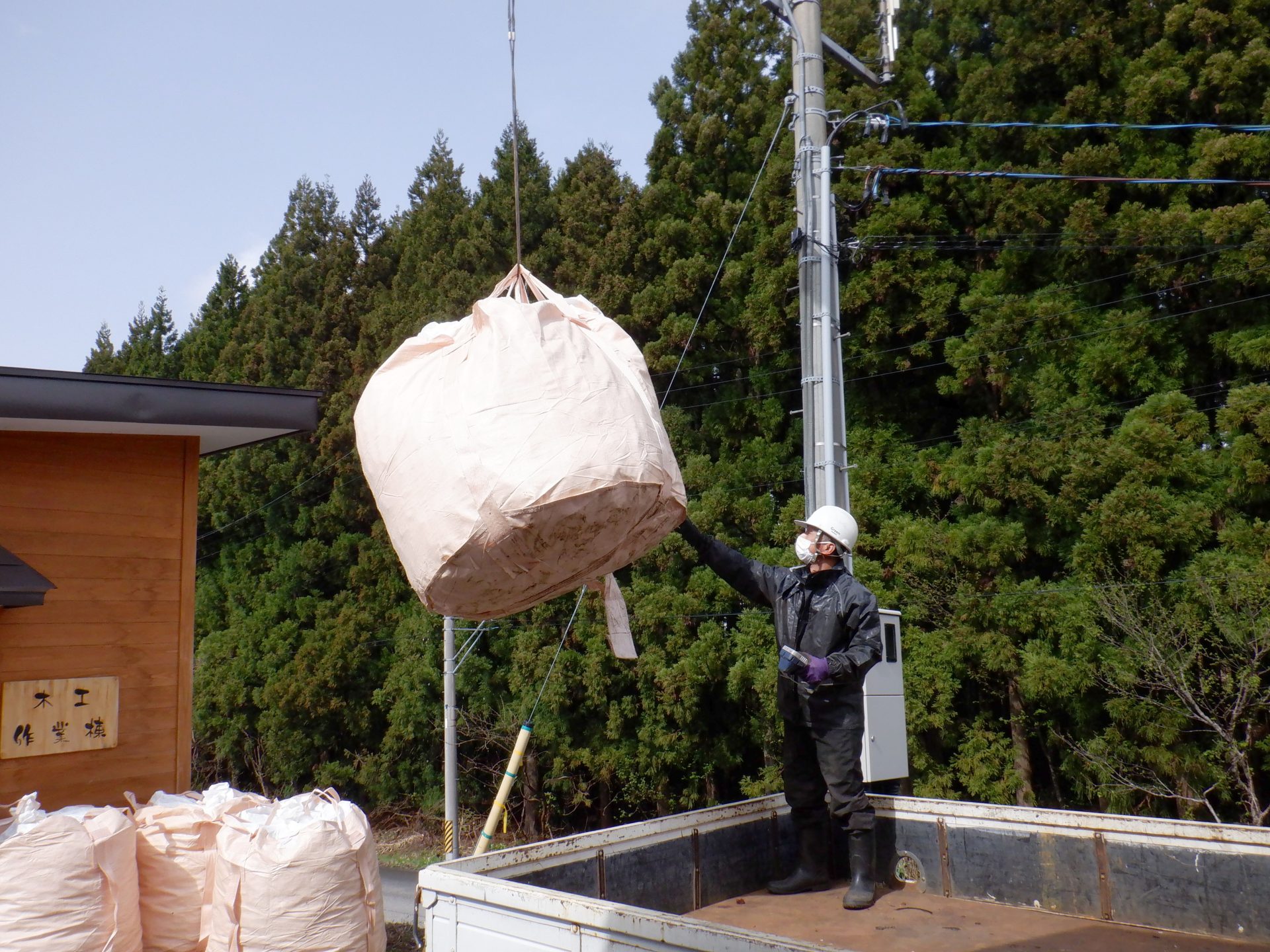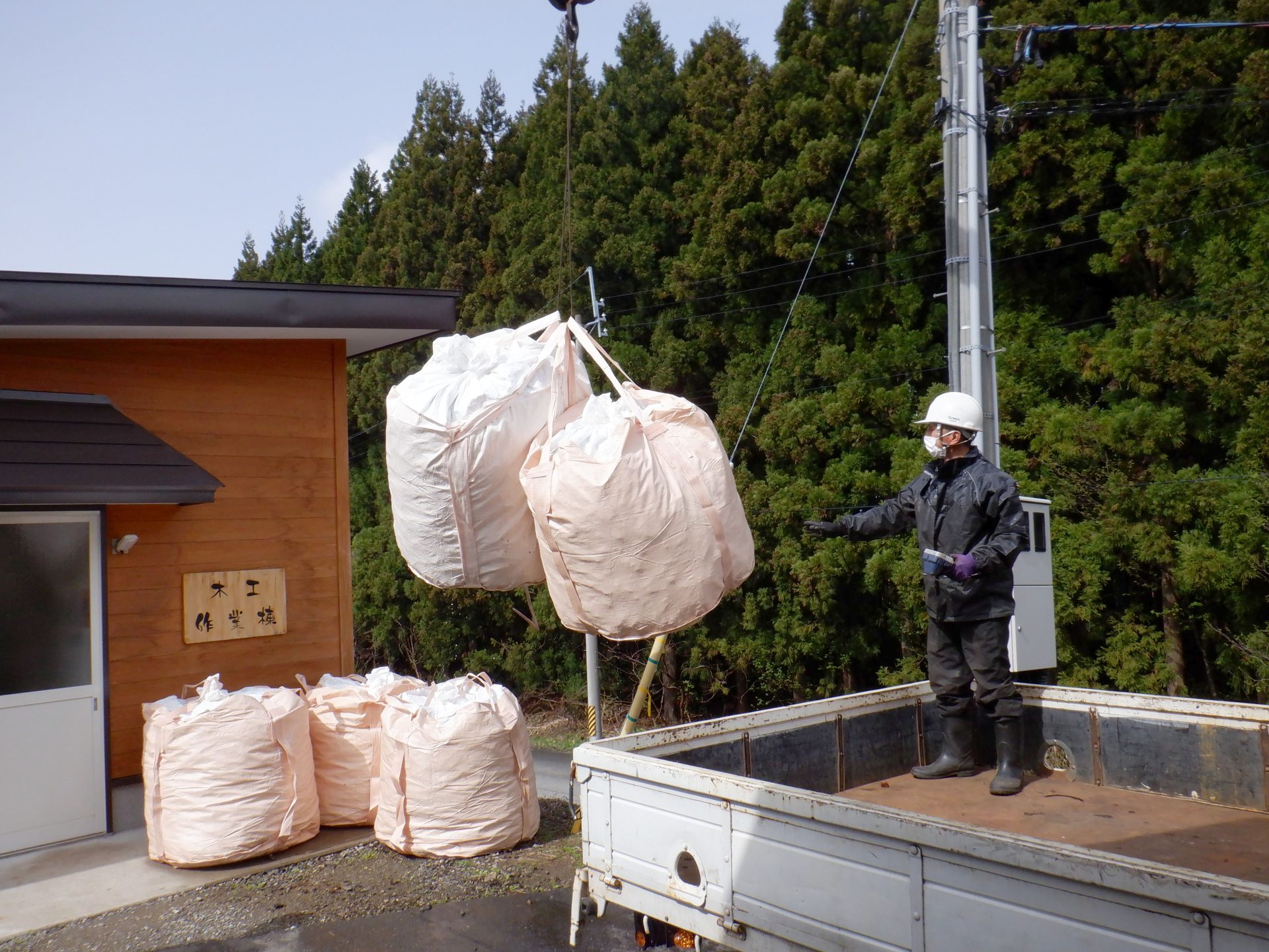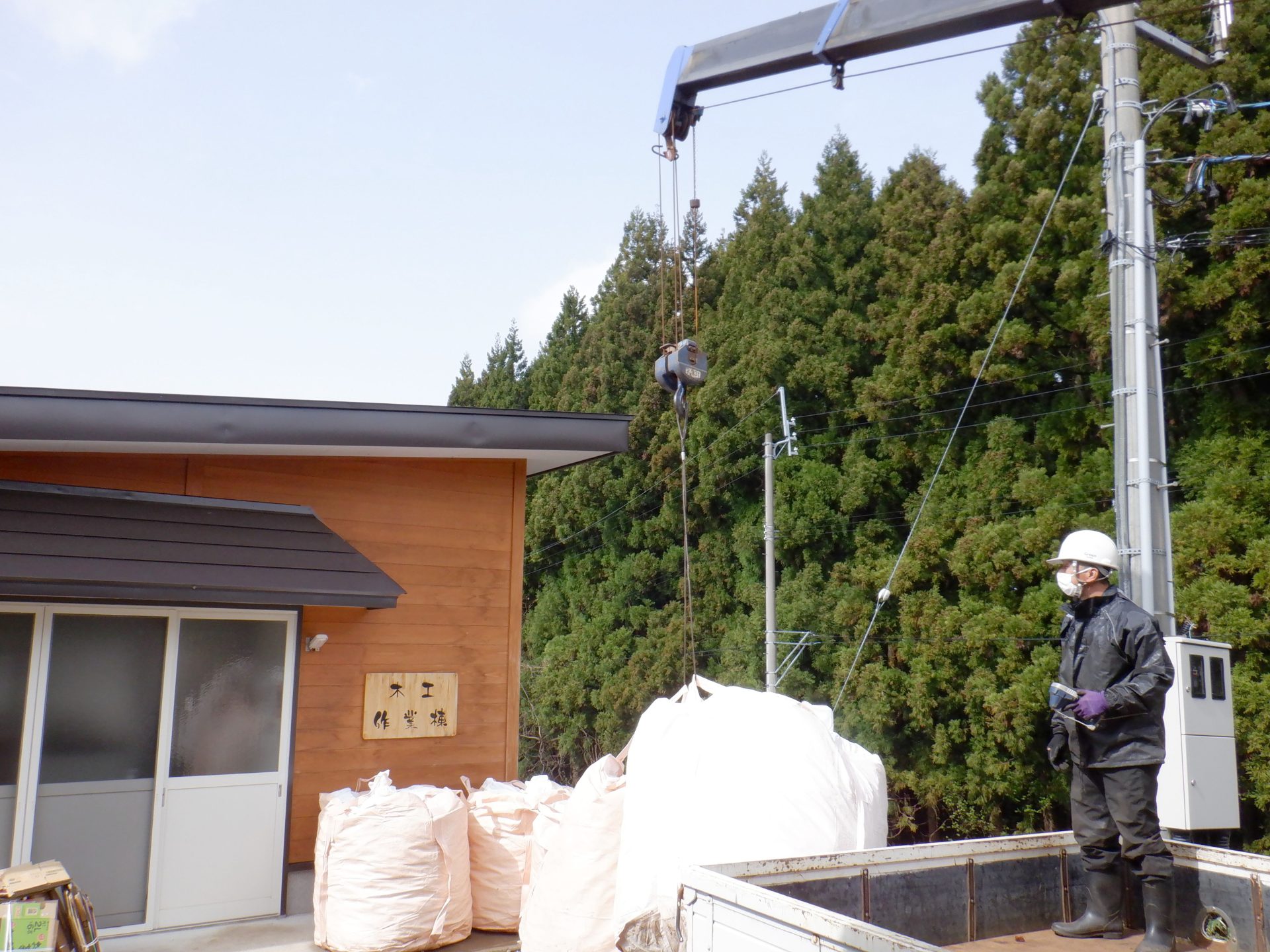 こちらは木工棟の前に大きなトラックが到着~!