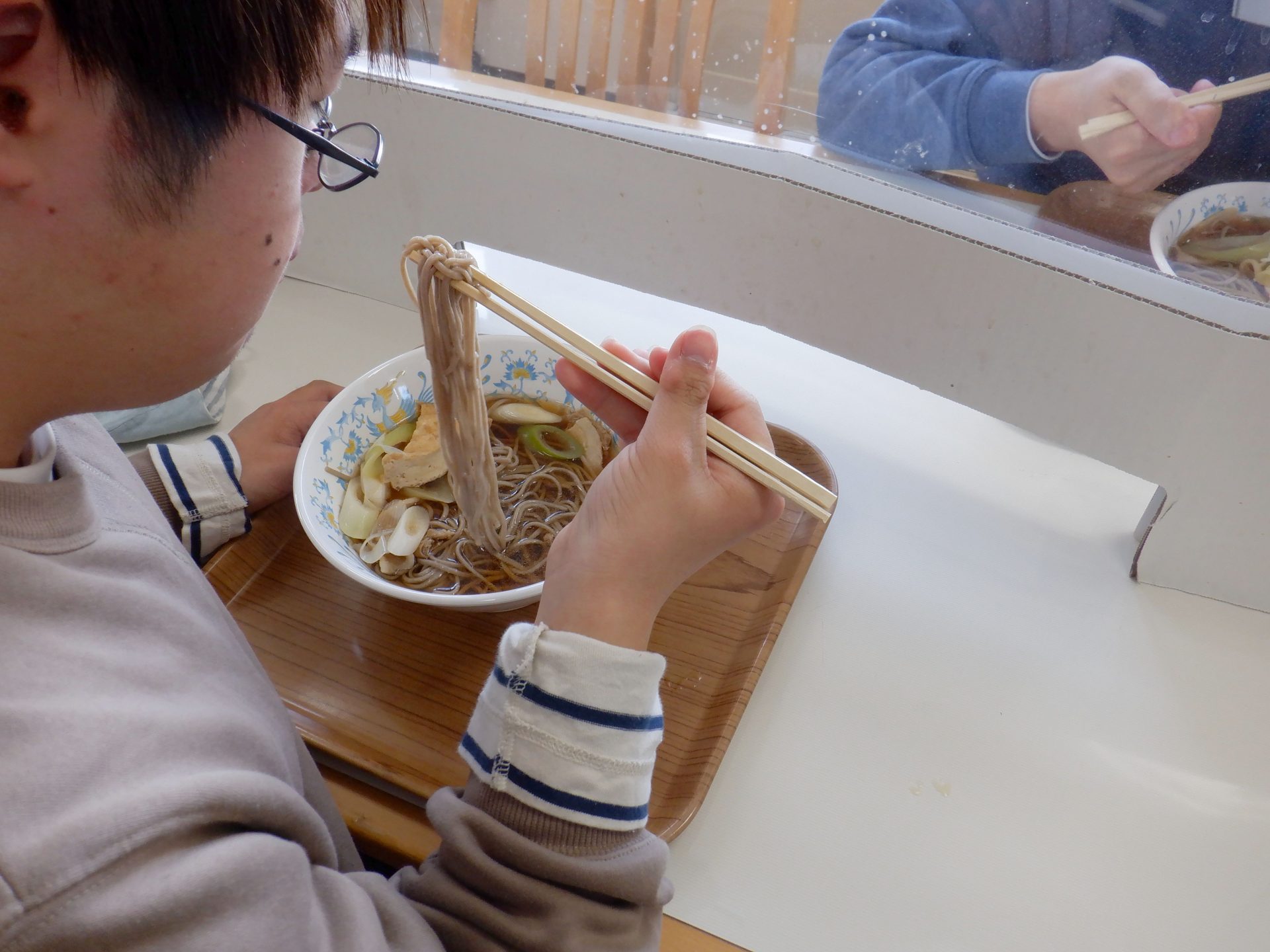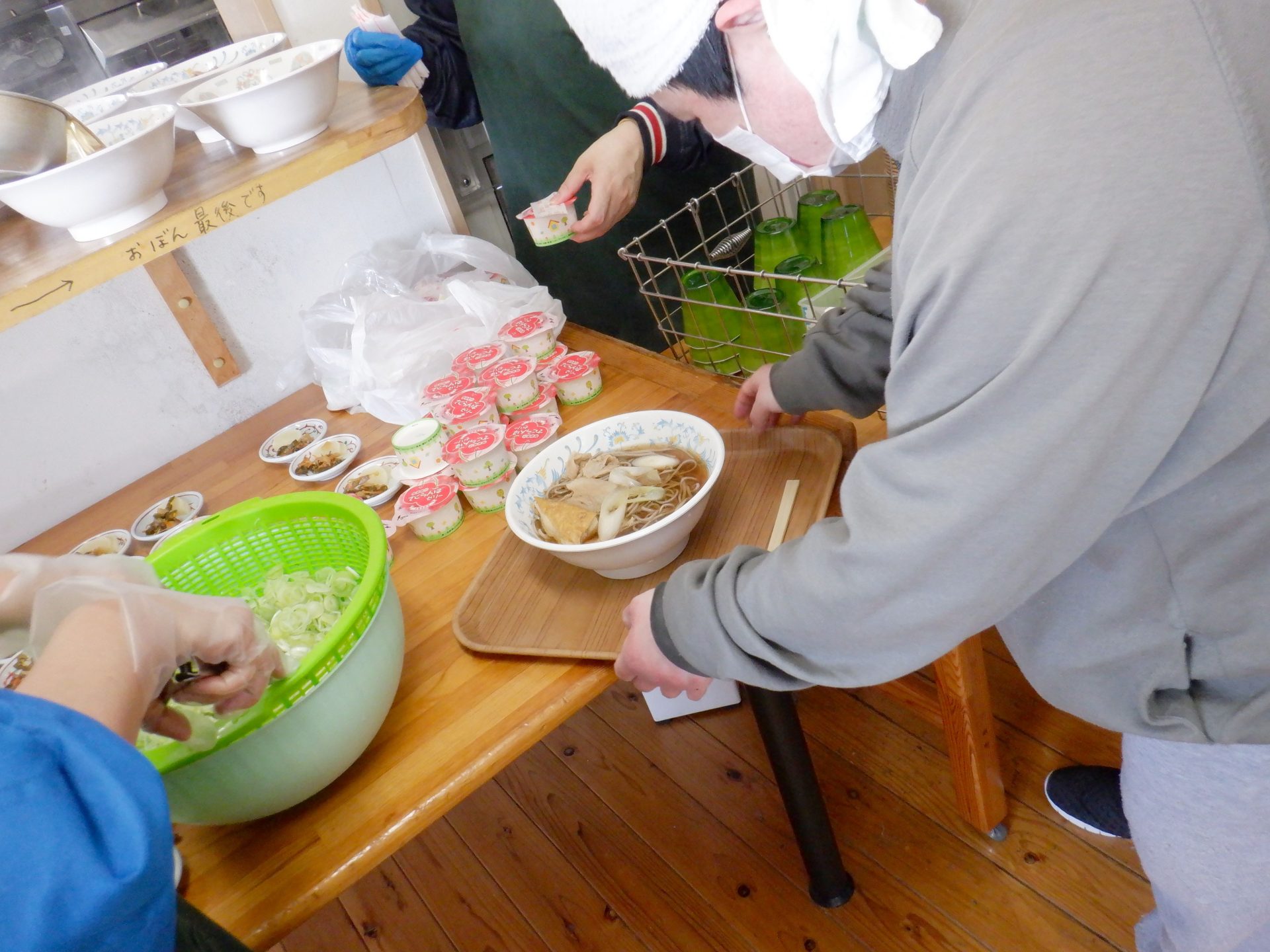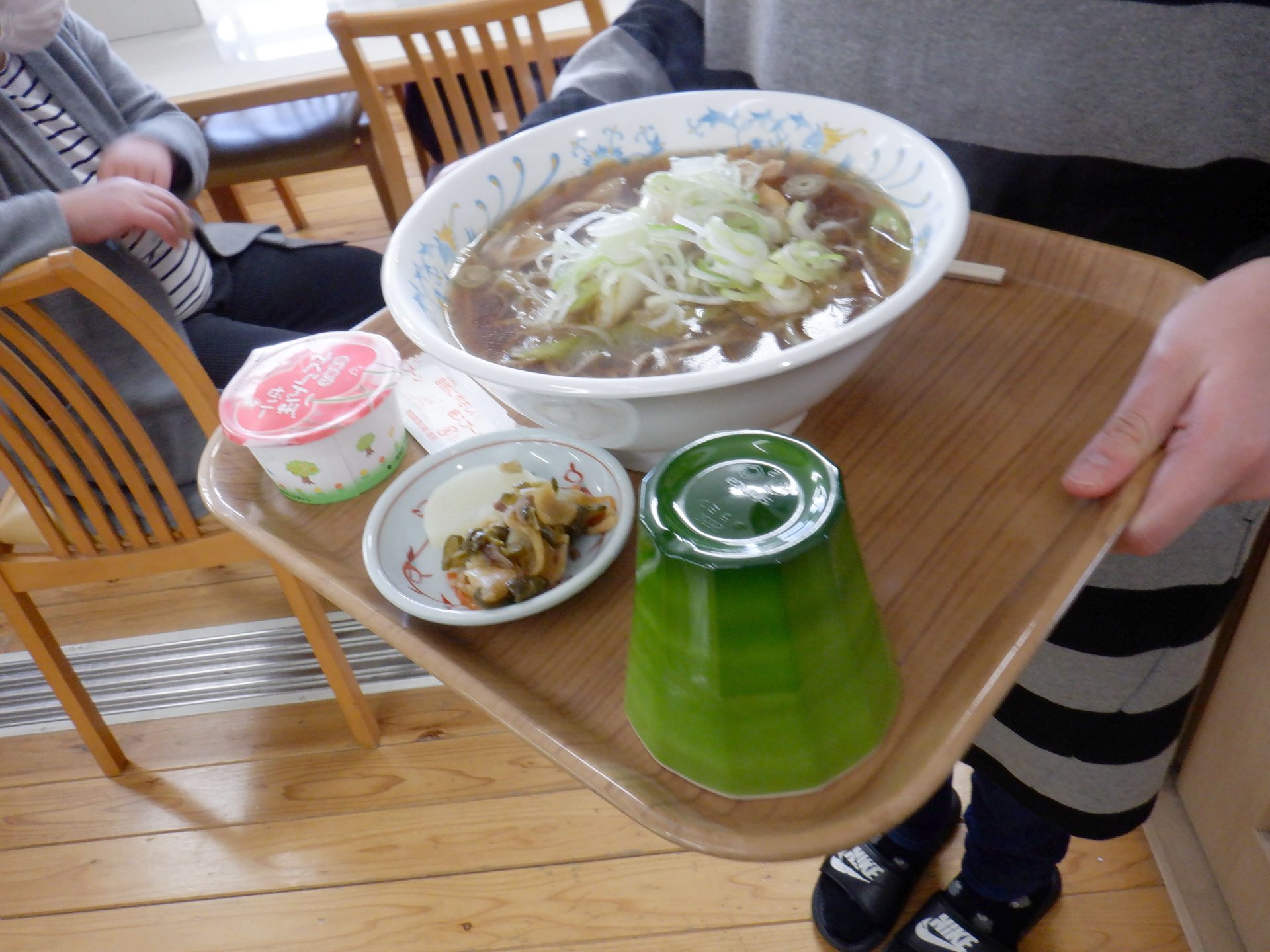 で、本日の給食は…ネギたっぷりの肉そば美味しそーーー(*^▽^*)