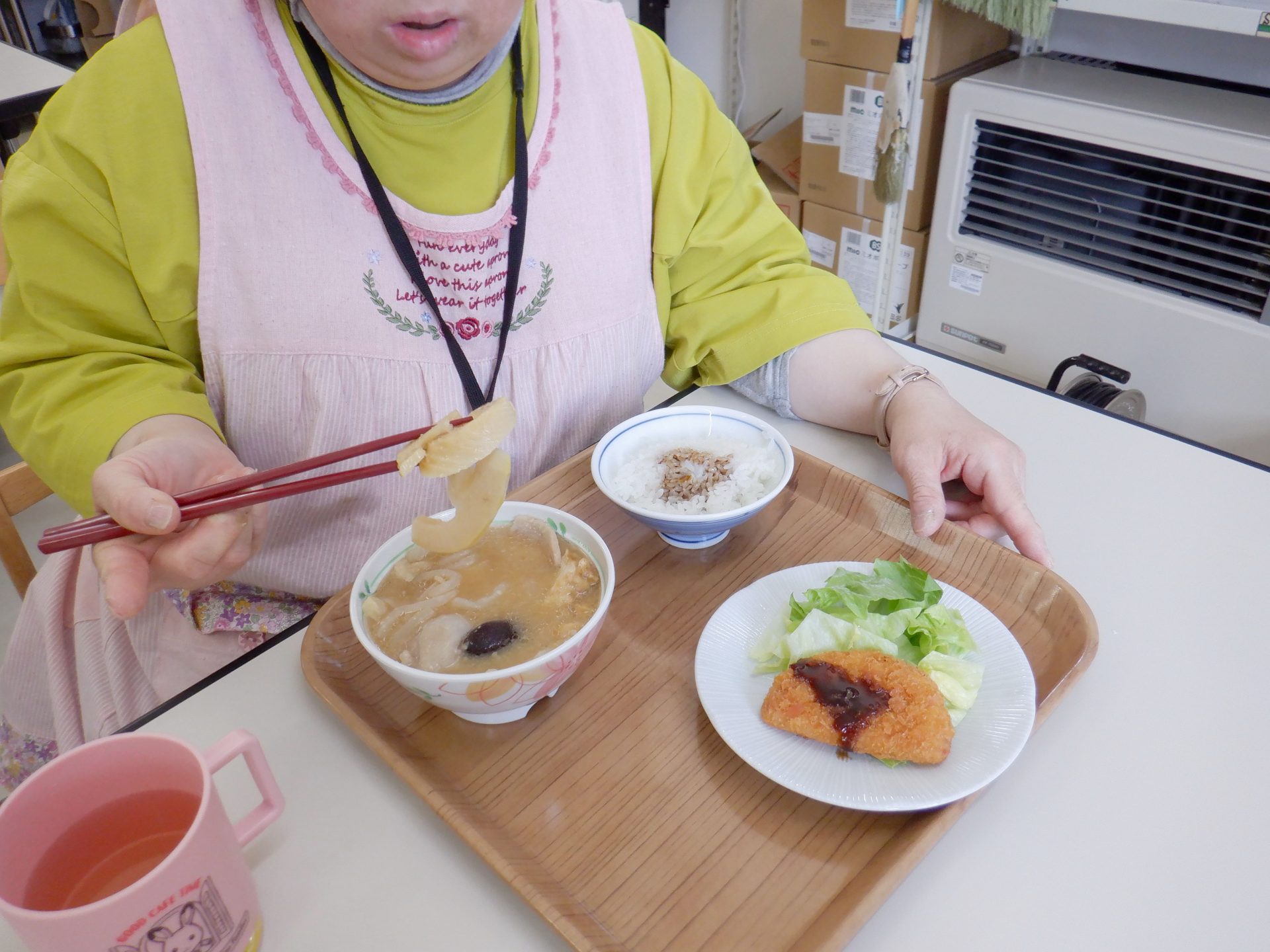 今日の給食は今年初めての「もうそう汁」なんです~(´▽`*)