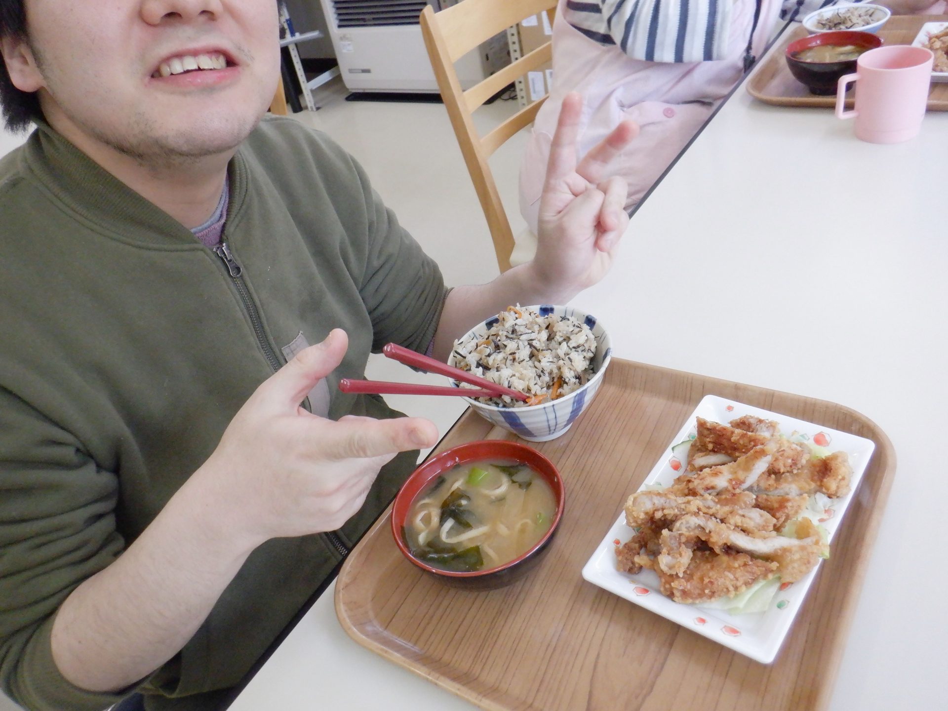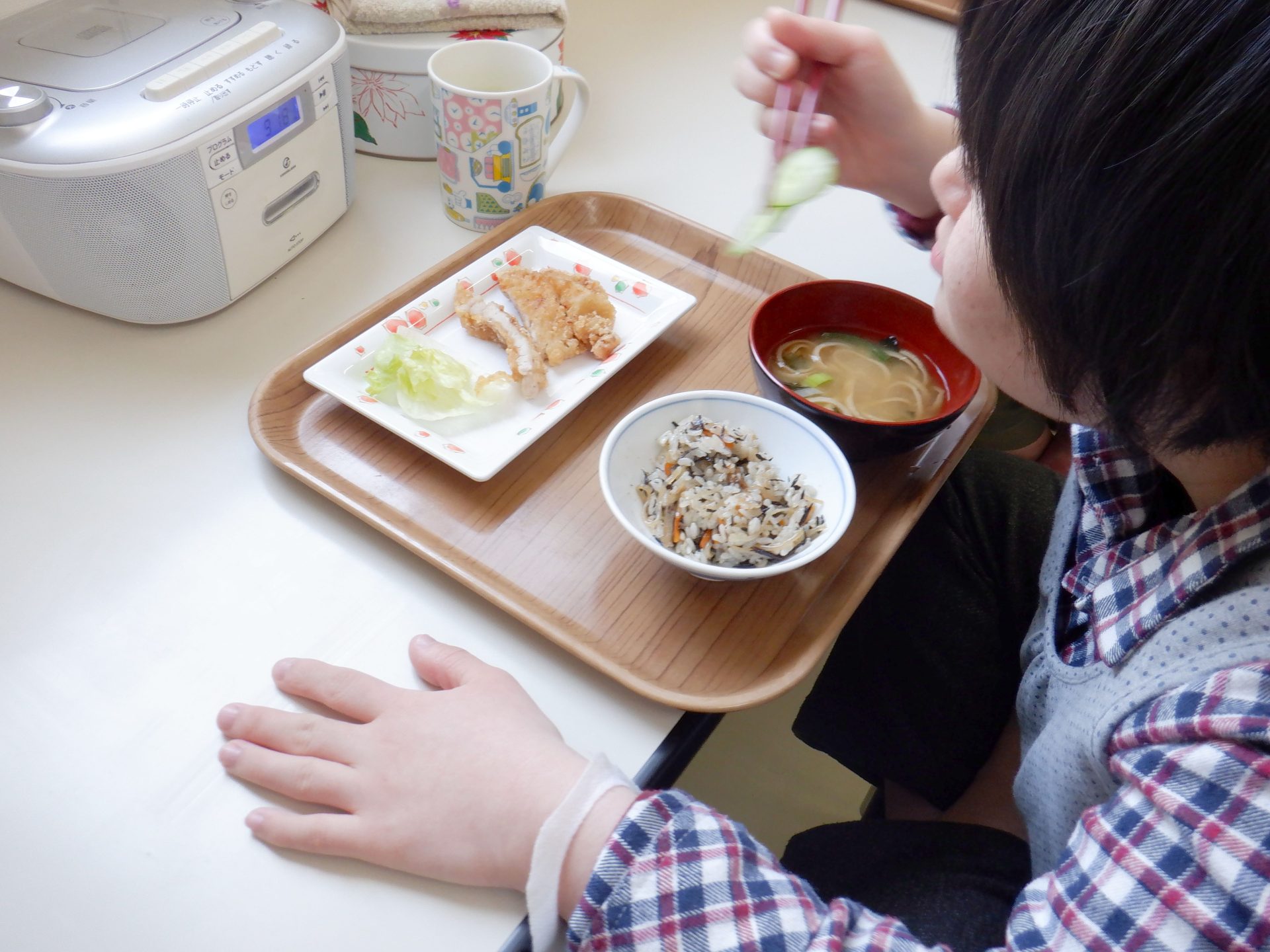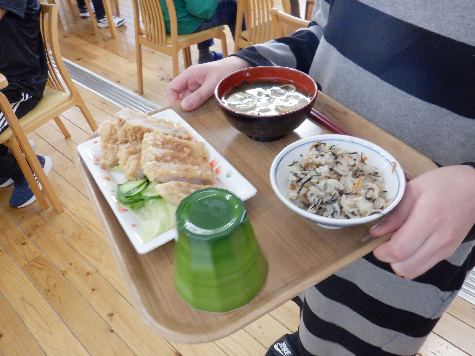 やっぱり「豚肉の竜田揚げ」&「ひじきご飯」は最強コンビです!GW前に最高の給食ありがとう~(´▽`*)
