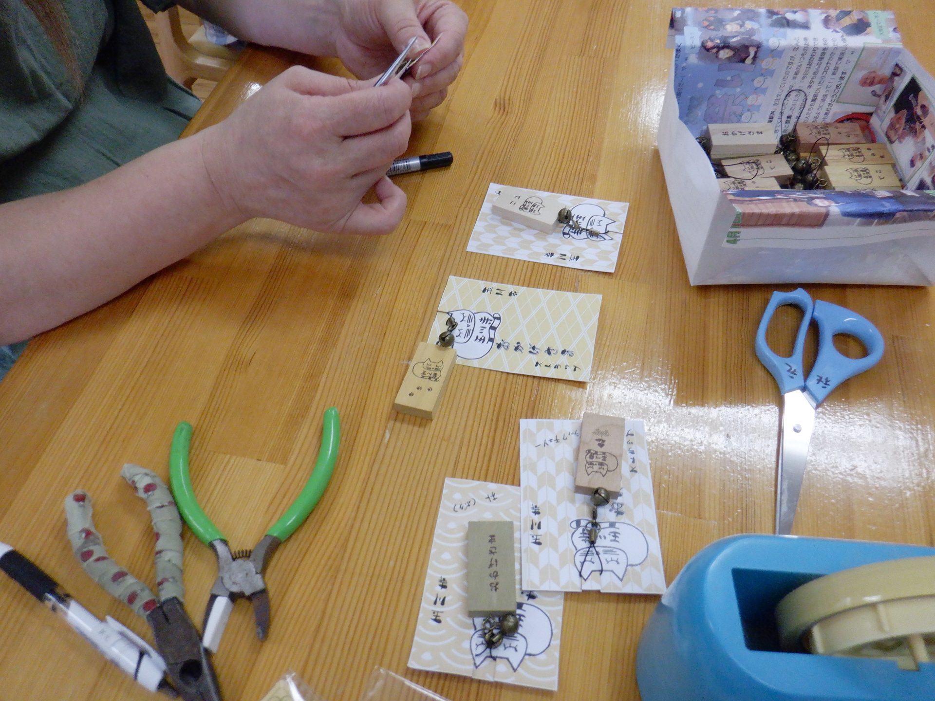 裁縫班では今日は新商品製作をしました~「玉川寺さん」で販売して頂く「おかげさまストラップ」です♪