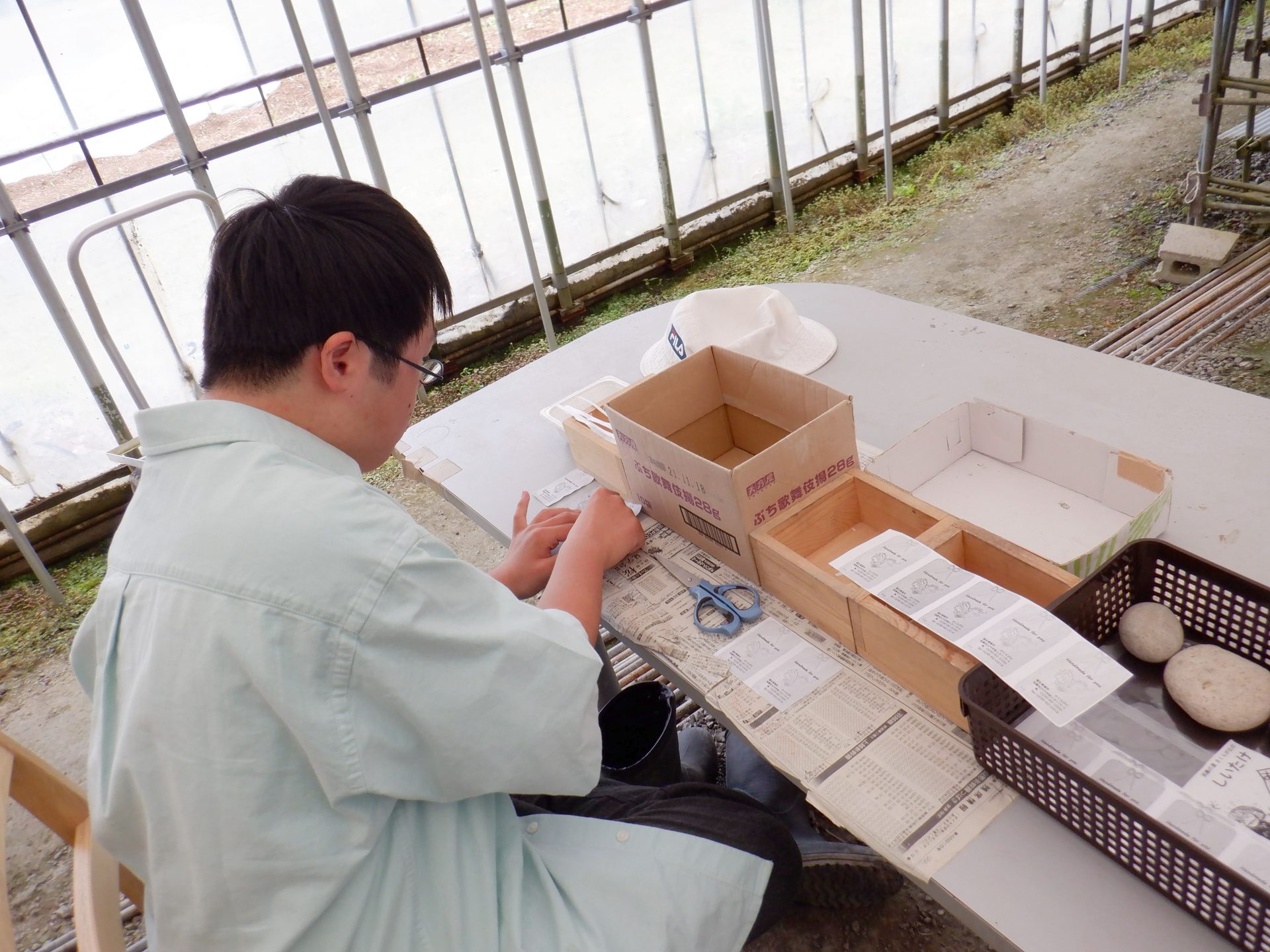 加工班に行くと葉っぱの爽やかな香りで森の中にいるような気分~(´▽`*)