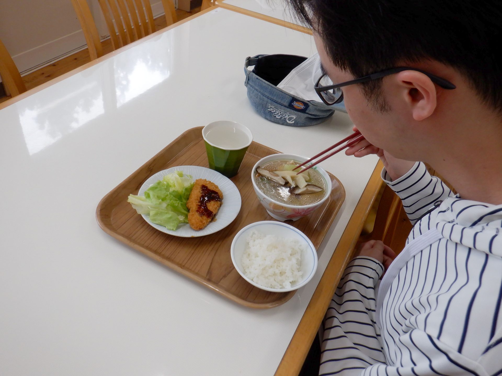 - 今日の給食はなんだろ?