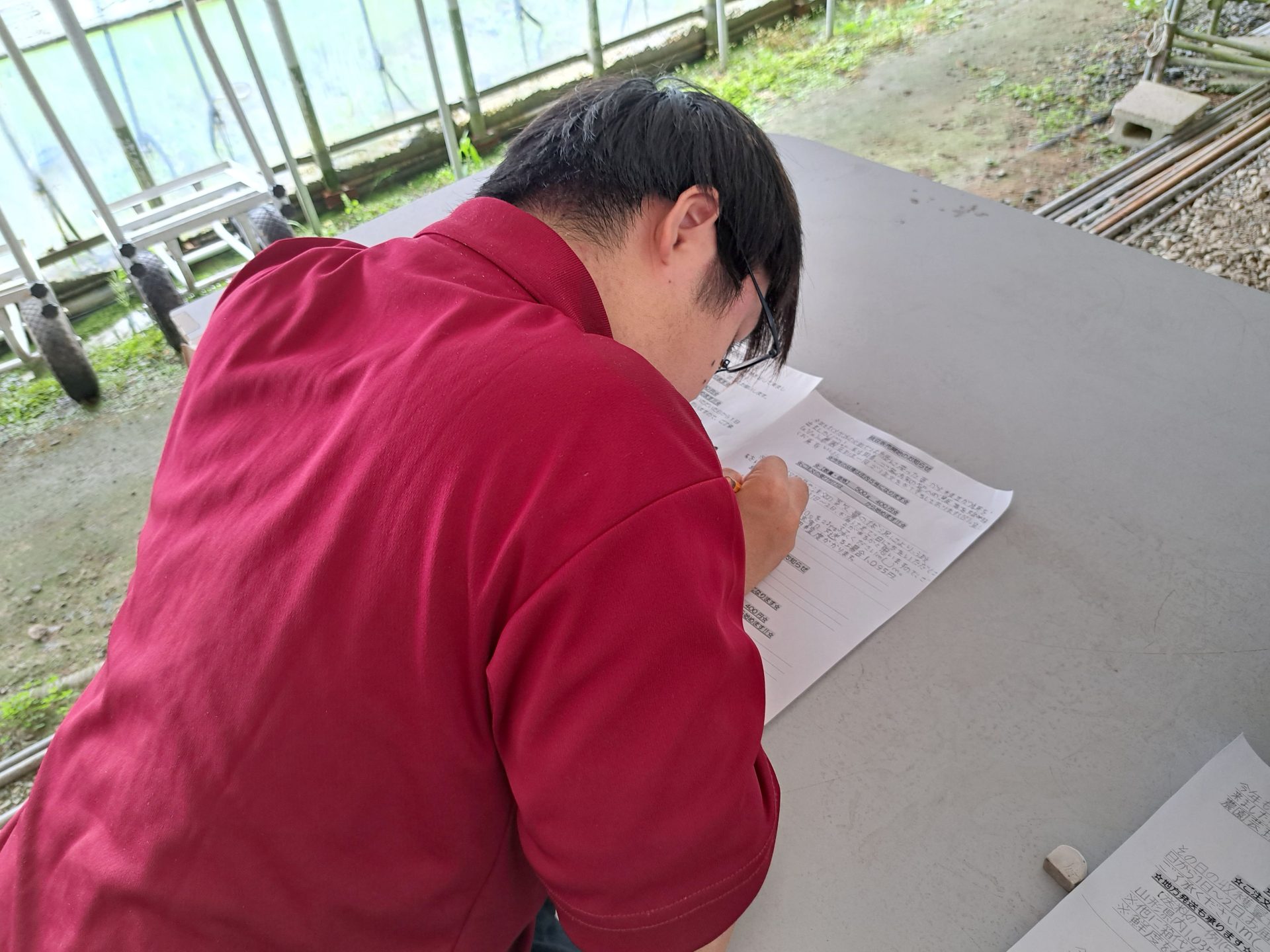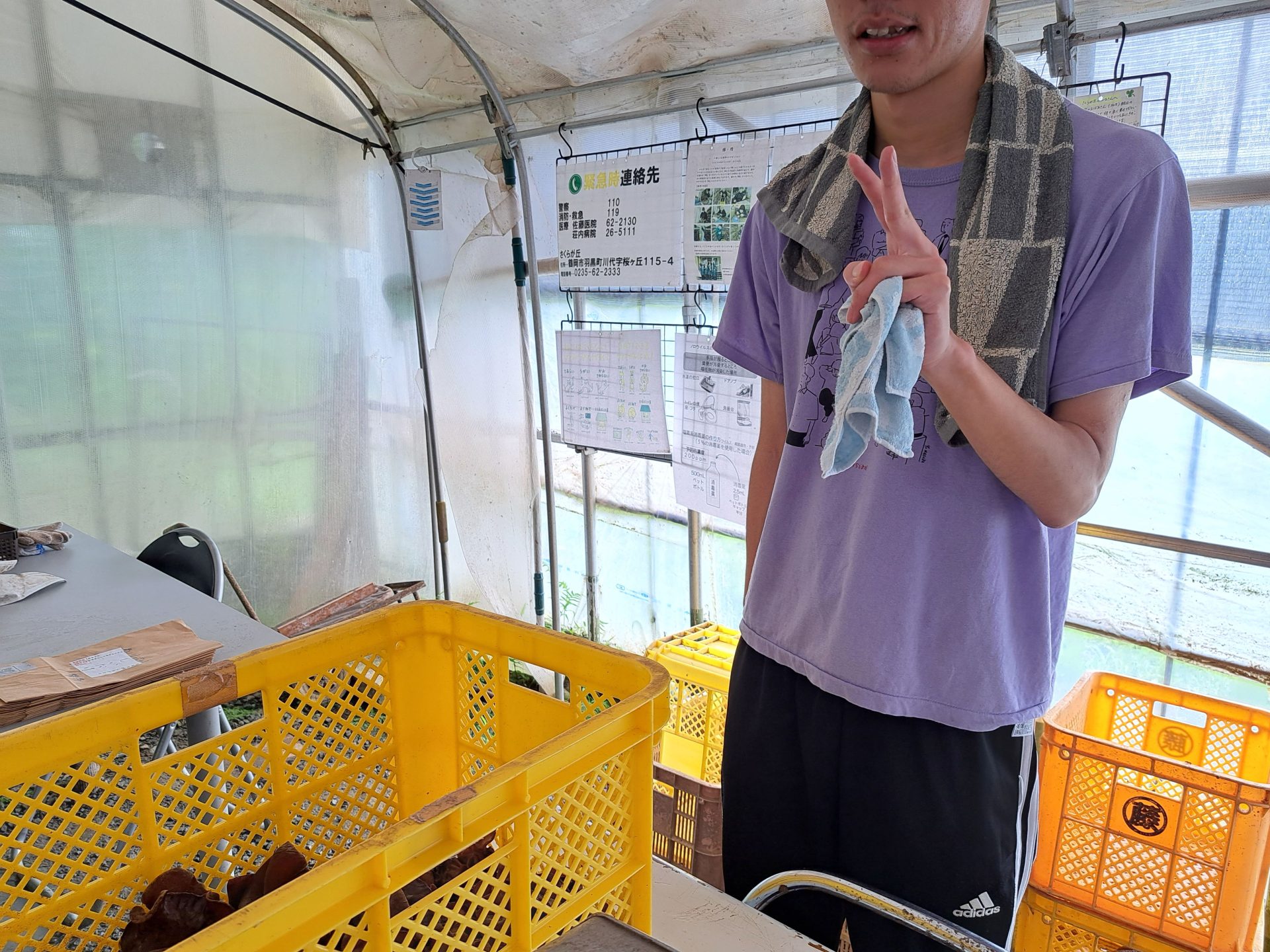 - これから収穫したきくらげの計量作業です!