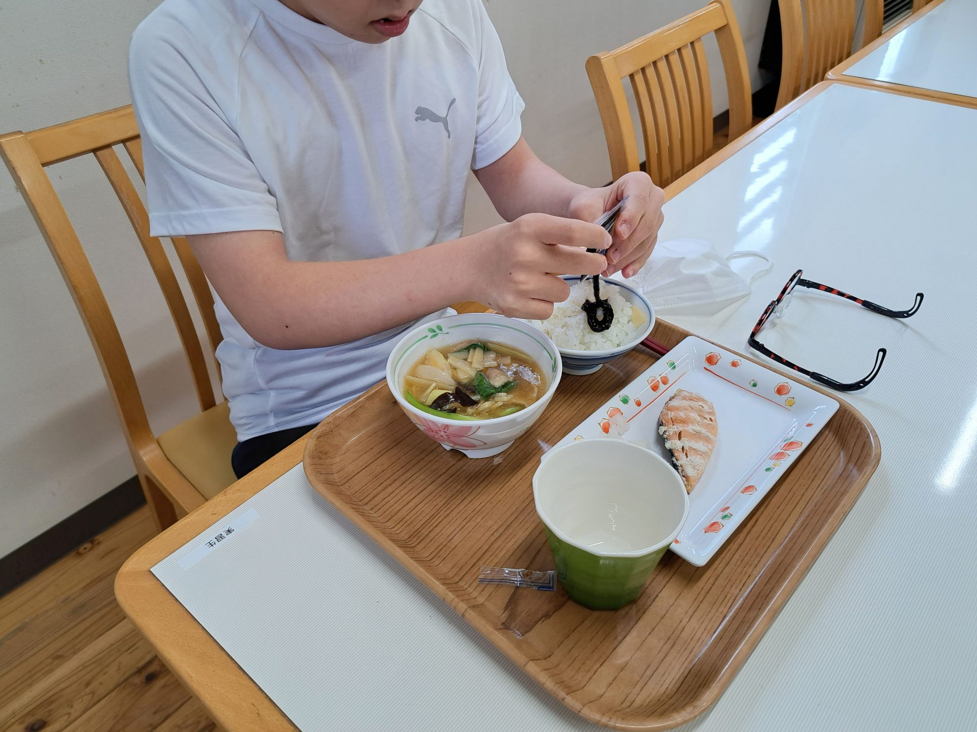 - 実習生さんも海苔をかけて~♪