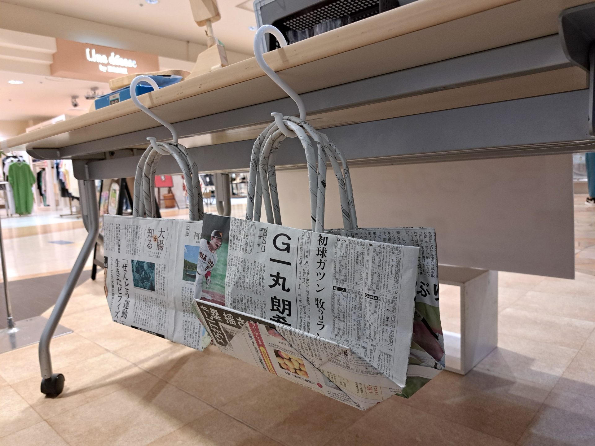 - 利用者さんの作った新聞紙のエコバックも大活躍♪