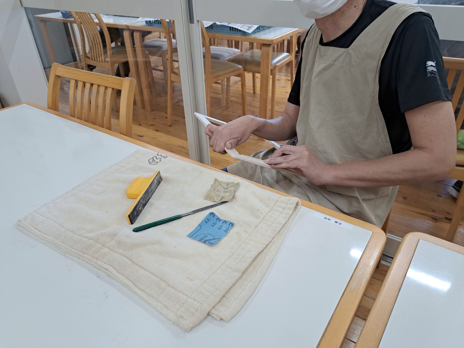 裁縫班は朝の体操からスタート!「今日も暑くなっぞ~ぅ!耳ひっぱれ~!」