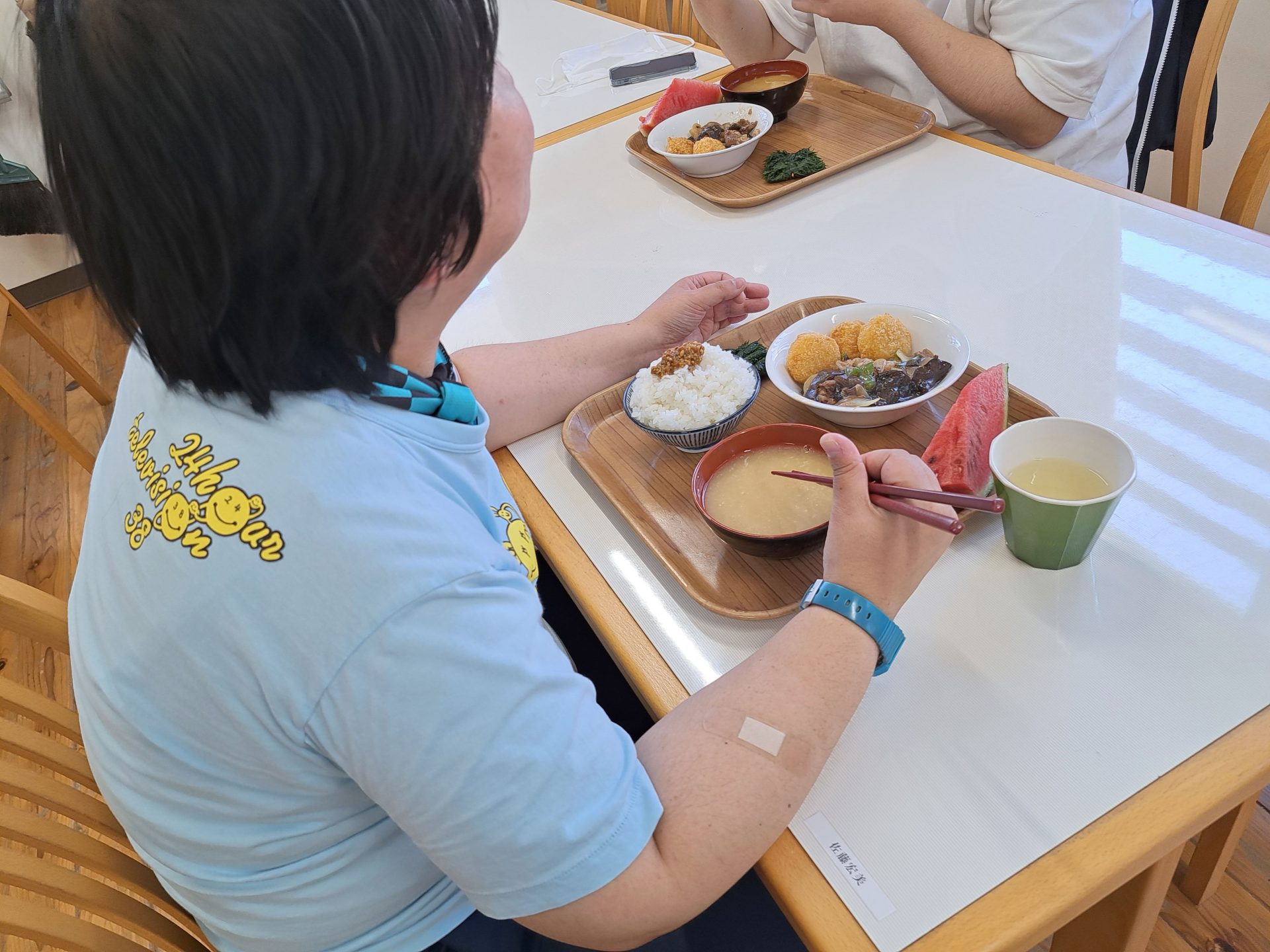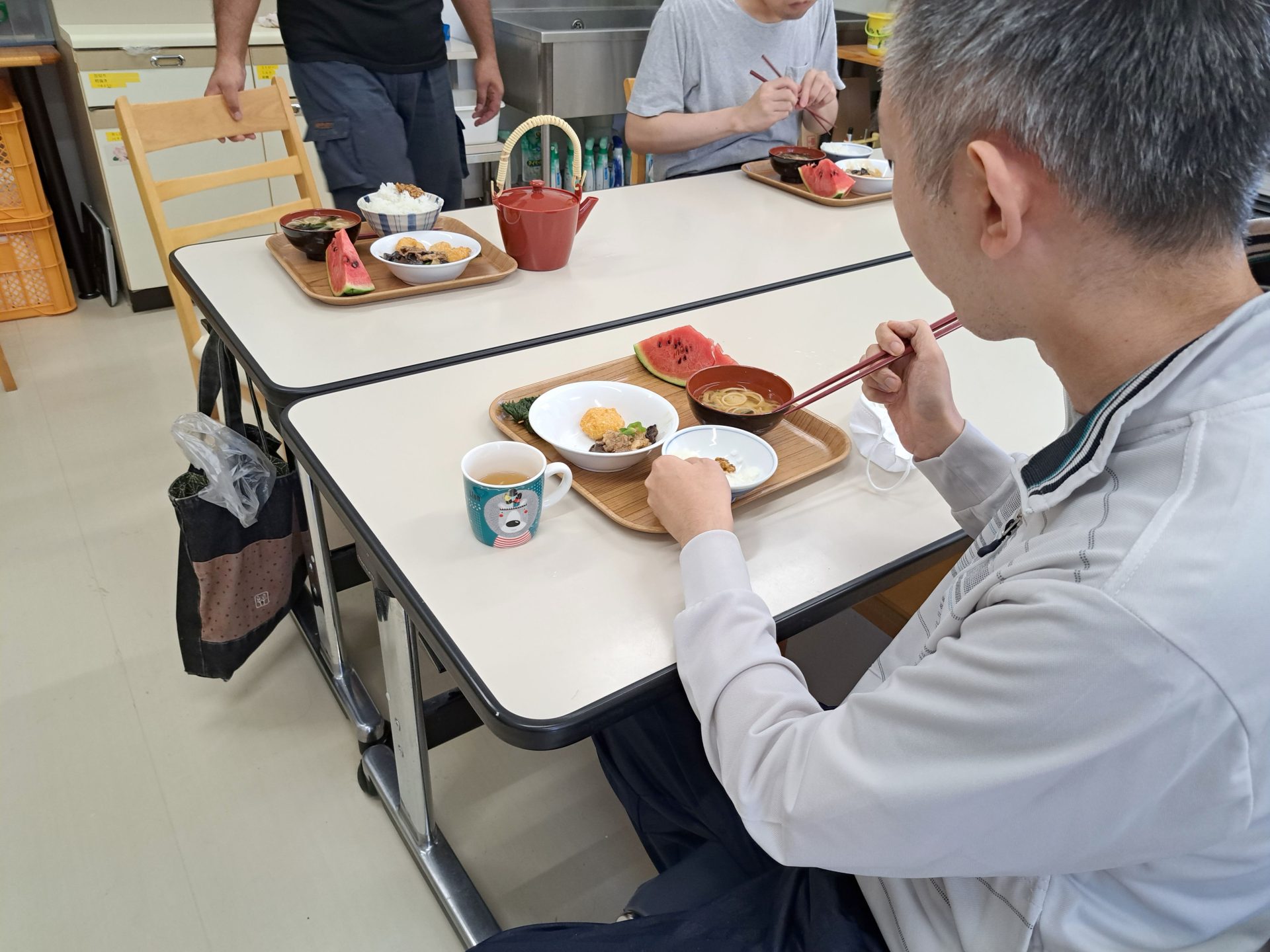 利用者さんのご家庭より丹精込めて作ったスイカを頂きました~(´▽`*)