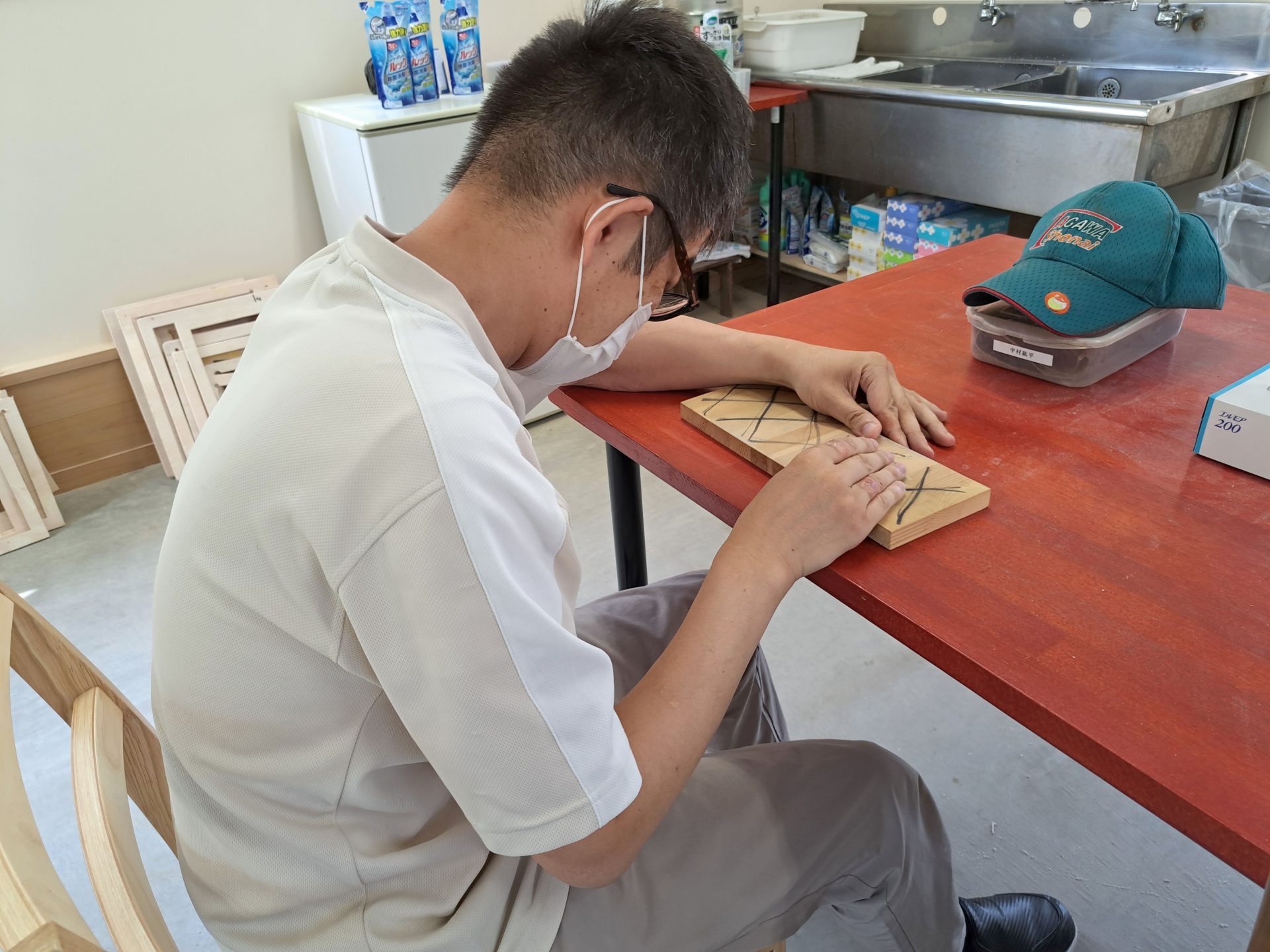 木工棟におじゃましま~す!さっそくヤスリがけ頑張ってますね~(´▽`*)