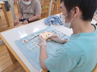 今日は利用者さんのご家庭から頂いた差し入れおやつタイムです~!(^^)!