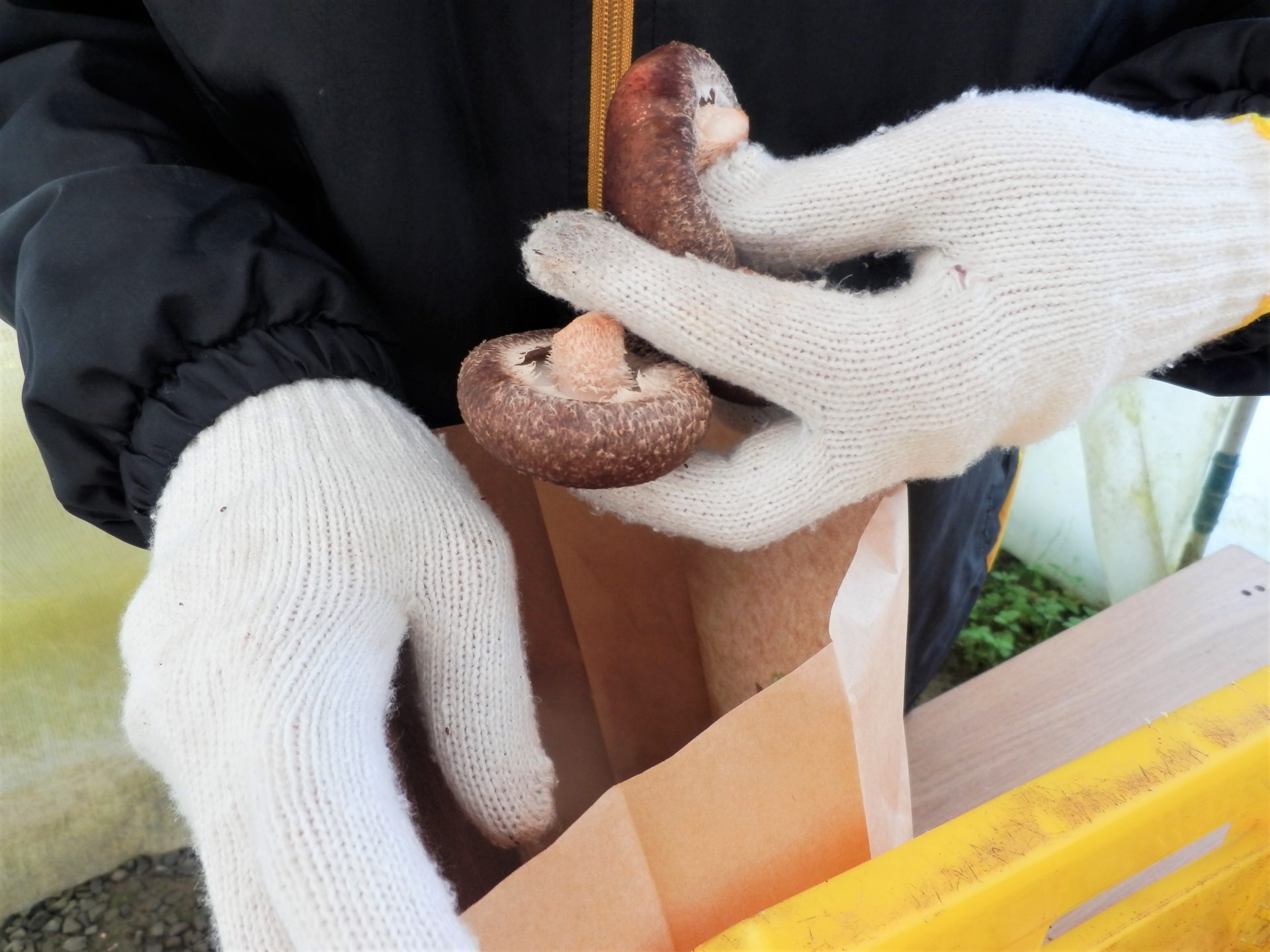 ハウスのそばの道を何気なく歩いていたら…あ! なんて立派なタラの芽! 春が来たんだ~山菜の季節だ~♪(´▽`*) でも後ろに映りこんでいるのは雪だったりして~(;・∀・) そんなタラの芽が芽吹く隣にあるハウスの中では、農園芸班がしいたけの収穫作業がんばっていました。 かわいい… しっかり散水 今日の収穫 ゴロゴロ~ しっかり計量 採りたてピカピカ 今日もみんながんばりました!