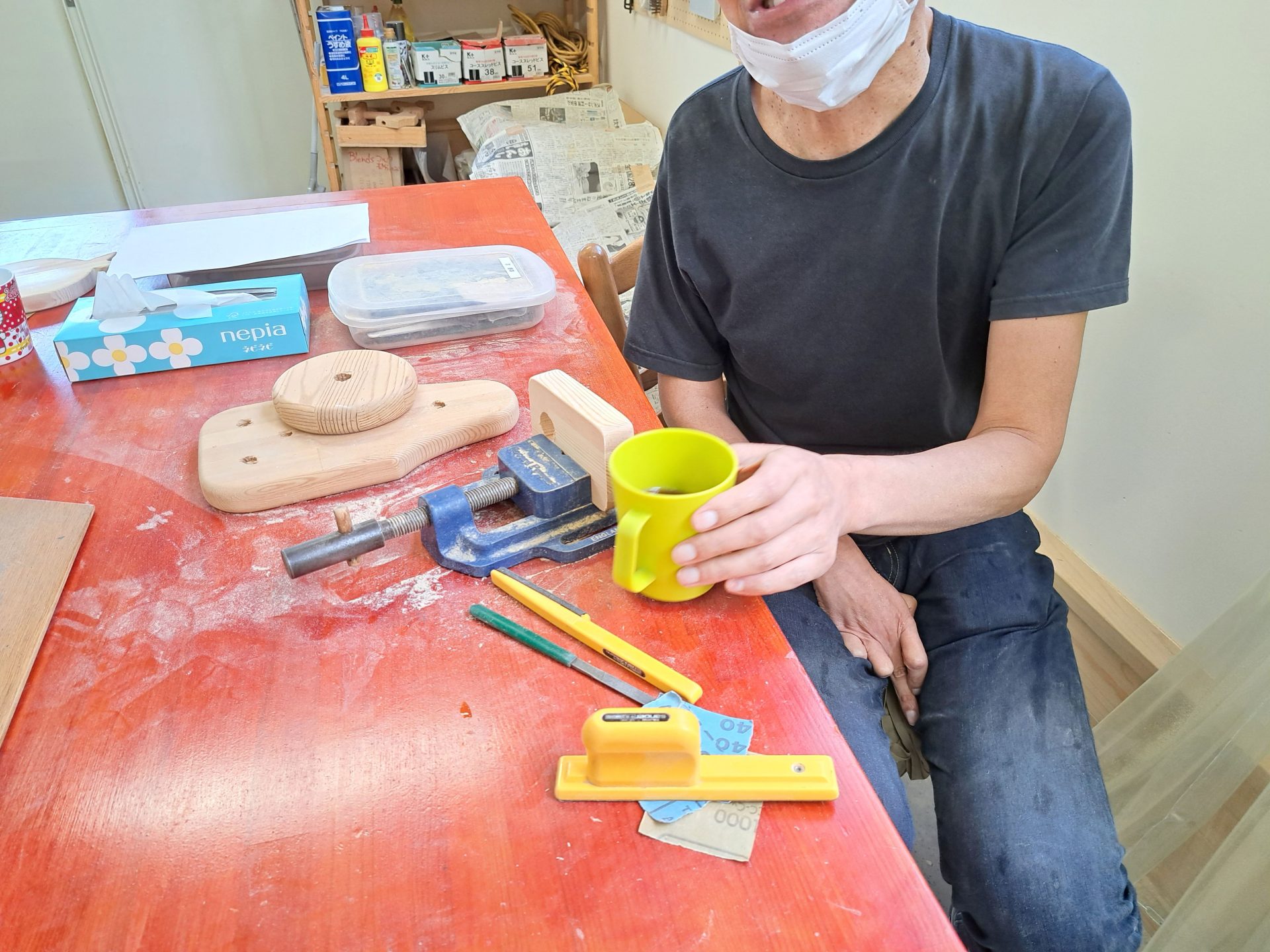 ちょうど休憩時間、空き缶のハウスから戻って一服ですね~♪