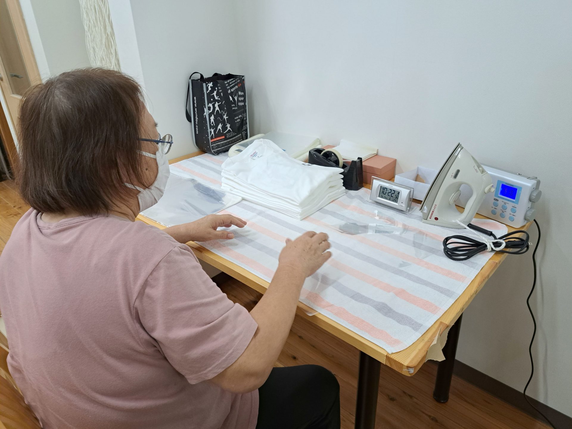 - 出来上がったTシャツに丁寧にアイロンをかけて袋詰め~!