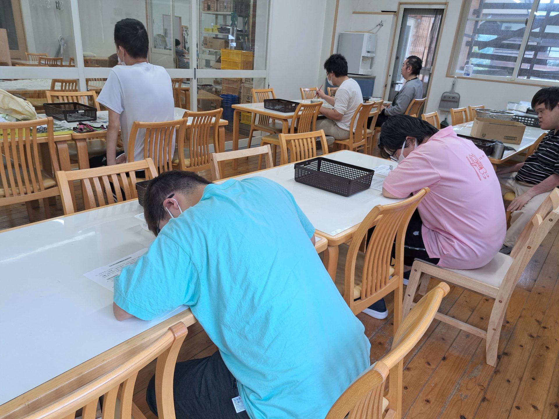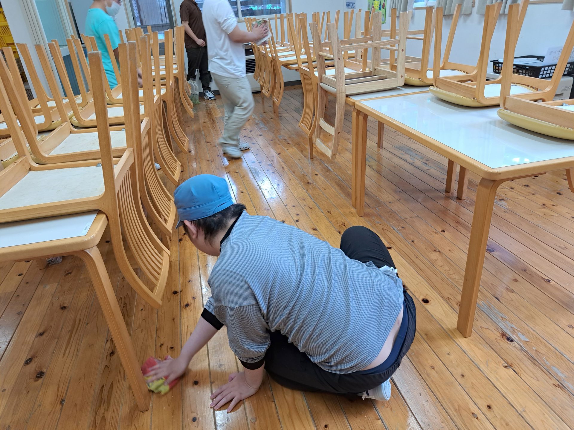 食堂は農芸班の担当~いすを揚げて床もピカピカにするぞ!