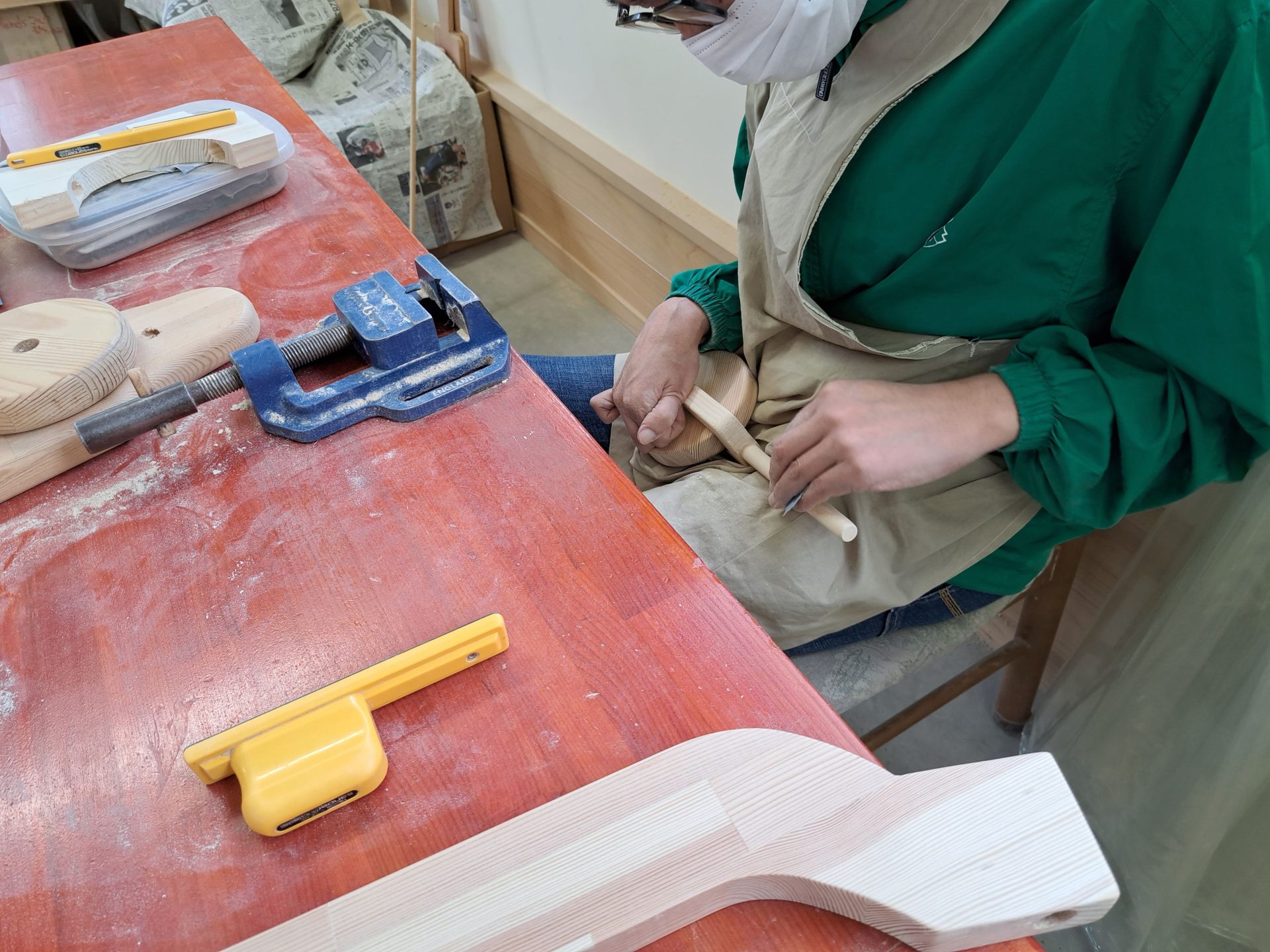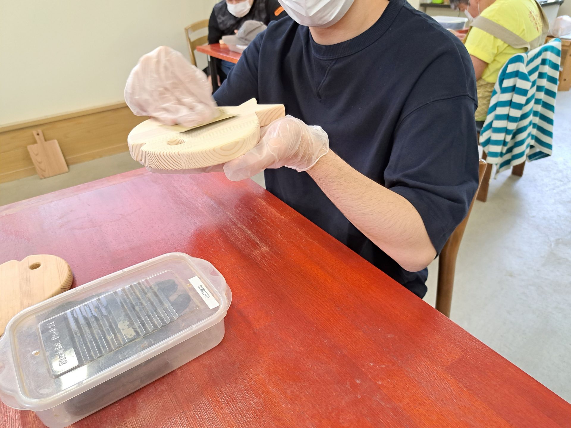 - 木工棟ではヤスリがけ真っ最中~♪